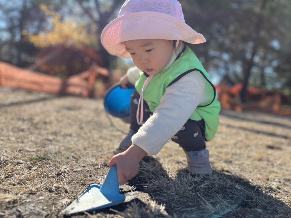 虫探しチームは土を「ほりほり」。寒いから居ないの!と教えてくれる子もいて、季節と生き物の関係に気づく科学の入口。観察し、仮説を立てて確かめる体験は、幼い探究心を育てます。