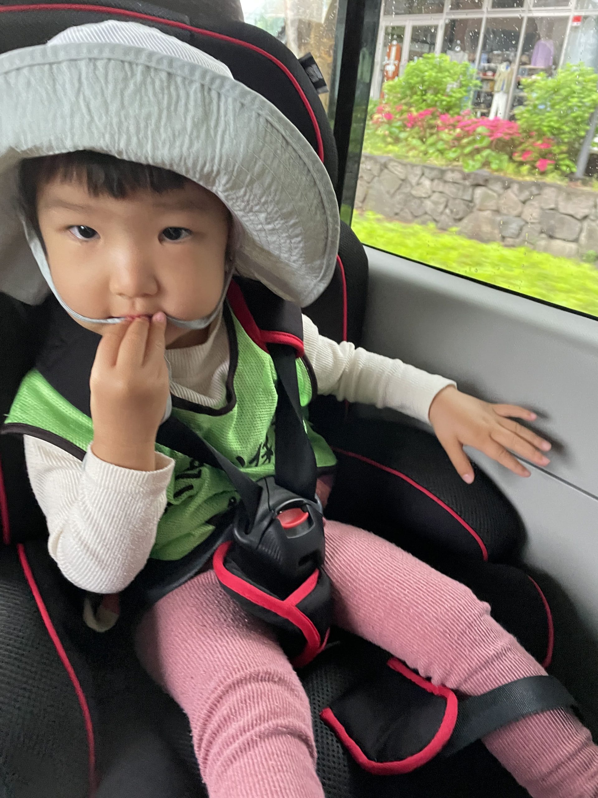 今日はバスに乗って、「ぽかぽかミュージック」へ出発!窓の外には、雨で濡れた景色がキラキラと光っていて、なんだかとても幻想的でした。
