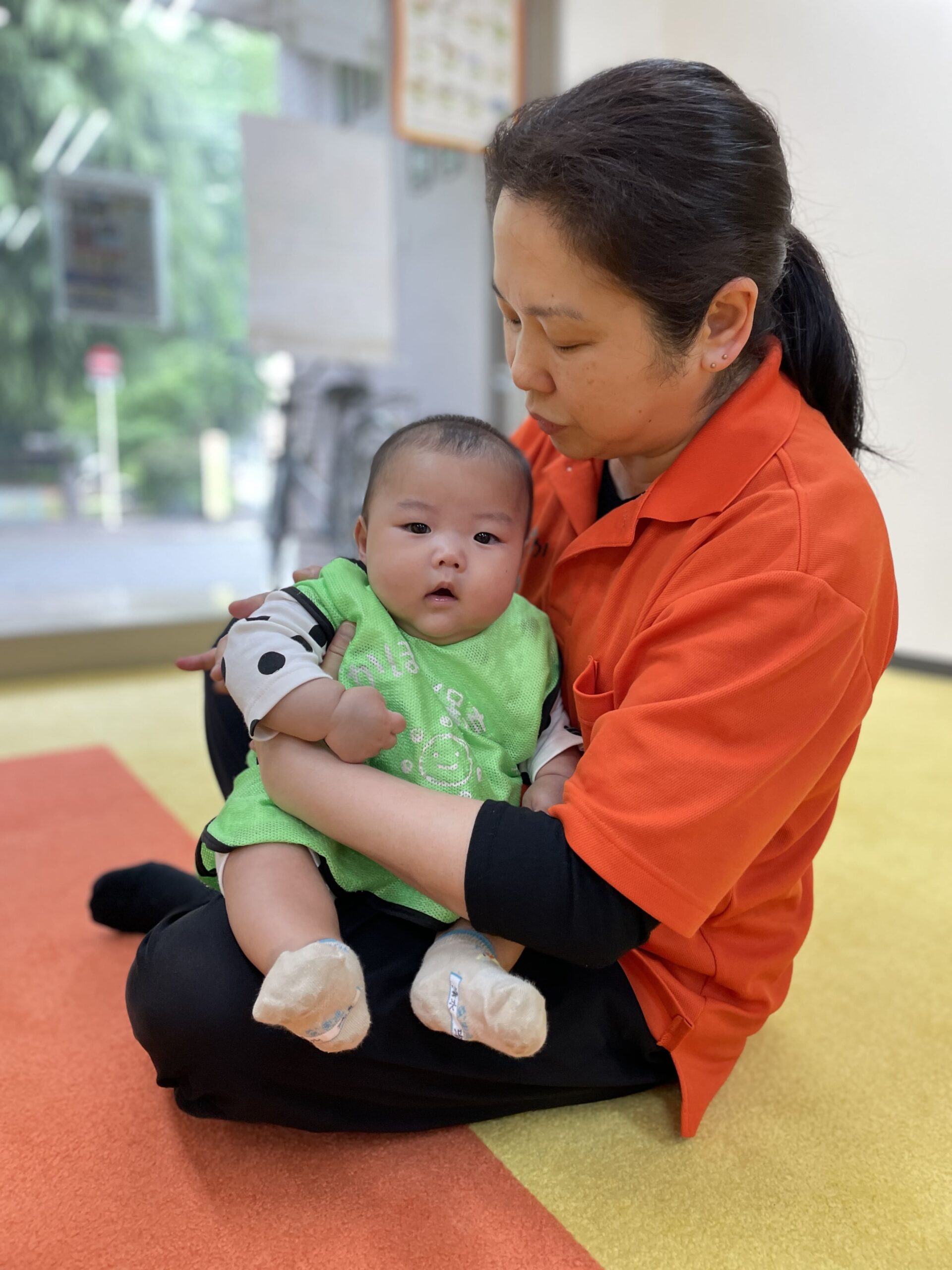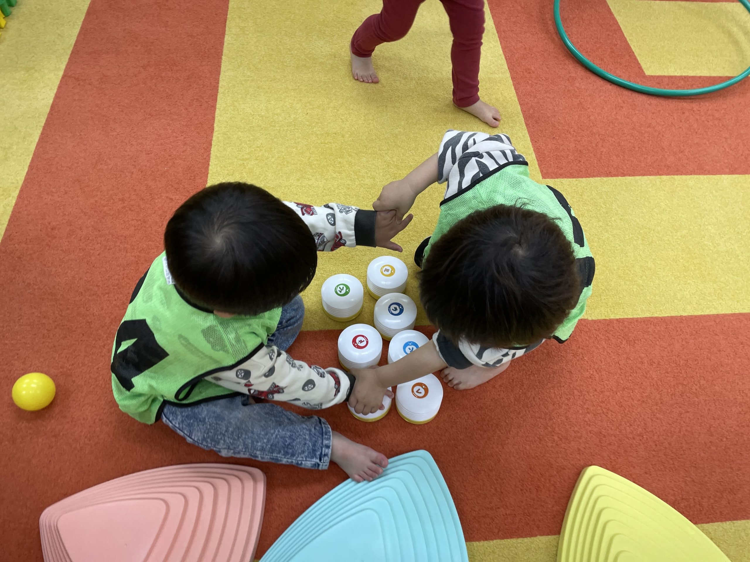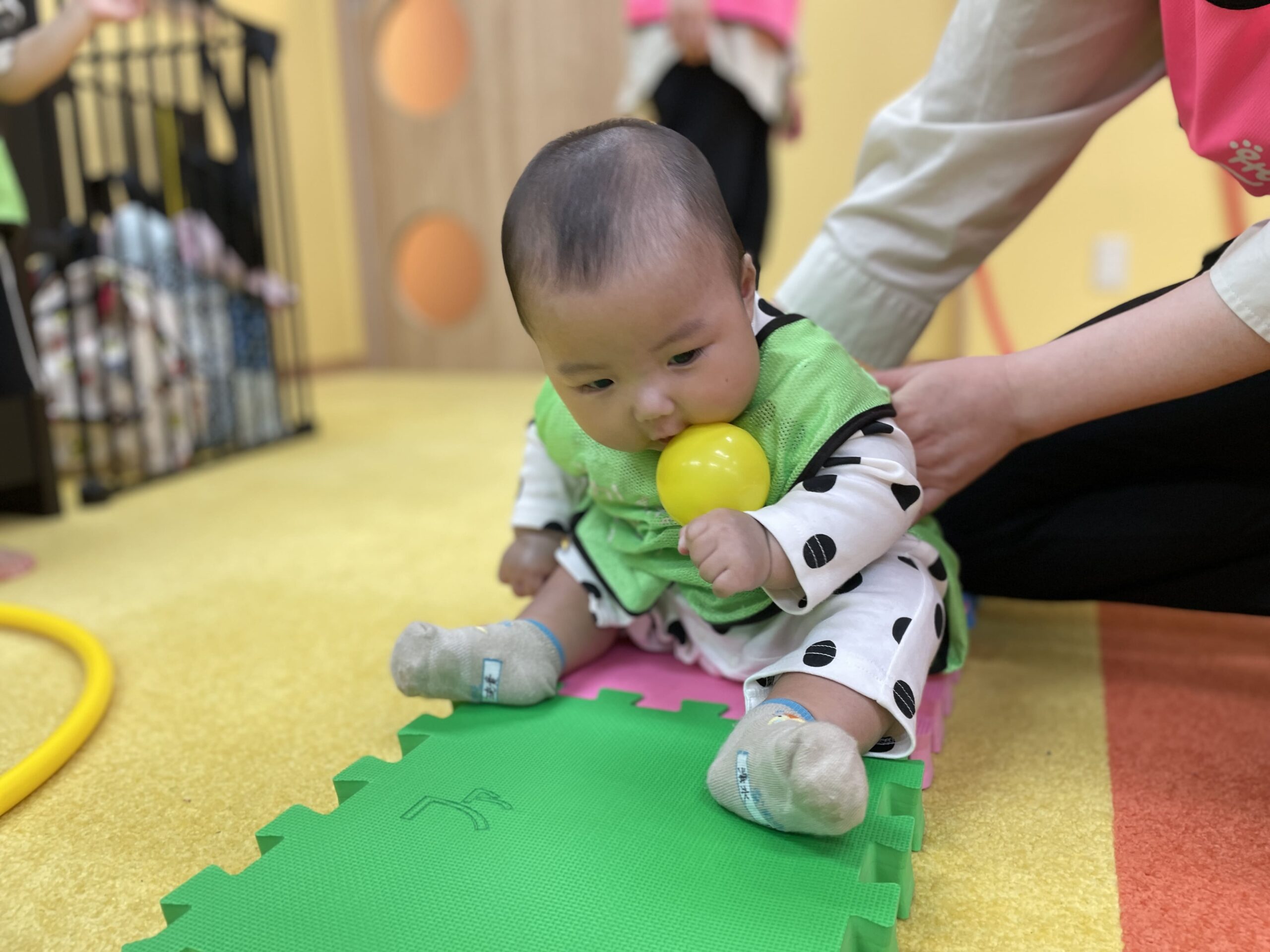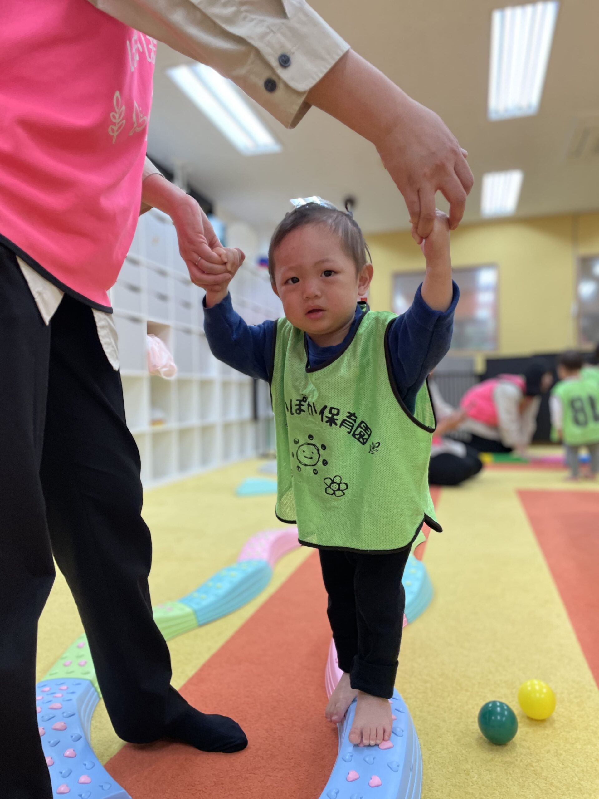 最初は少し場所見知りしていたお友だちも、お友だちや先生が楽しそうにしている姿に引き寄せられて、そっと真似してみると…あれ?なんだか楽しいかも!気がつけばお部屋の中を元気いっぱいに走り回って、ニコニコ笑顔で遊んでいました