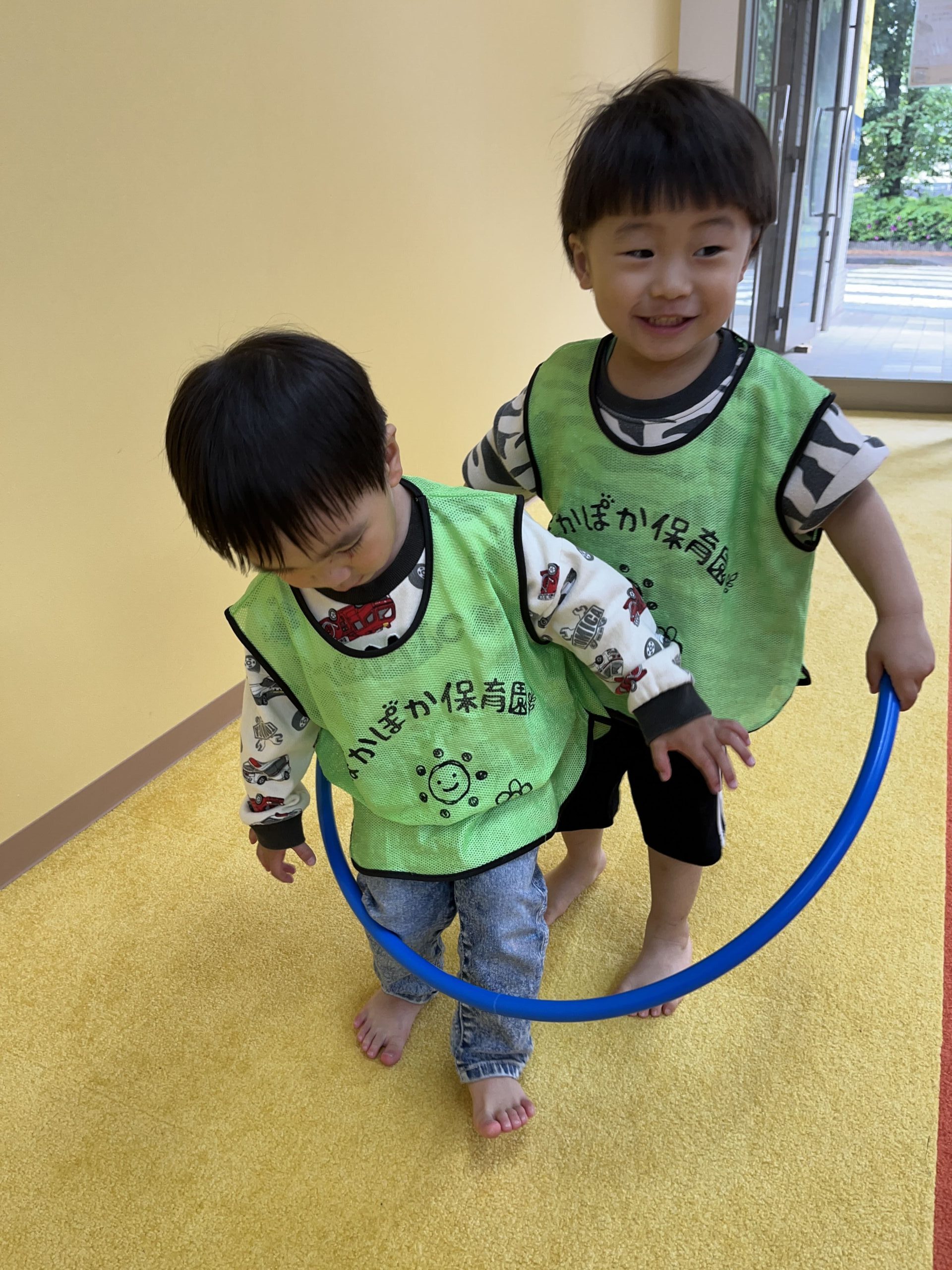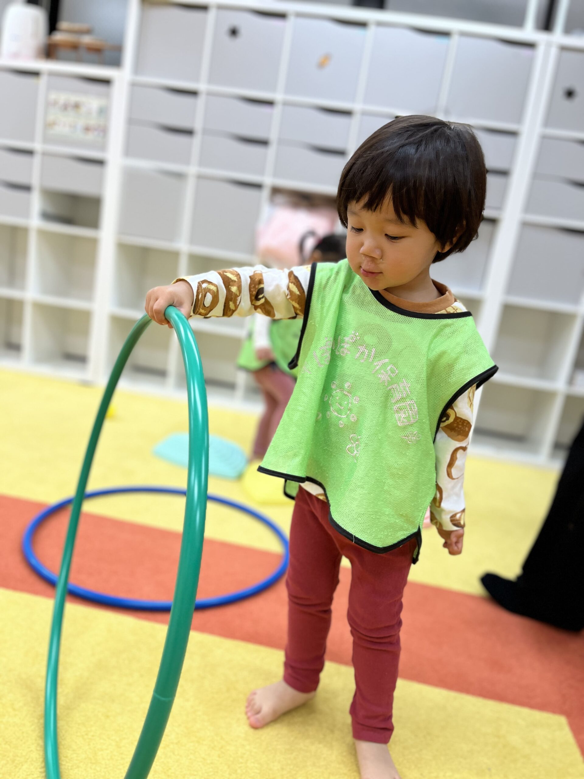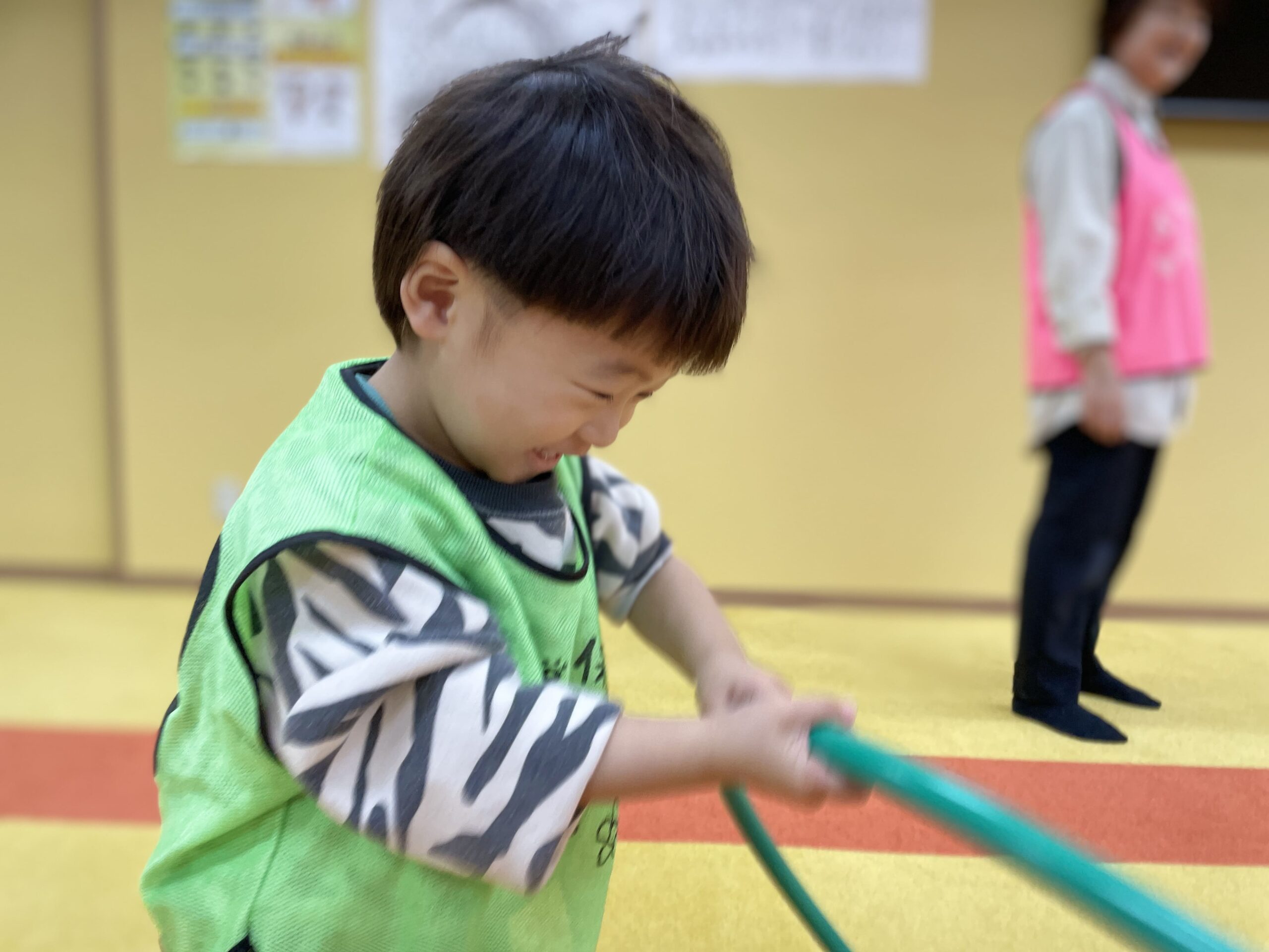 先生がフラフープをくるくる回すと、「僕もやってみる!」と何度も挑戦する子の姿も✨やってみたいという気持ちが、キラキラと輝いていました。