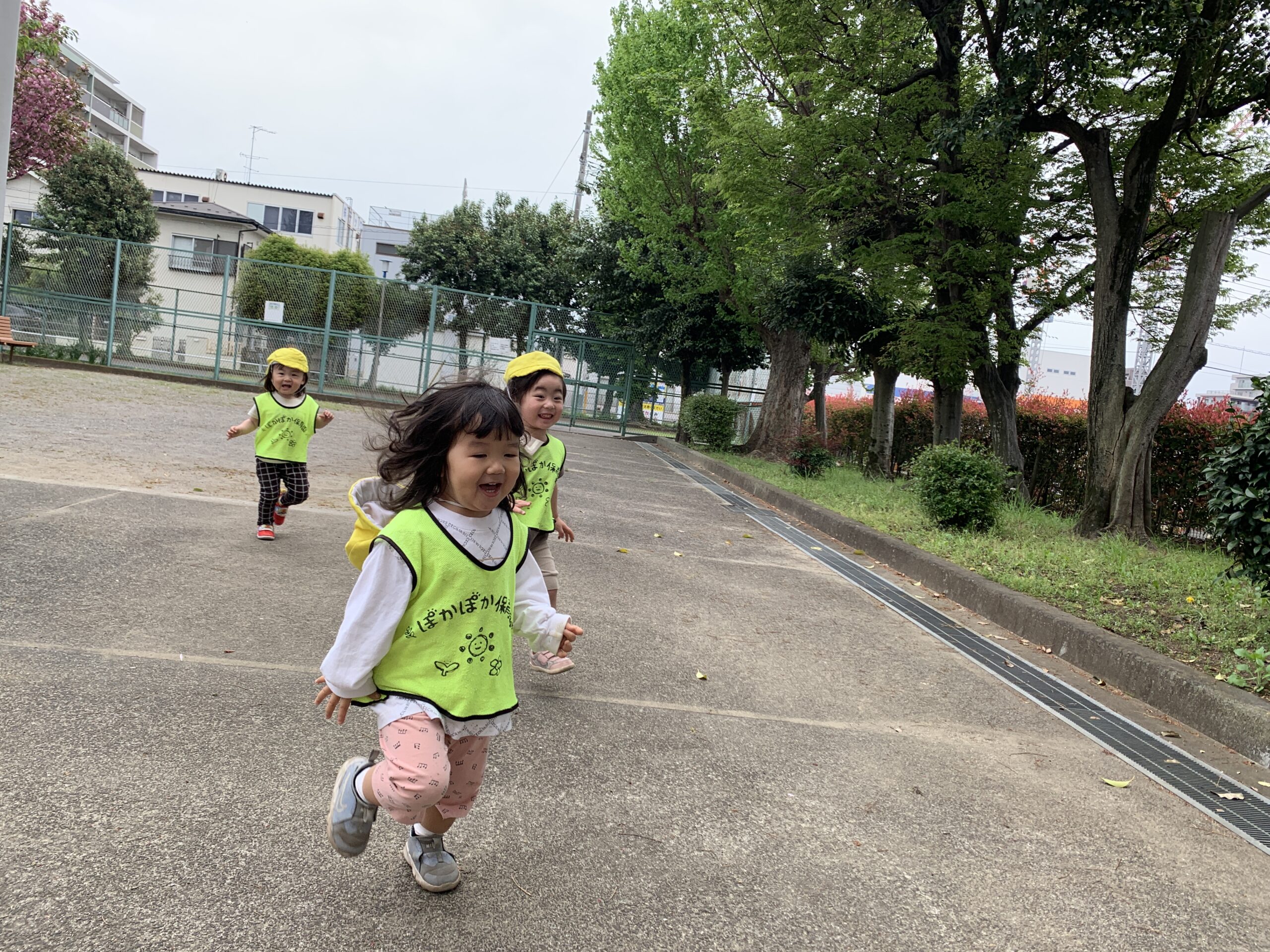 夢中になって走り回る様子に、先生たちも「すごいね、はやいね!」とたくさん声をかけていました。