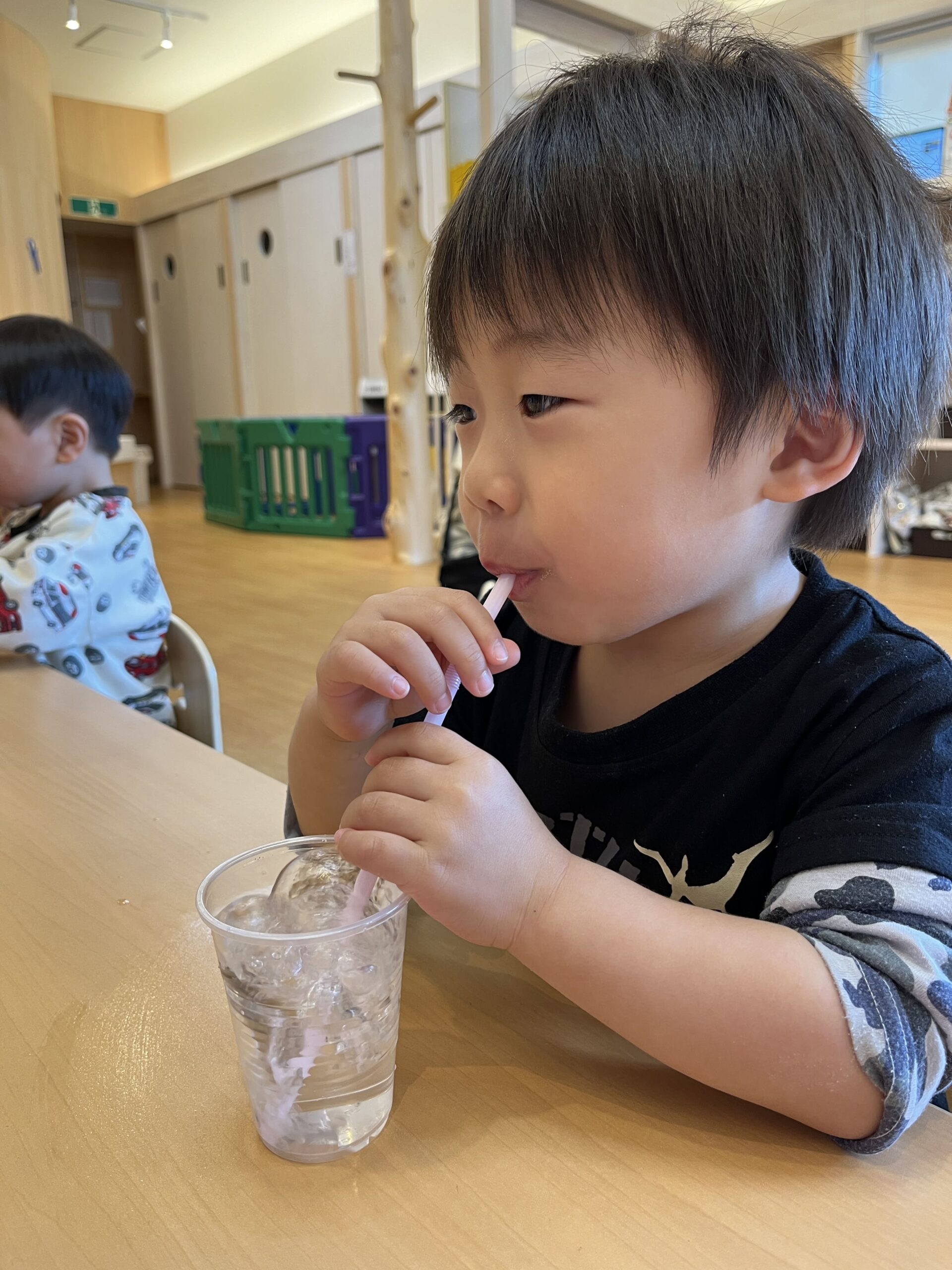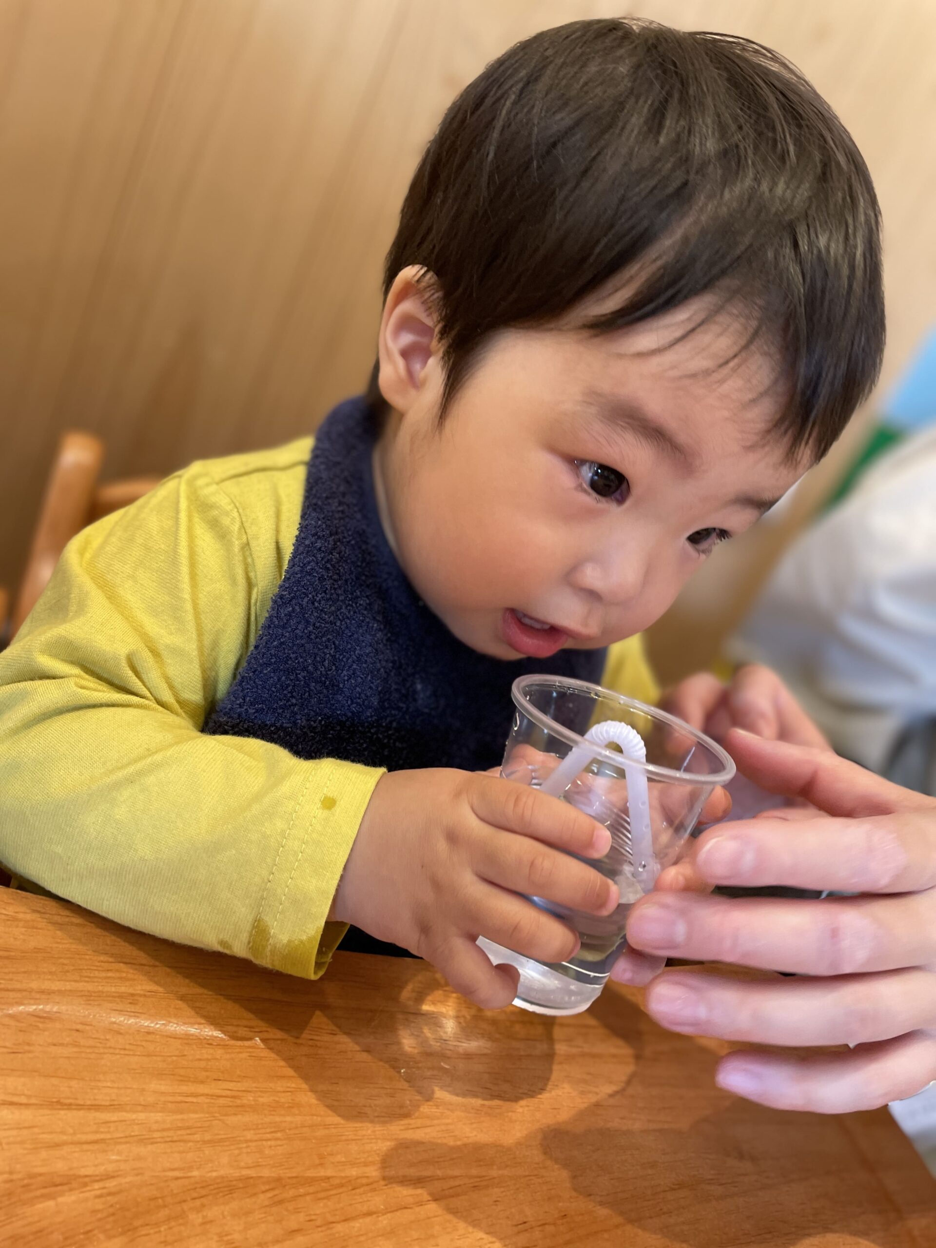小さな手でストローを持ってみたり。