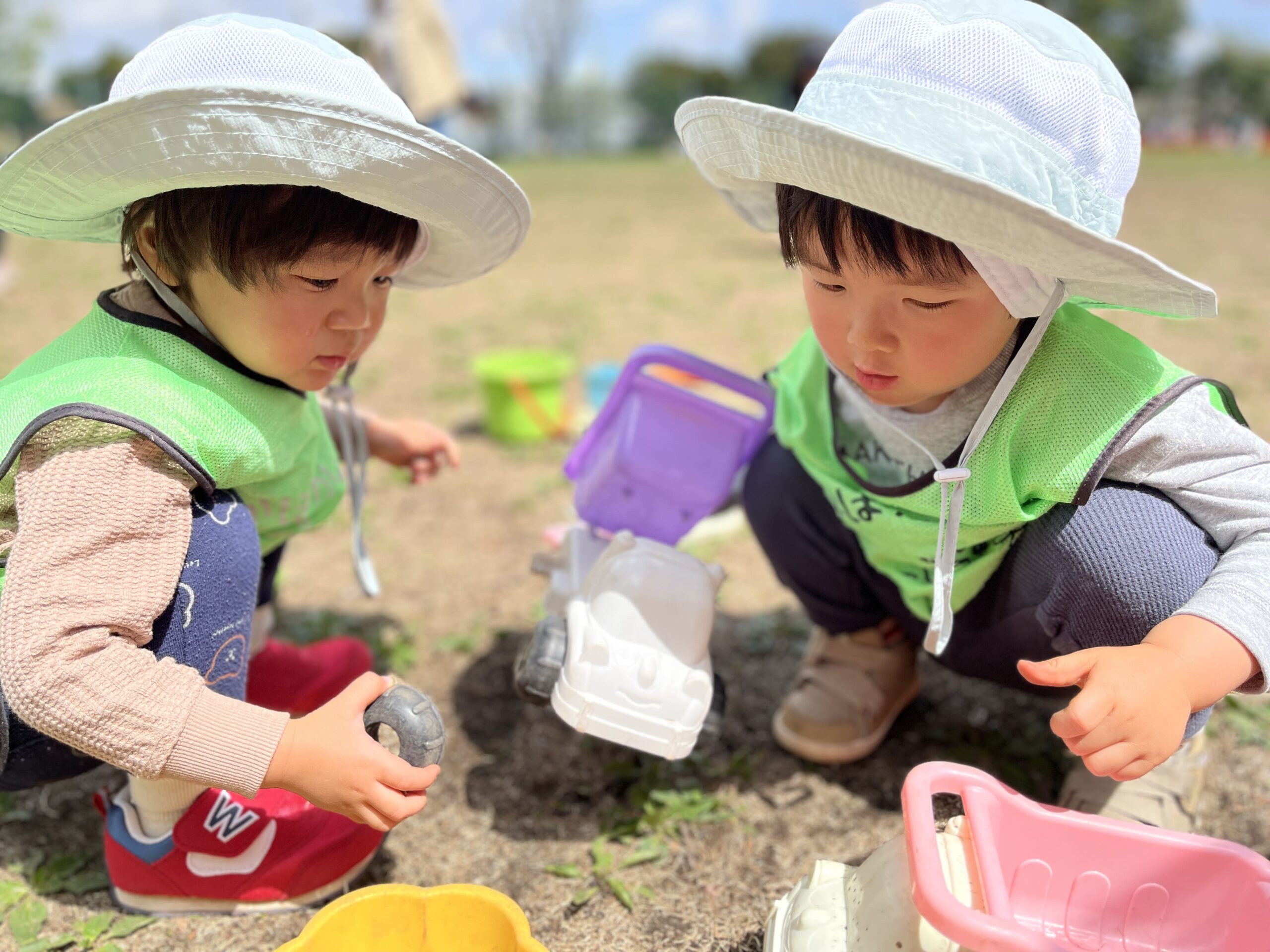 2歳児の子どもたちは、風の向きを気にしながら、