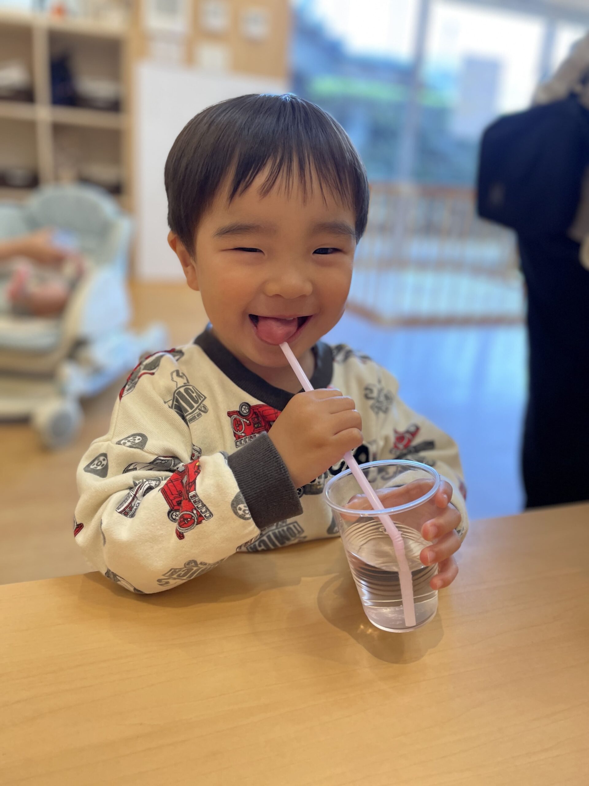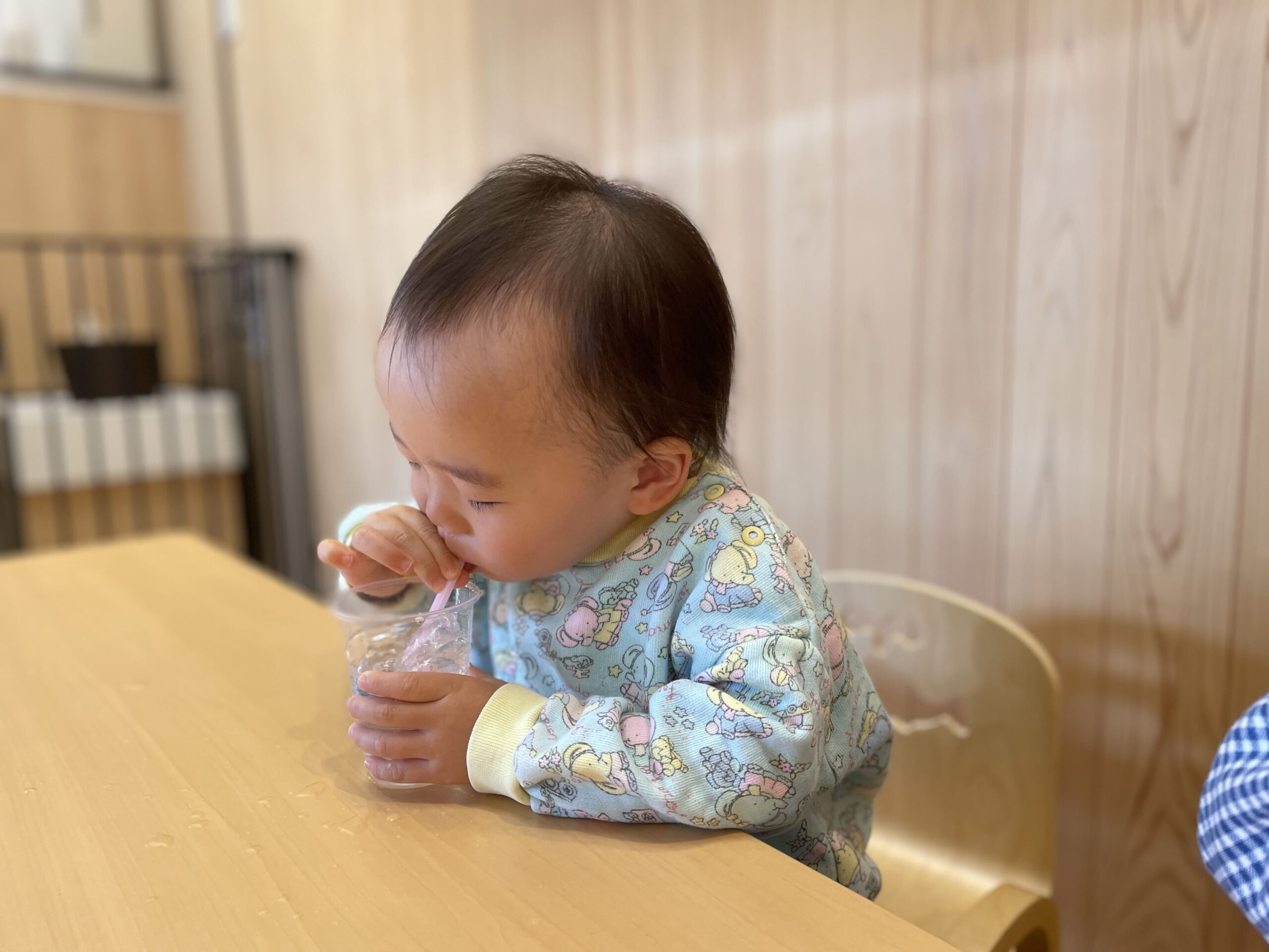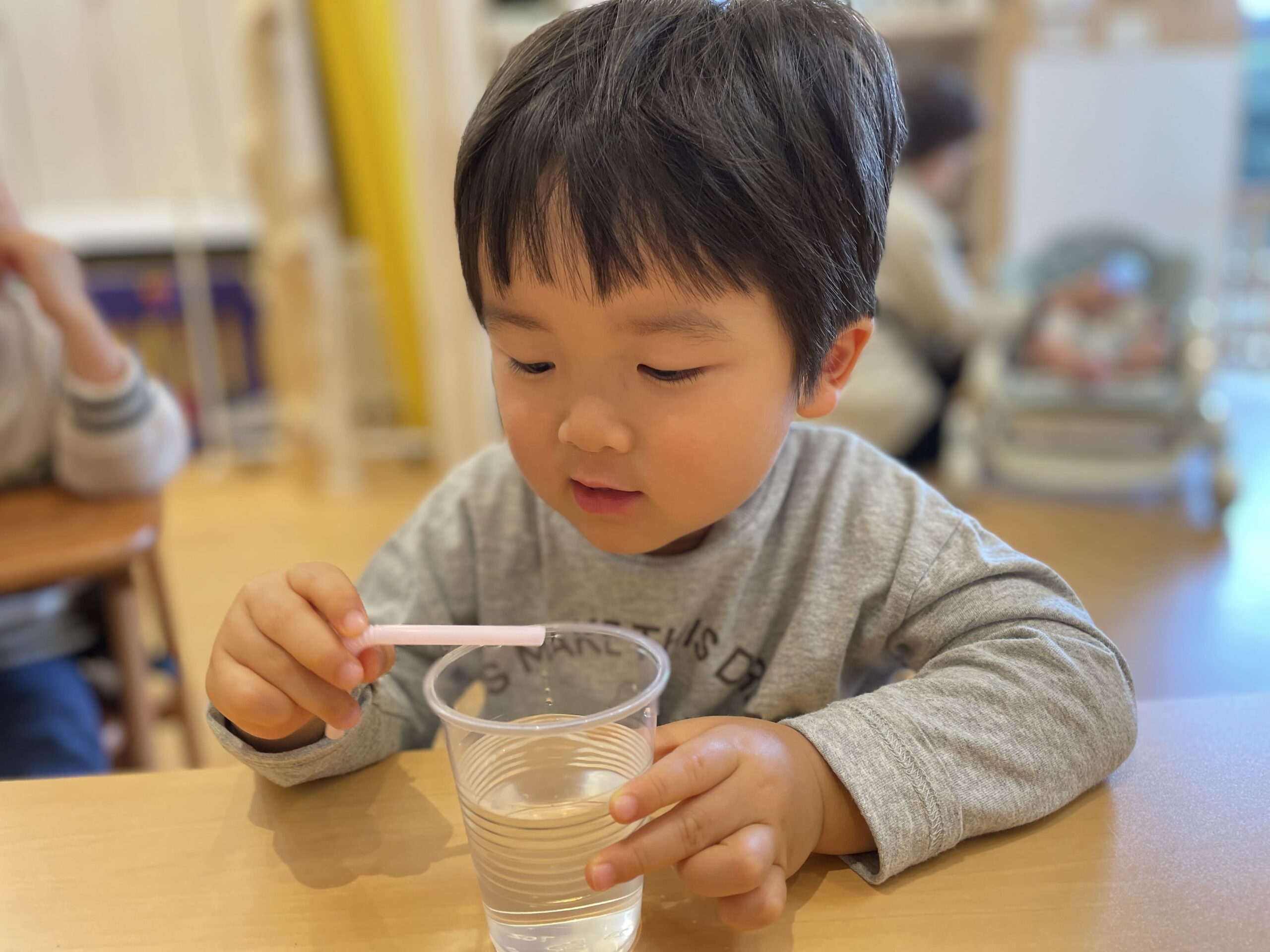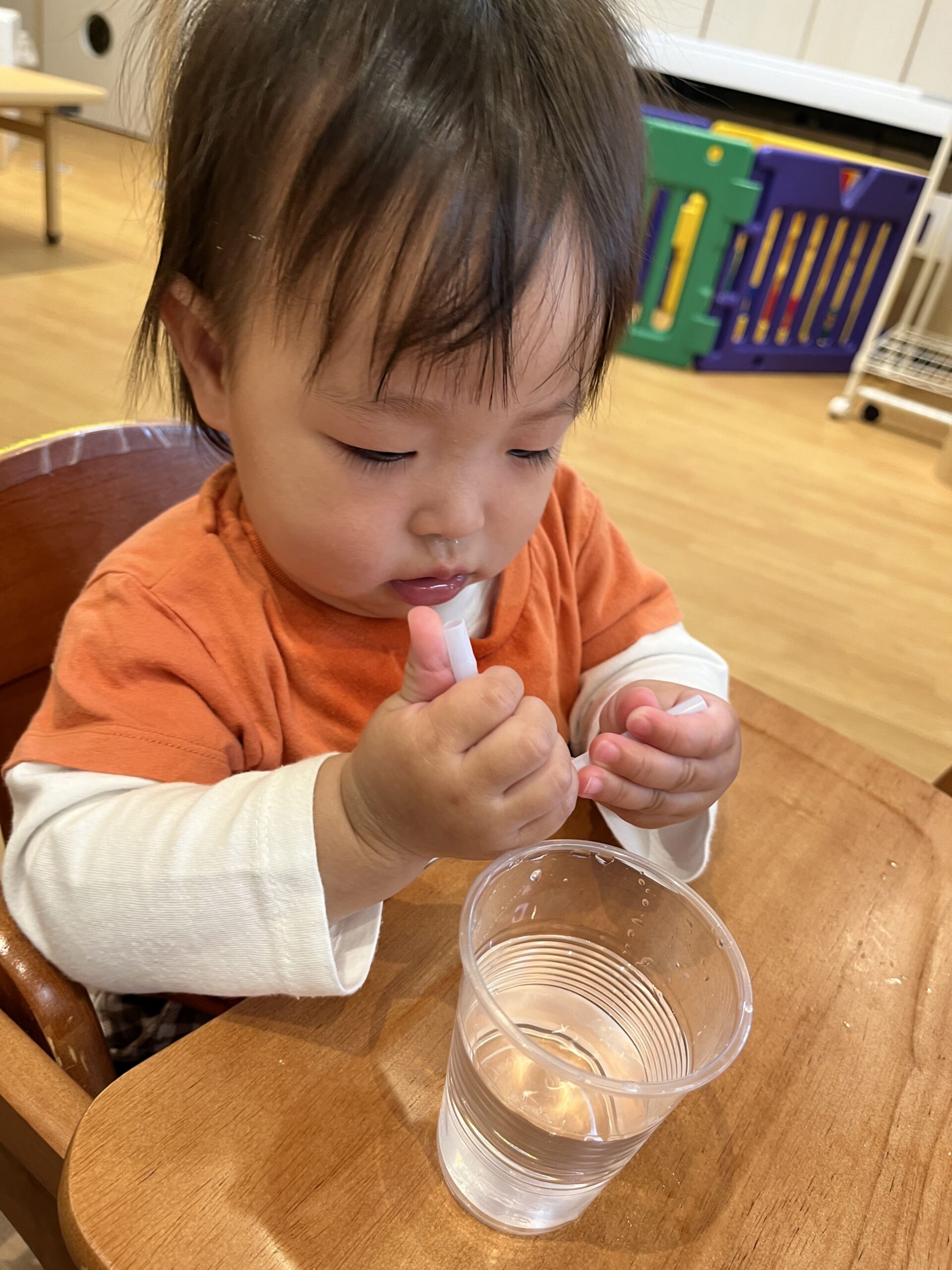 小さな手でストローを持ってみたり。