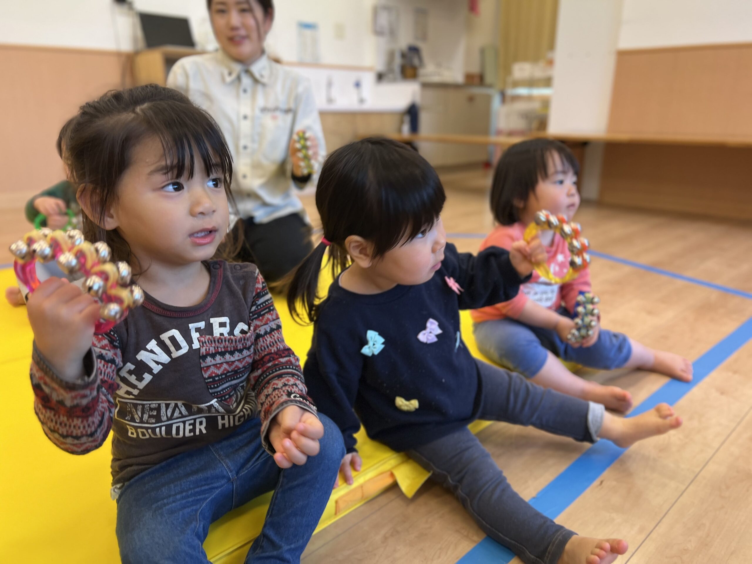 その後は「ぶんぶんぶん」のお歌に合わせて、鈴を持って演奏を楽しみました🎵