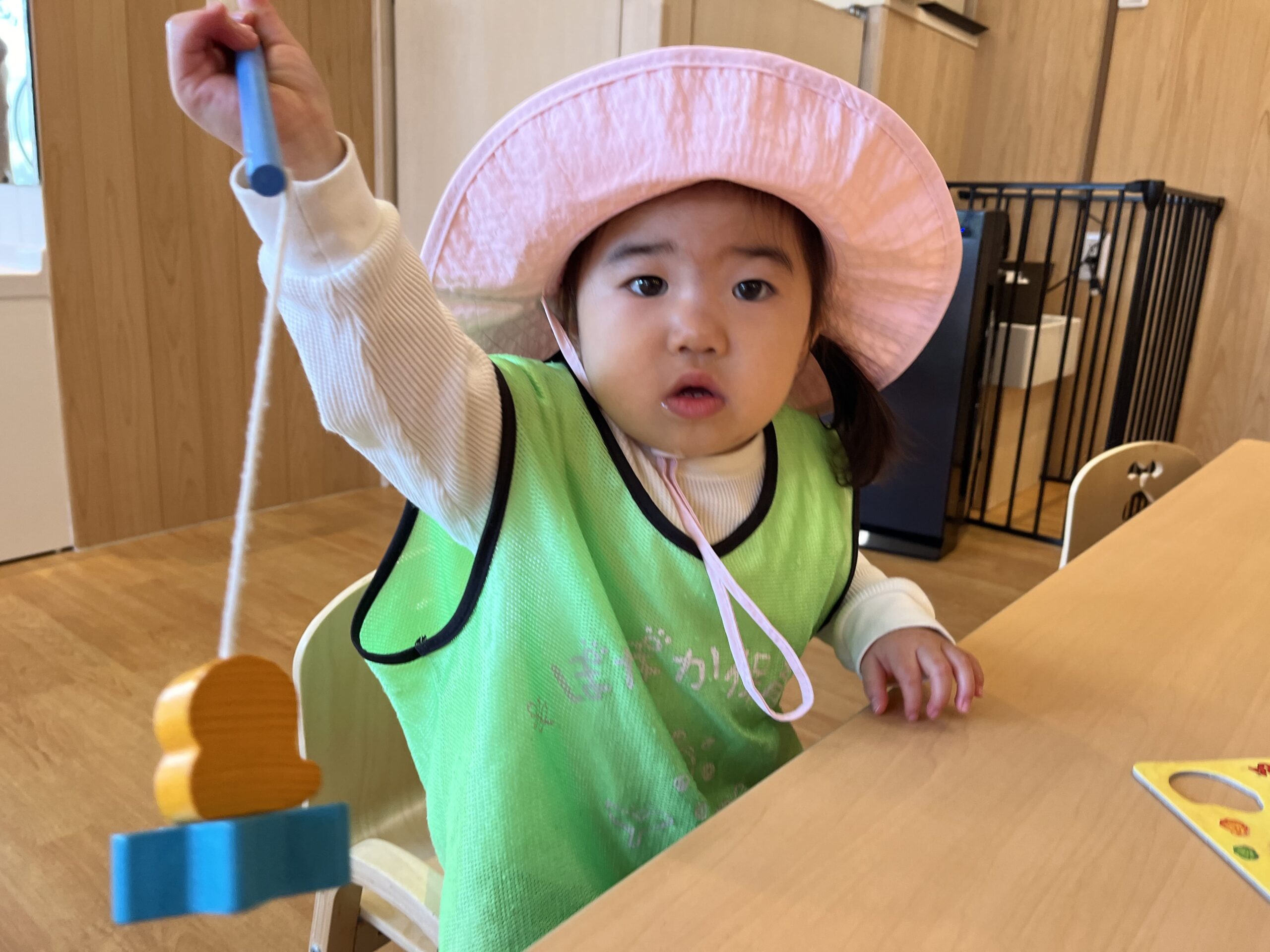フィッシングゲームでは、磁石のついた釣り竿に夢中。