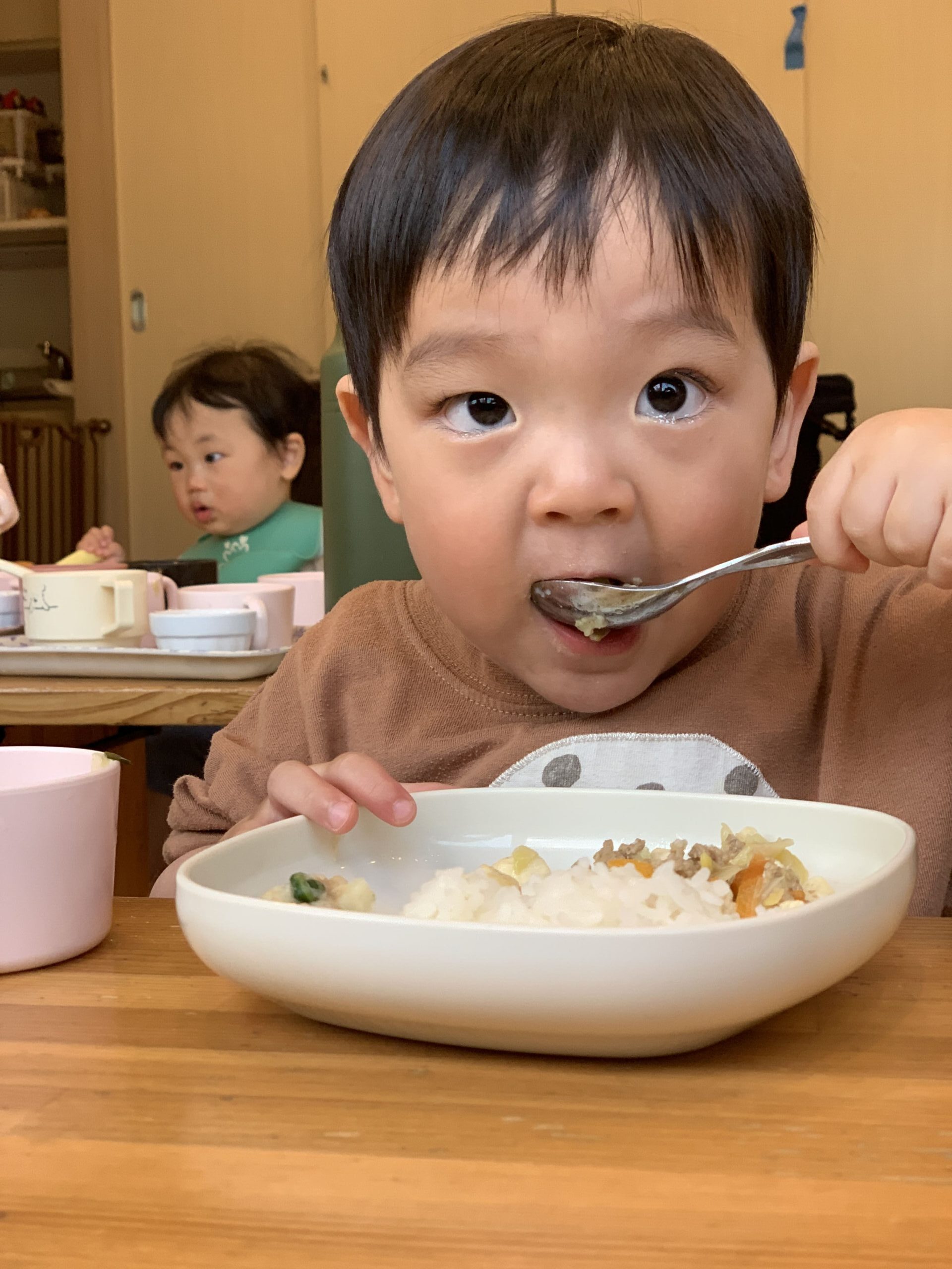 たくさん遊んだ後は、みんなでお給食の時間!モリモリ食べて、元気を取り戻しました☆みんなで食べると、さらに美味しさが増すようで、楽しそうにおしゃべりをしながら食べている子どもたちの姿がとても可愛らしかったです♡