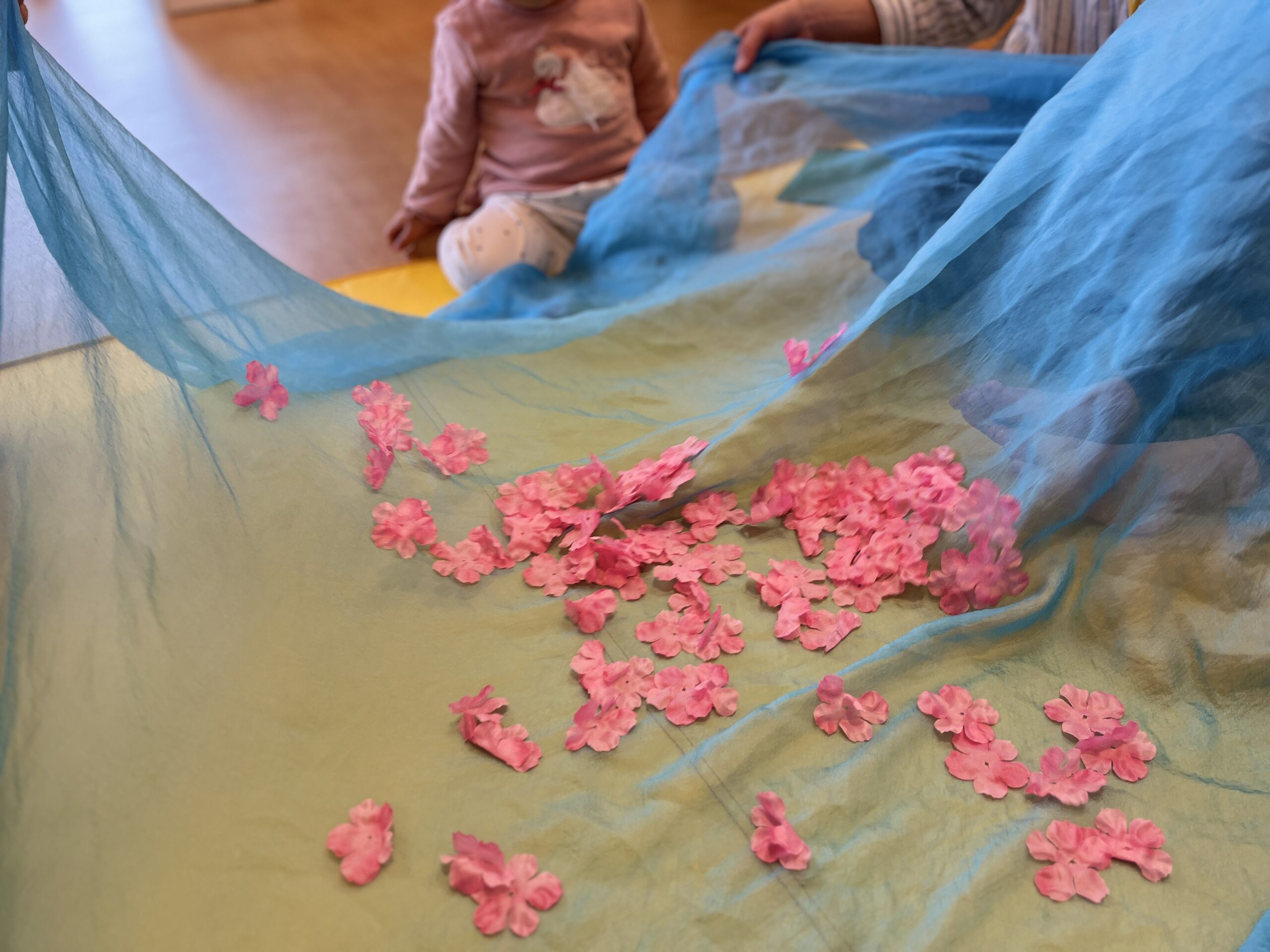 最後に、大判スカーフを使い、「お花がわらった」の曲でゆらゆら~。