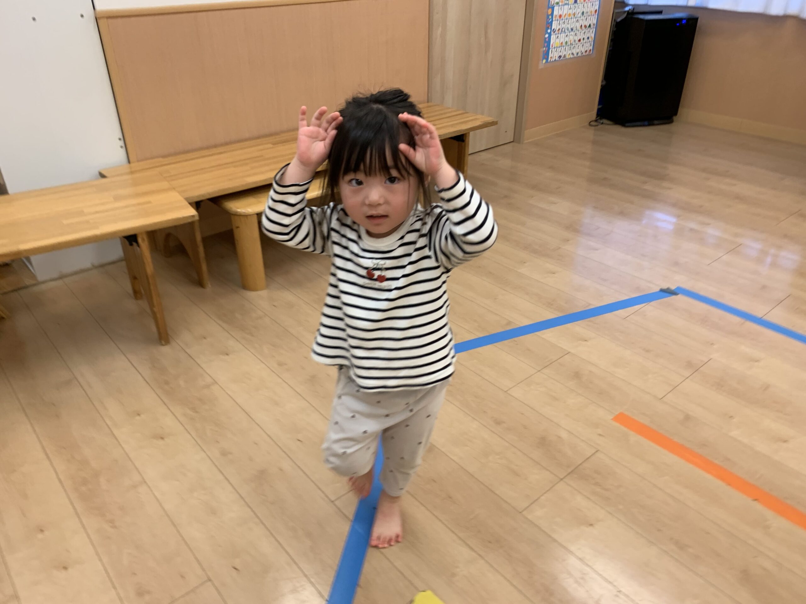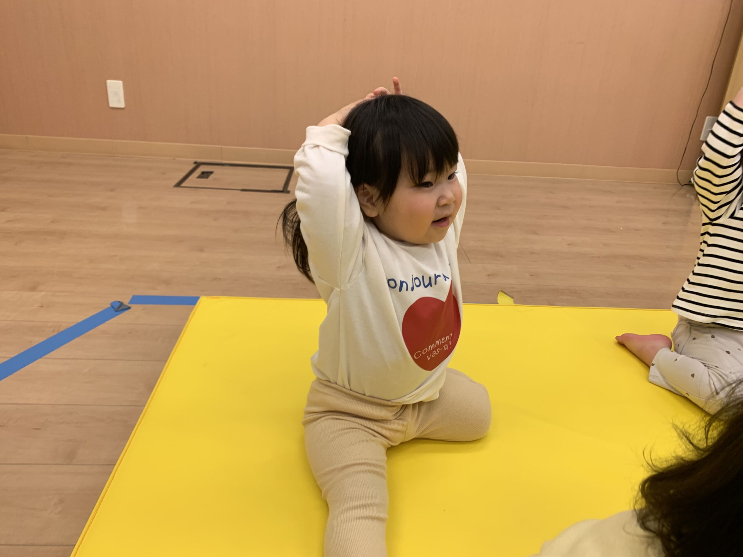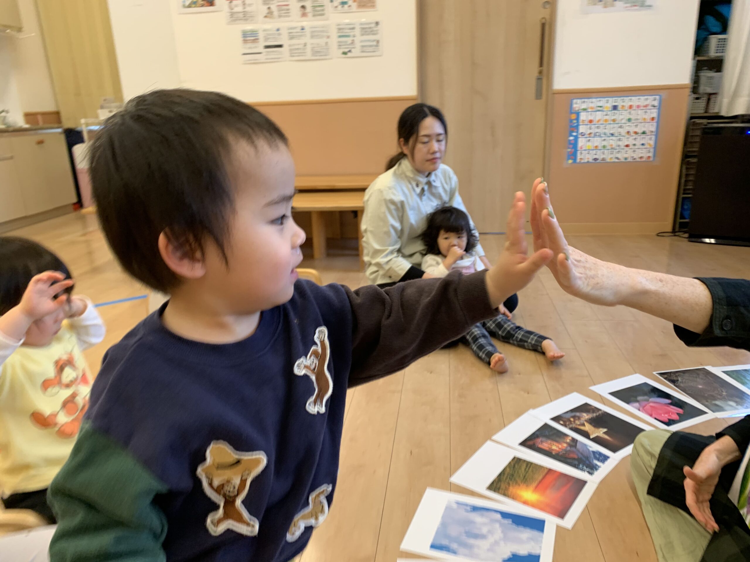 その後は英語遊び!「Yes!」と手をあげて、積極的に参加する姿が見られました☆