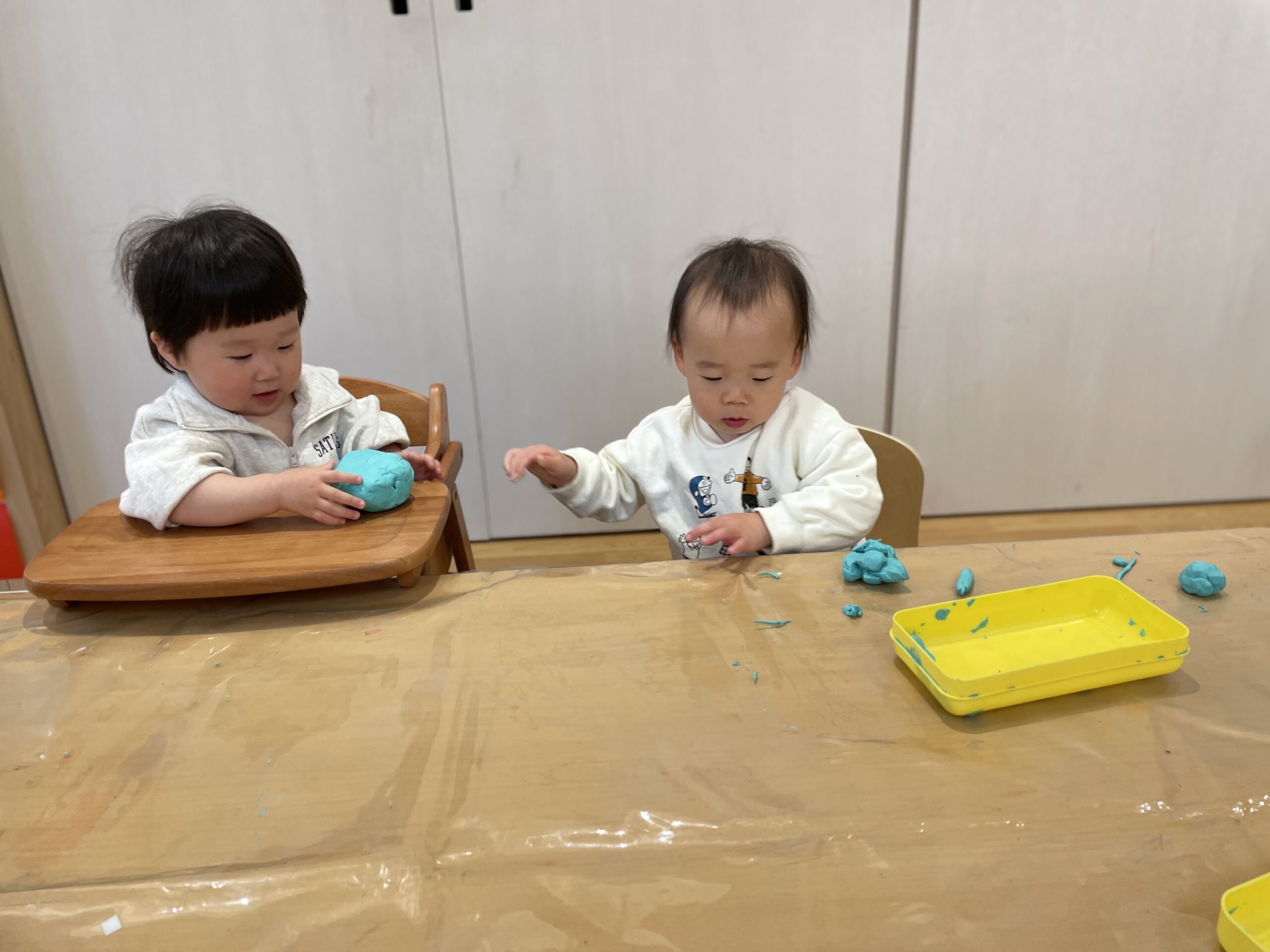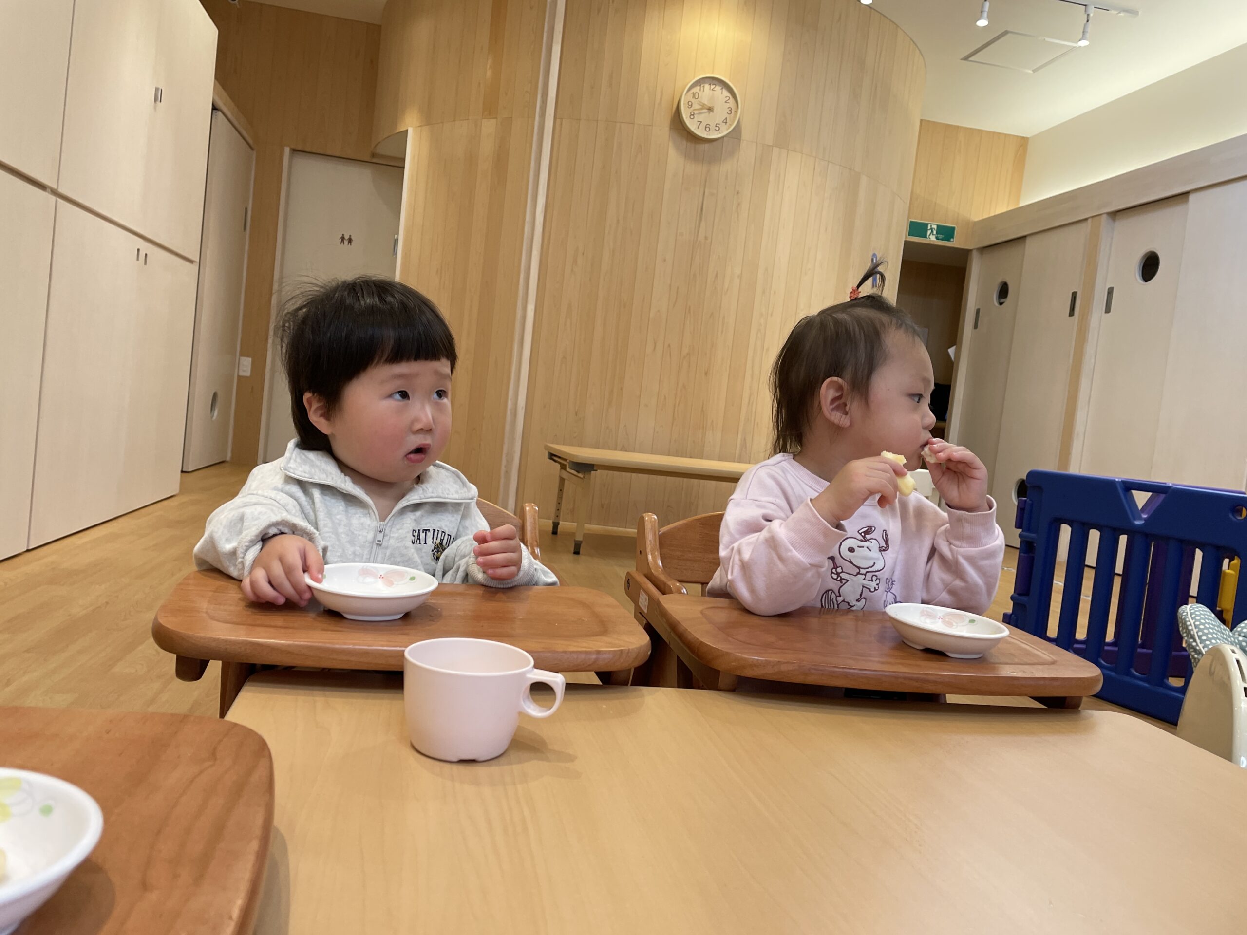 多摩平園では、0歳児さんだった子達が1歳児さんに進級し、初日を引っ張ってくれました♪