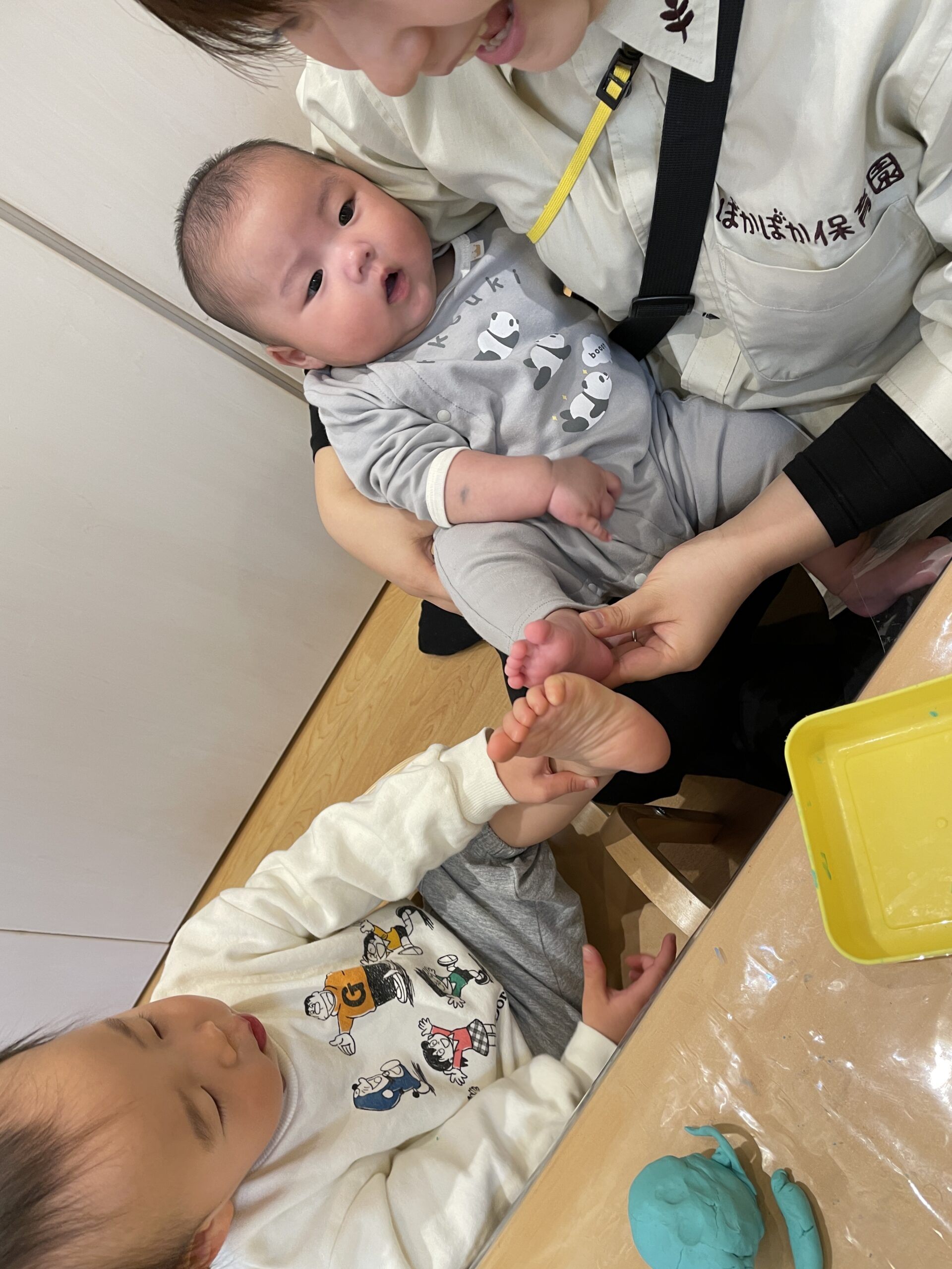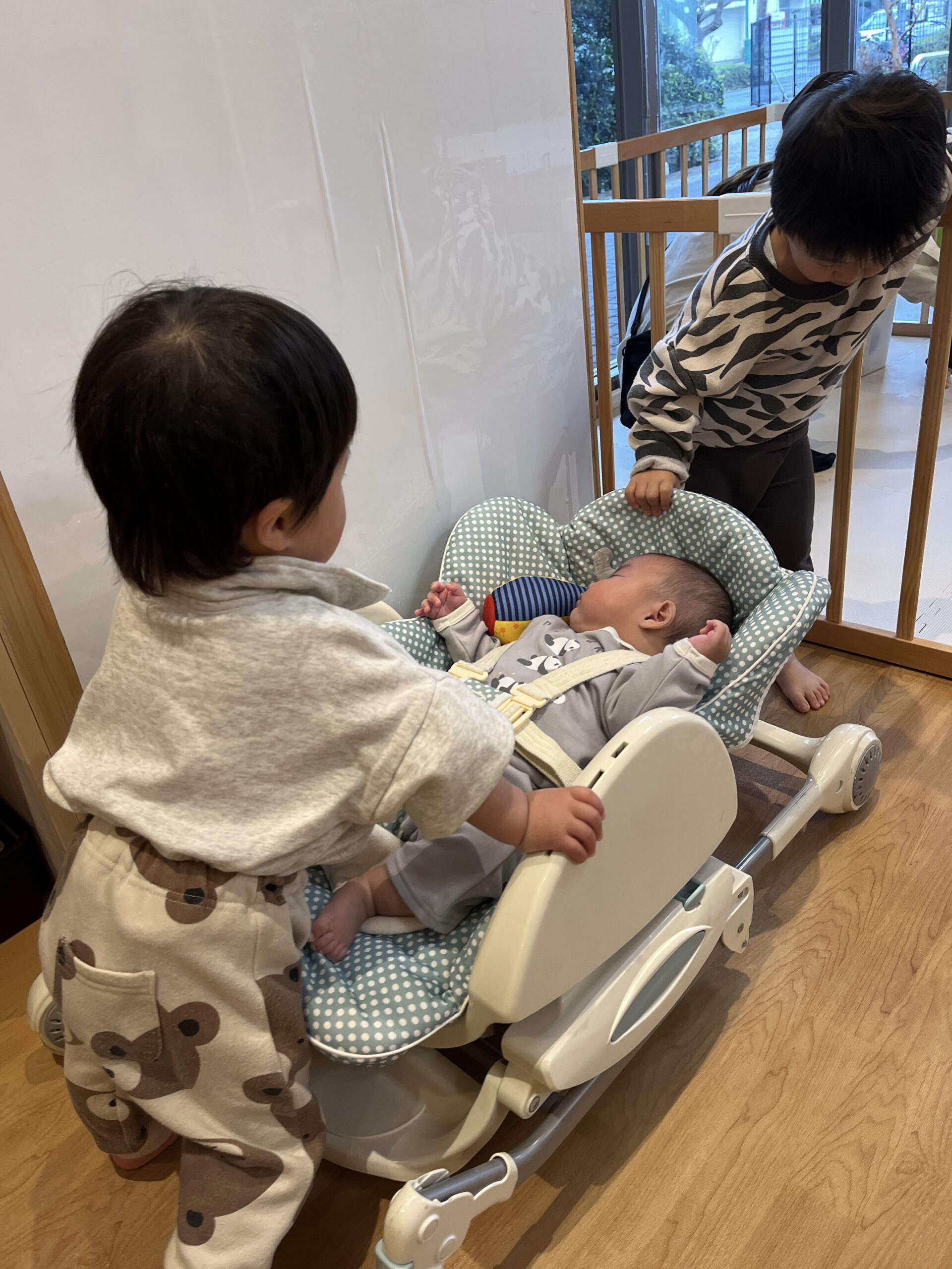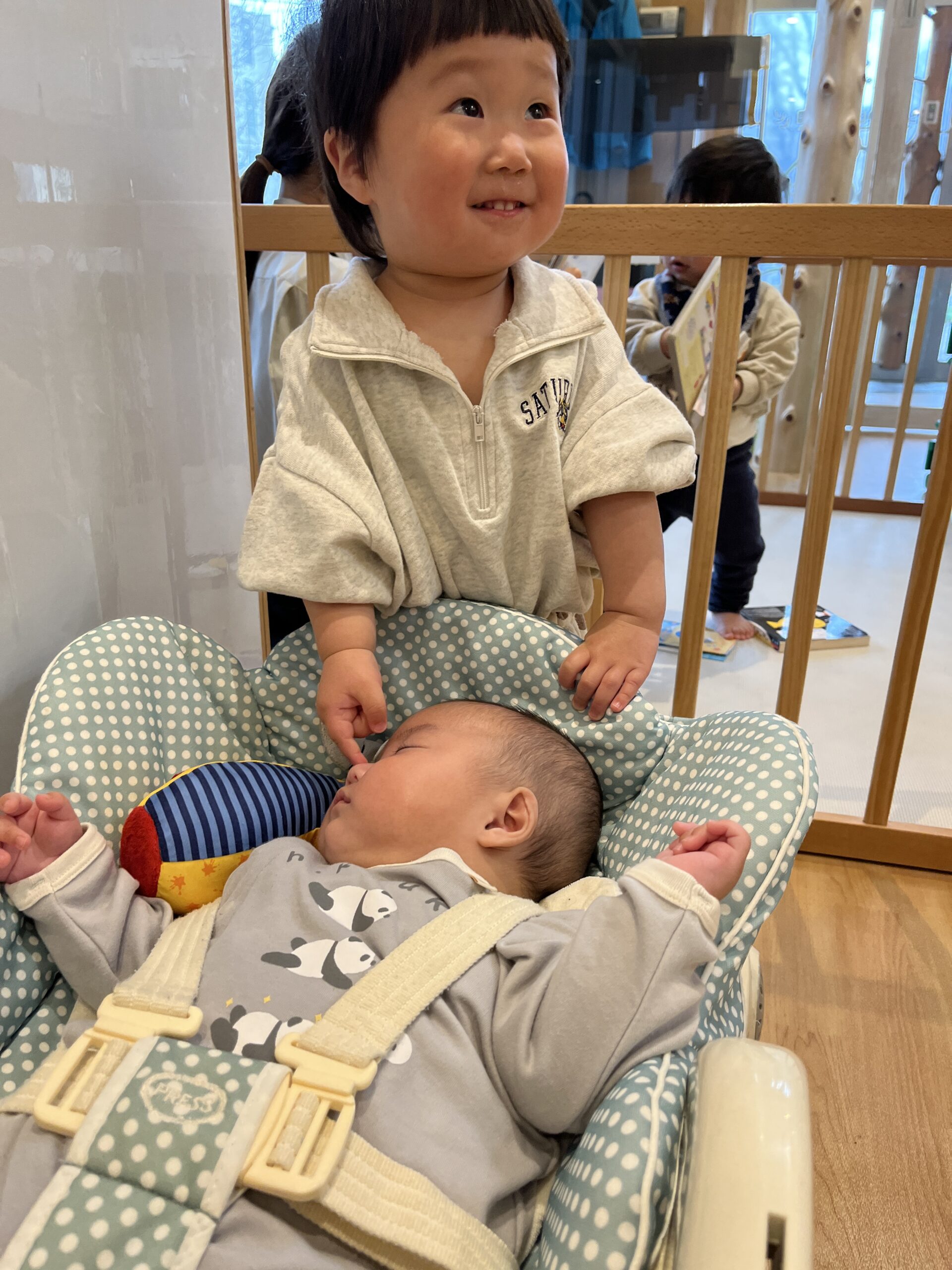 赤ちゃんな0歳児さんが気になる新1歳児さんたち!!