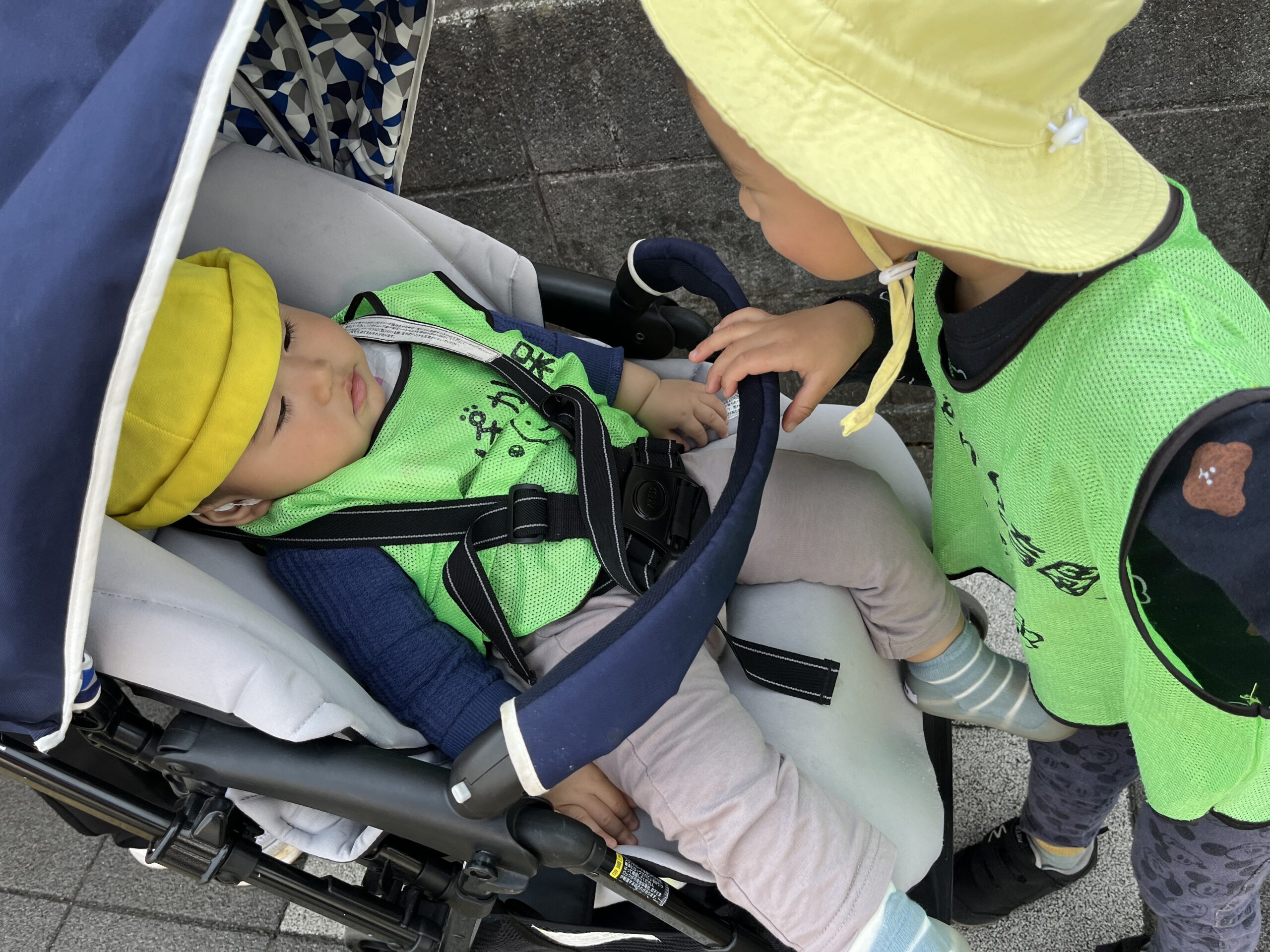 今日は晴れた空の下、ぽかぽか保育園の子どもたちは、元気に畑にお出かけしました。場所は、ぽかぽか畑。0歳から2歳の小さな子どもたちと一緒に、今年度最後の畑の見回りをしてきましたよ!