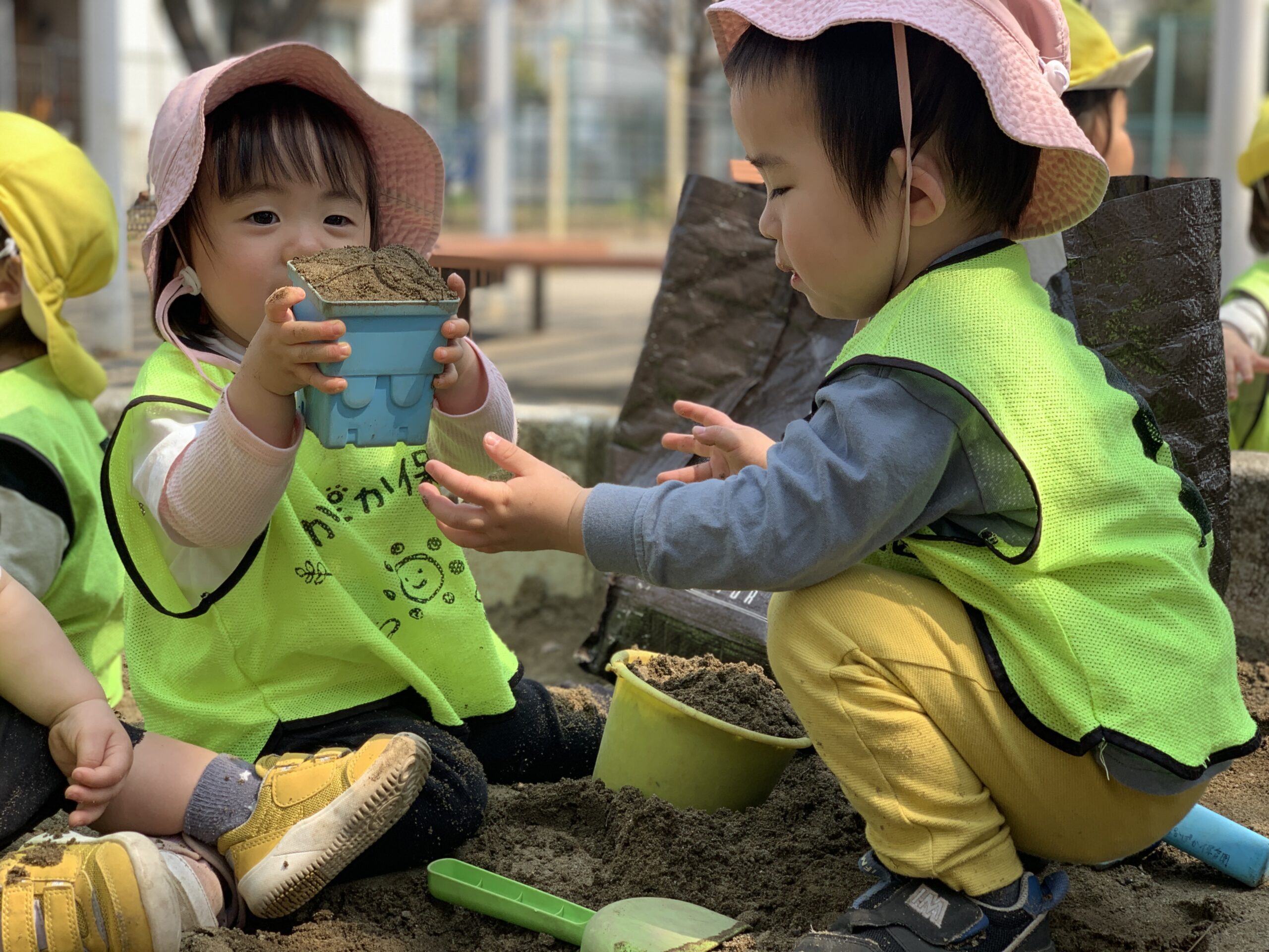 まずは、小さいお友達の様子からご紹介!砂場では、みんな夢中で遊んでいました♪
