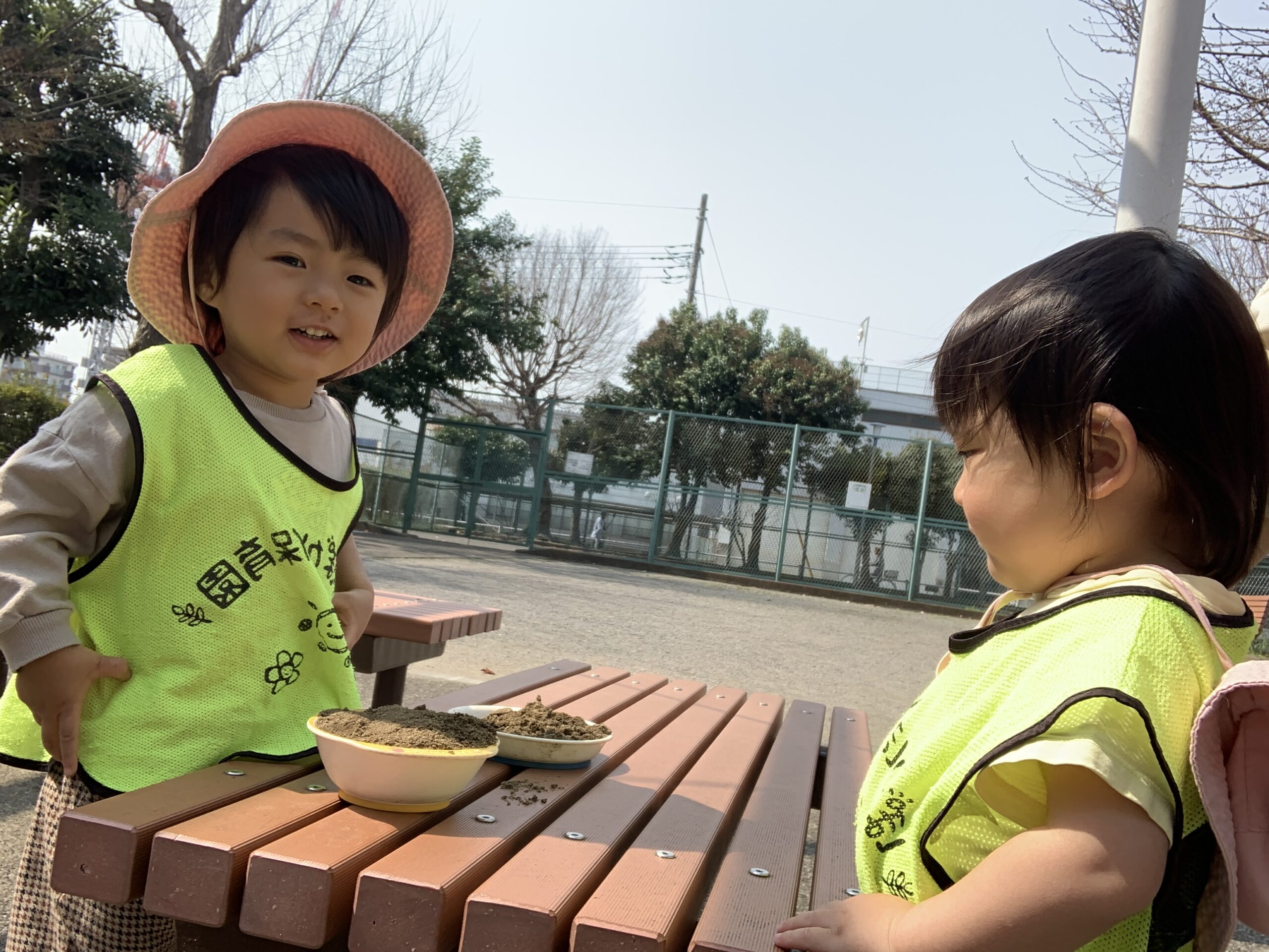 ベンチではお店屋さんごっこのはじまりはじまり!