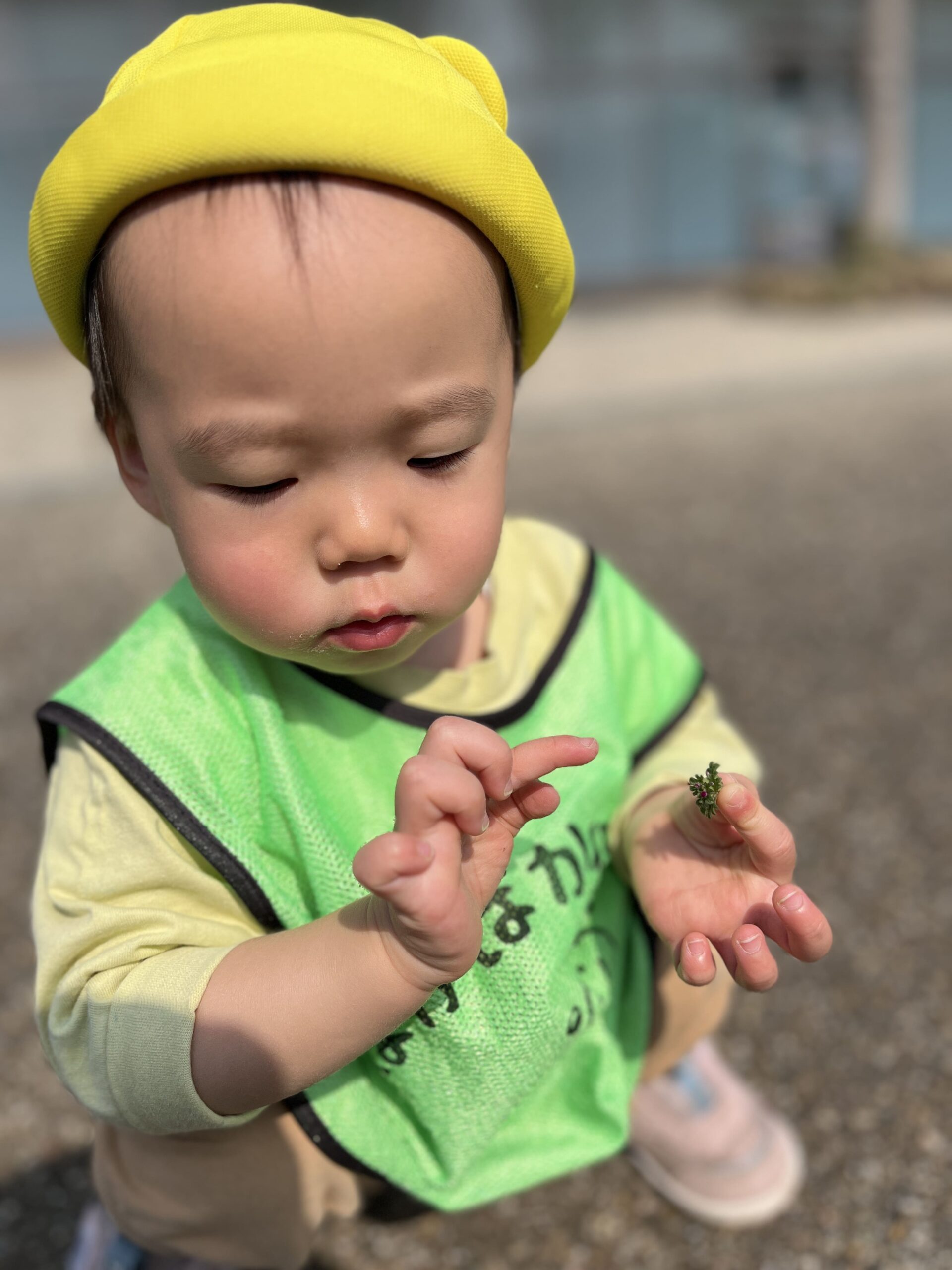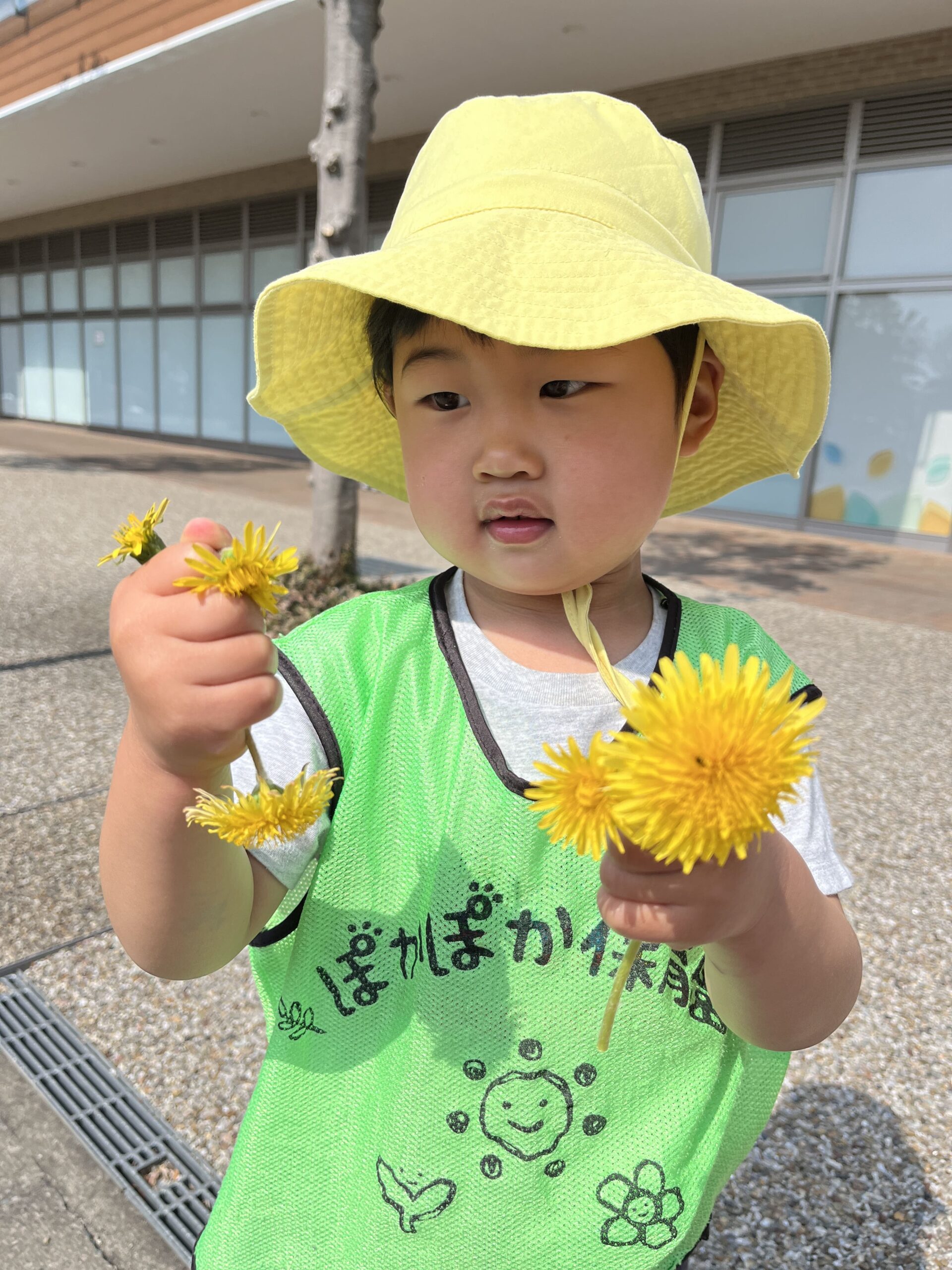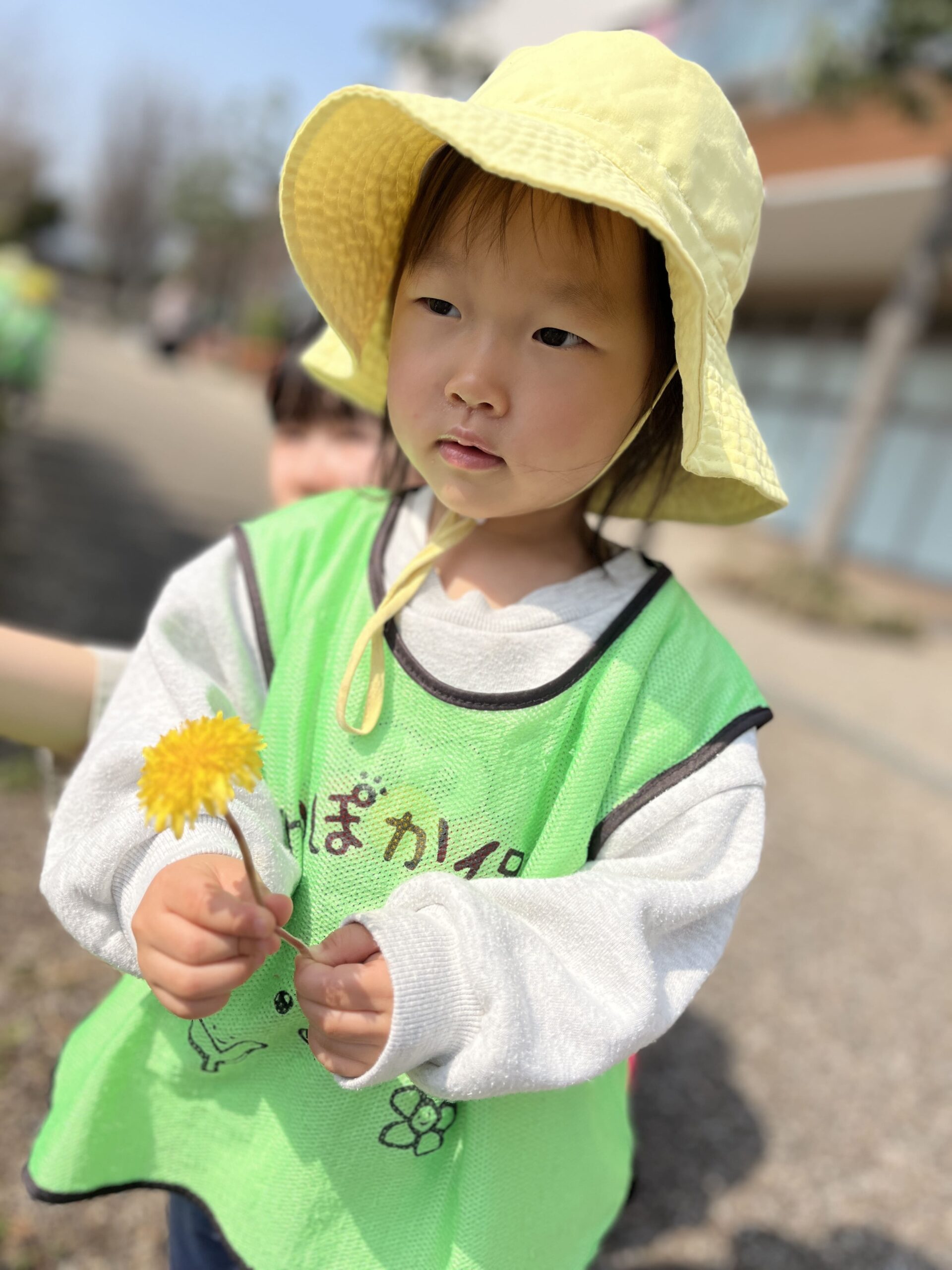 その後は園周辺のお散歩へ。満開のタンポポ、オオイヌノフグリ、ホトケノザ…子どもたちの足元にはもう春がいっぱい!「これはなぁに?」「おはなだね~」と春を見つけては、小さな発見を共有していました🌼