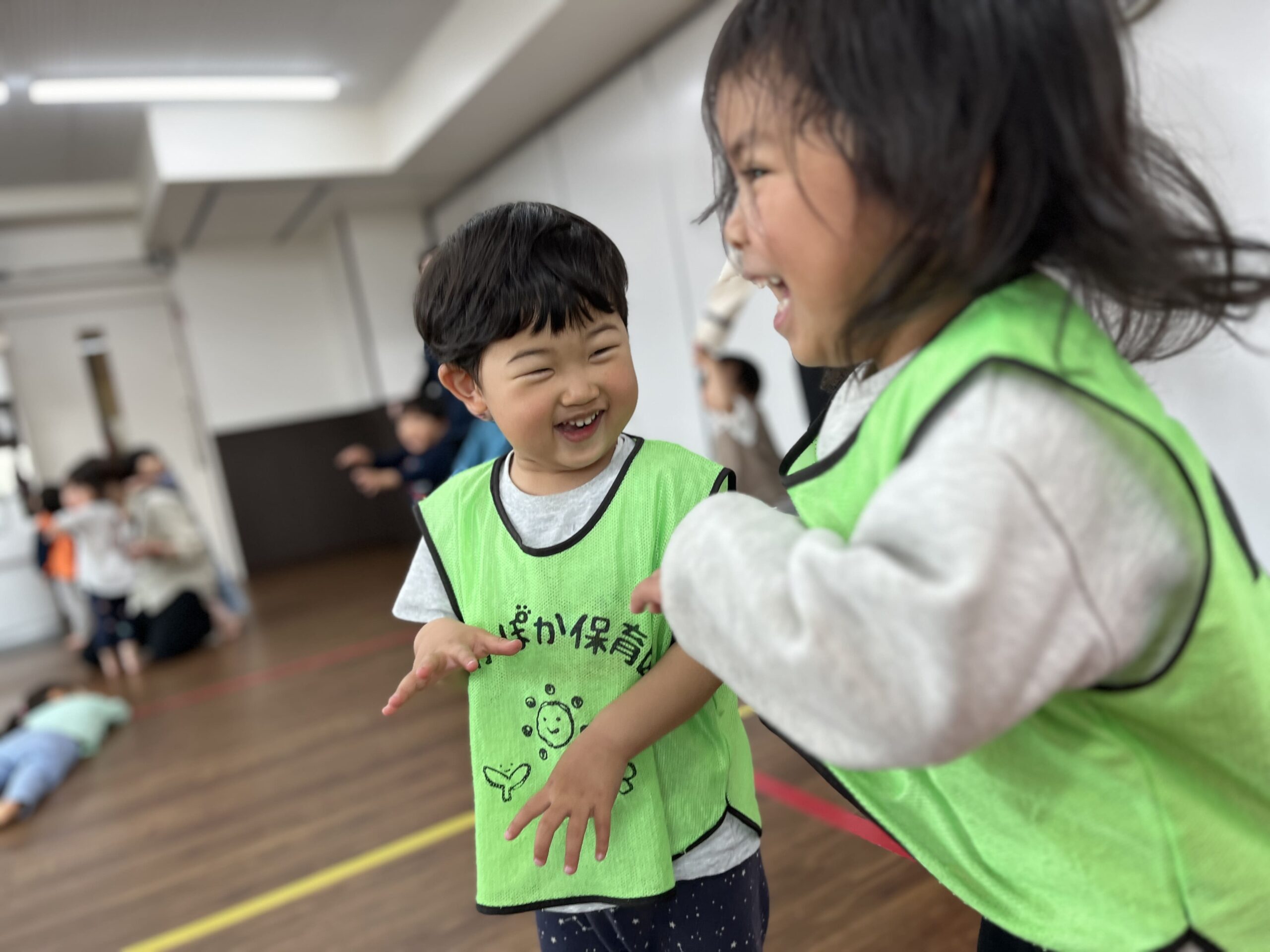 そして今日は、こども園・豊田園・多摩平園のみんなで行う、今年度最後のダンスの日でもありました!整列の姿からすでにやる気十分!準備運動もばっちりで、大好きな曲が流れると身体が自然に動き出すんです。驚くことに、初めての曲でも先生の動きをじっと見て、すぐにまねできる子がたくさん!「また踊ろうね♪」と笑顔で手を振って、楽しい時間を締めくくりました。