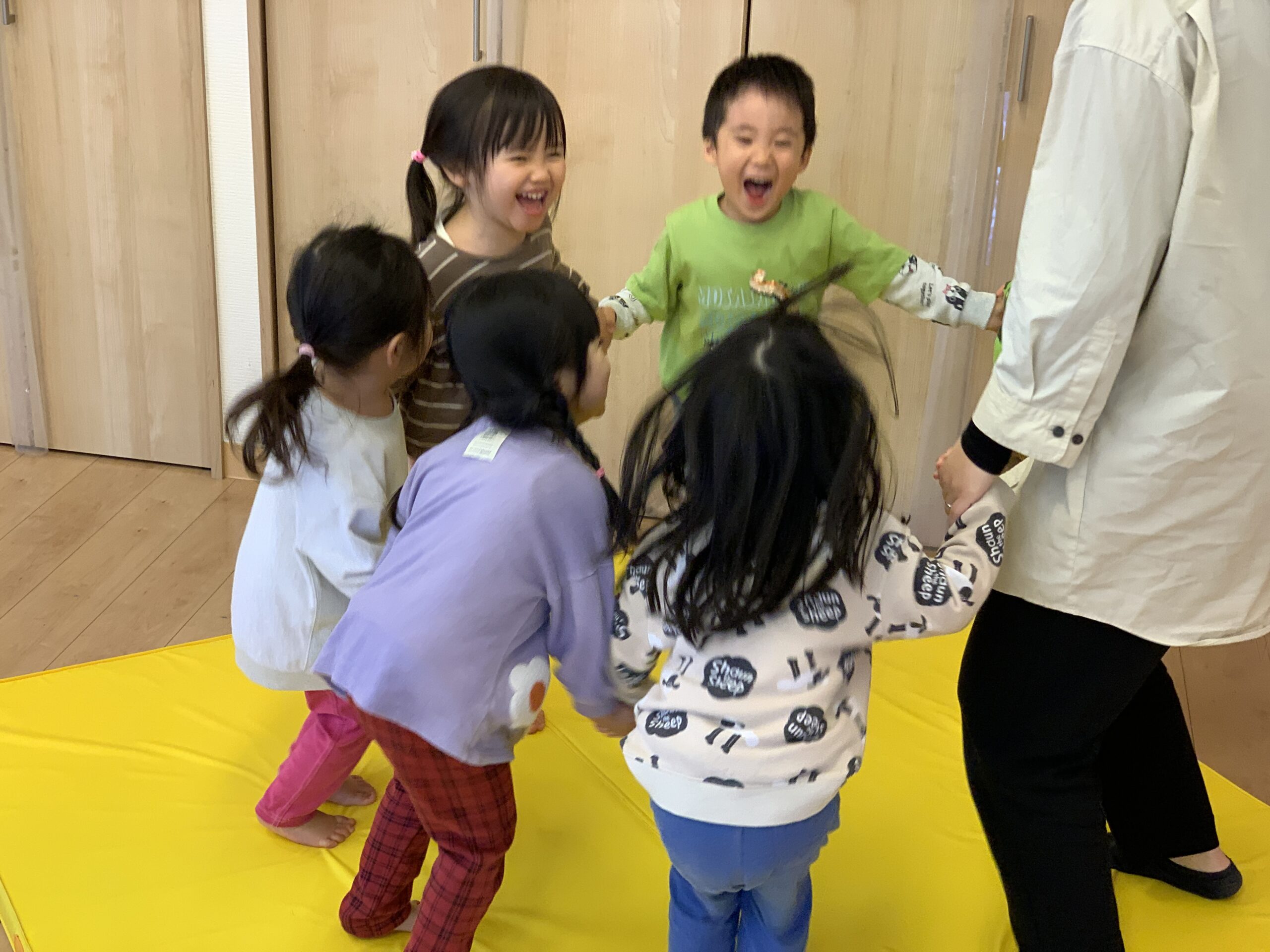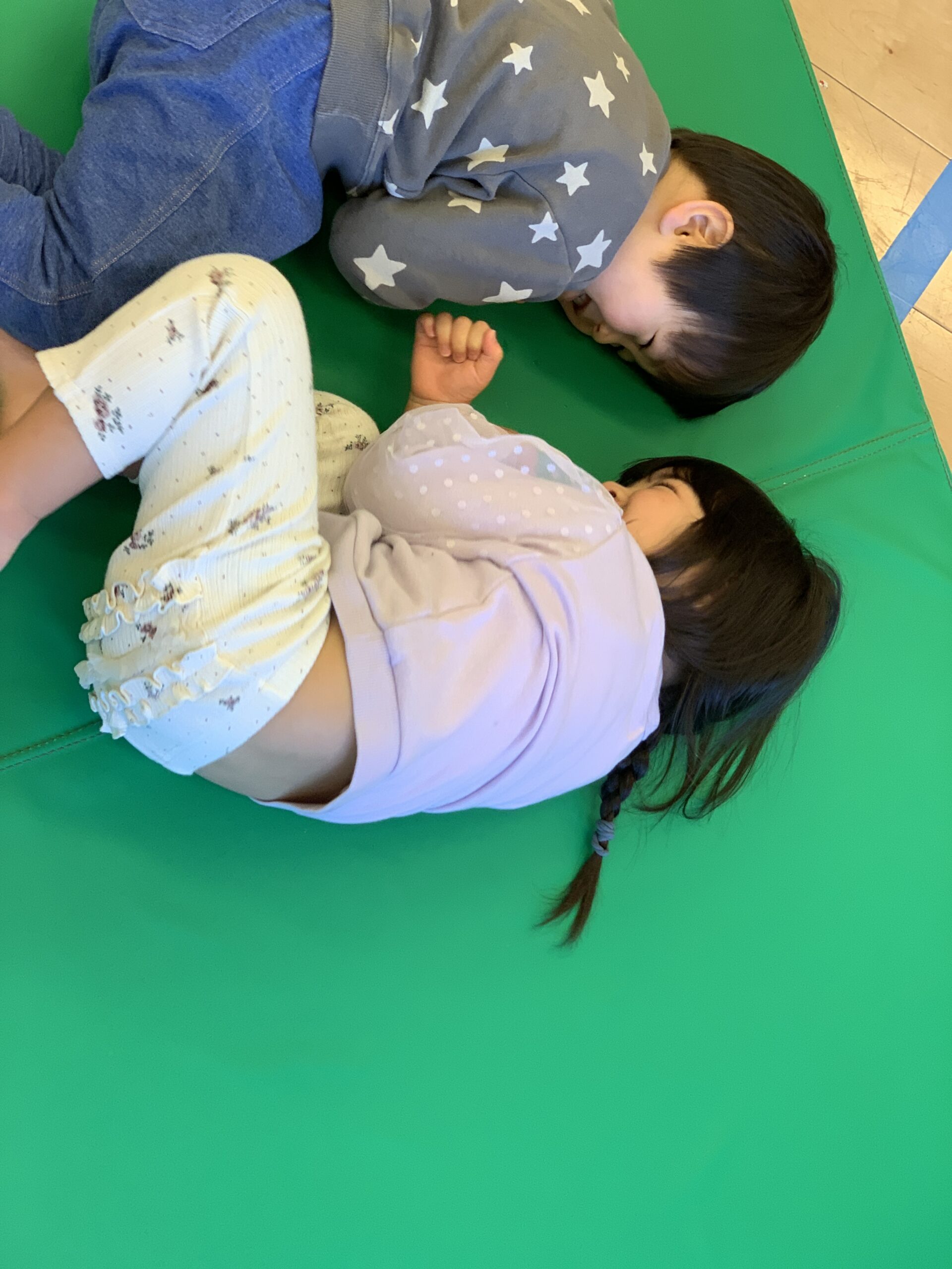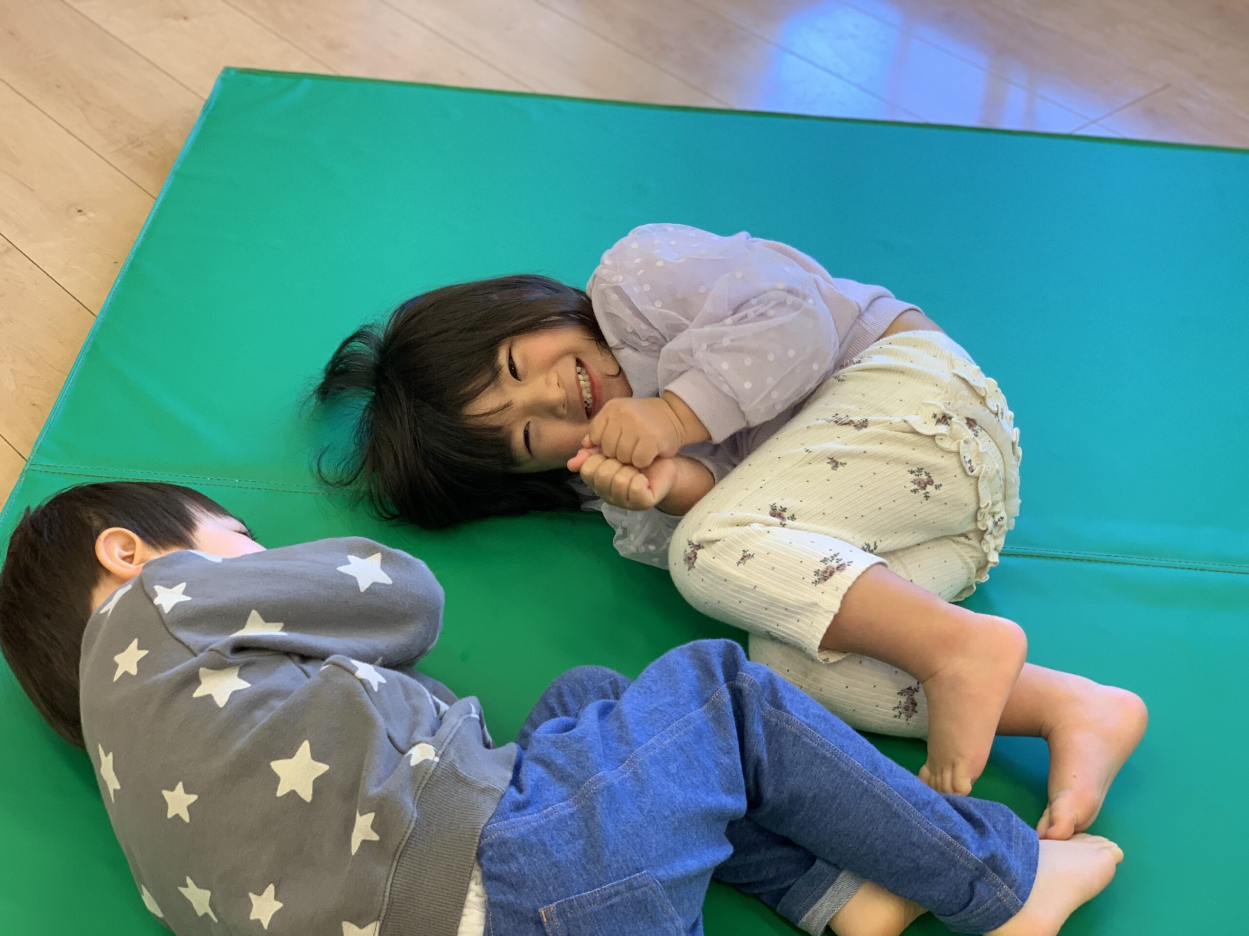 今日は朝からマットで運動遊び!