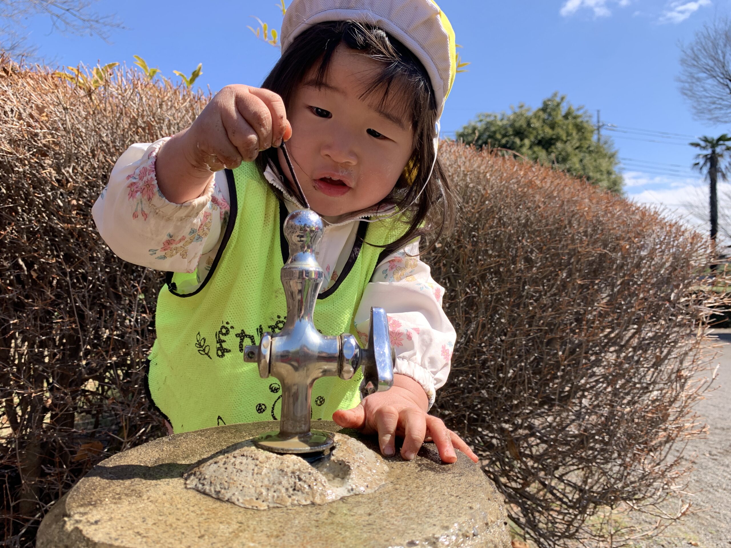公園には水道もあり、興味をもって水道の近くにいく子ども達もいます!