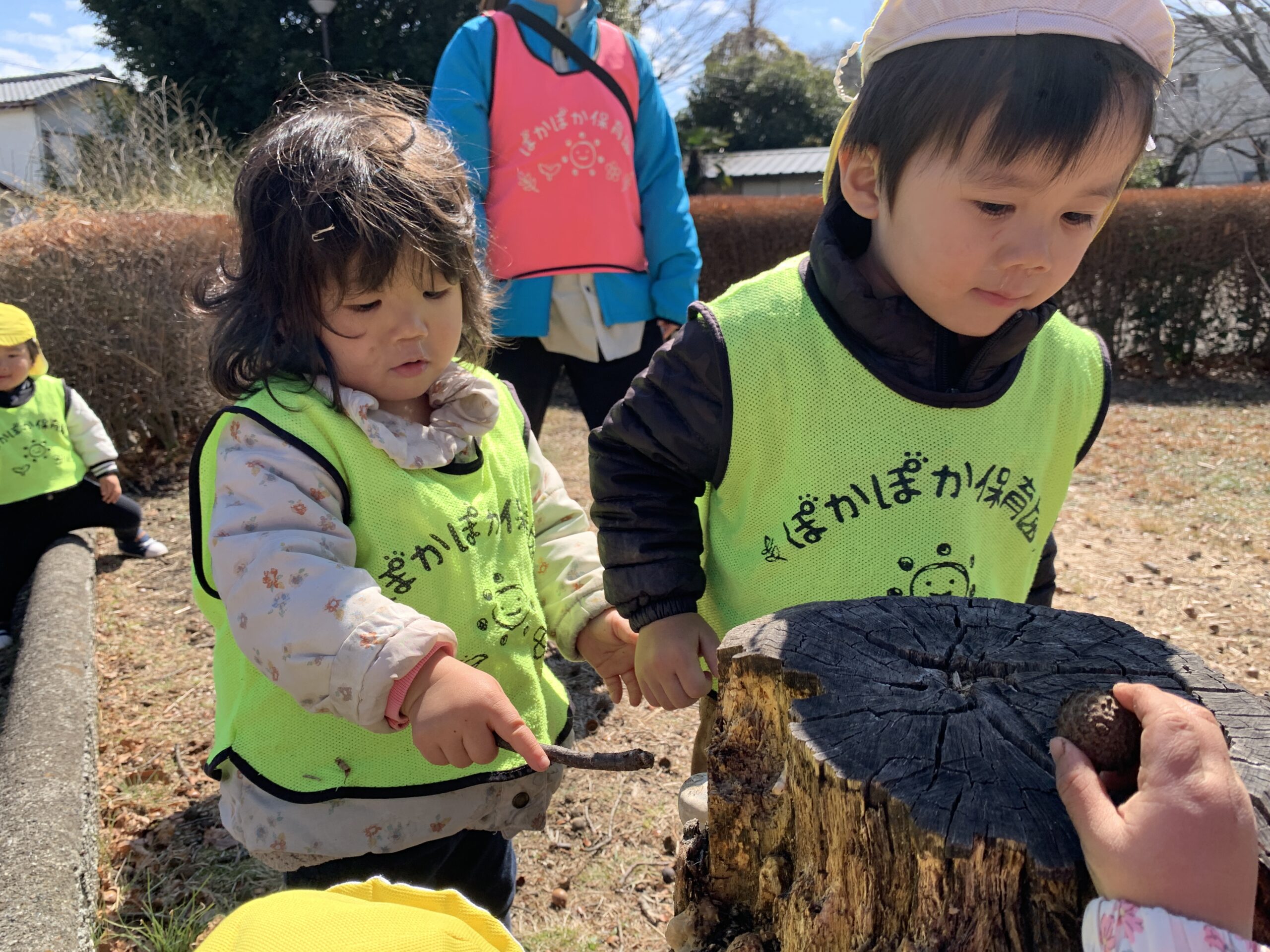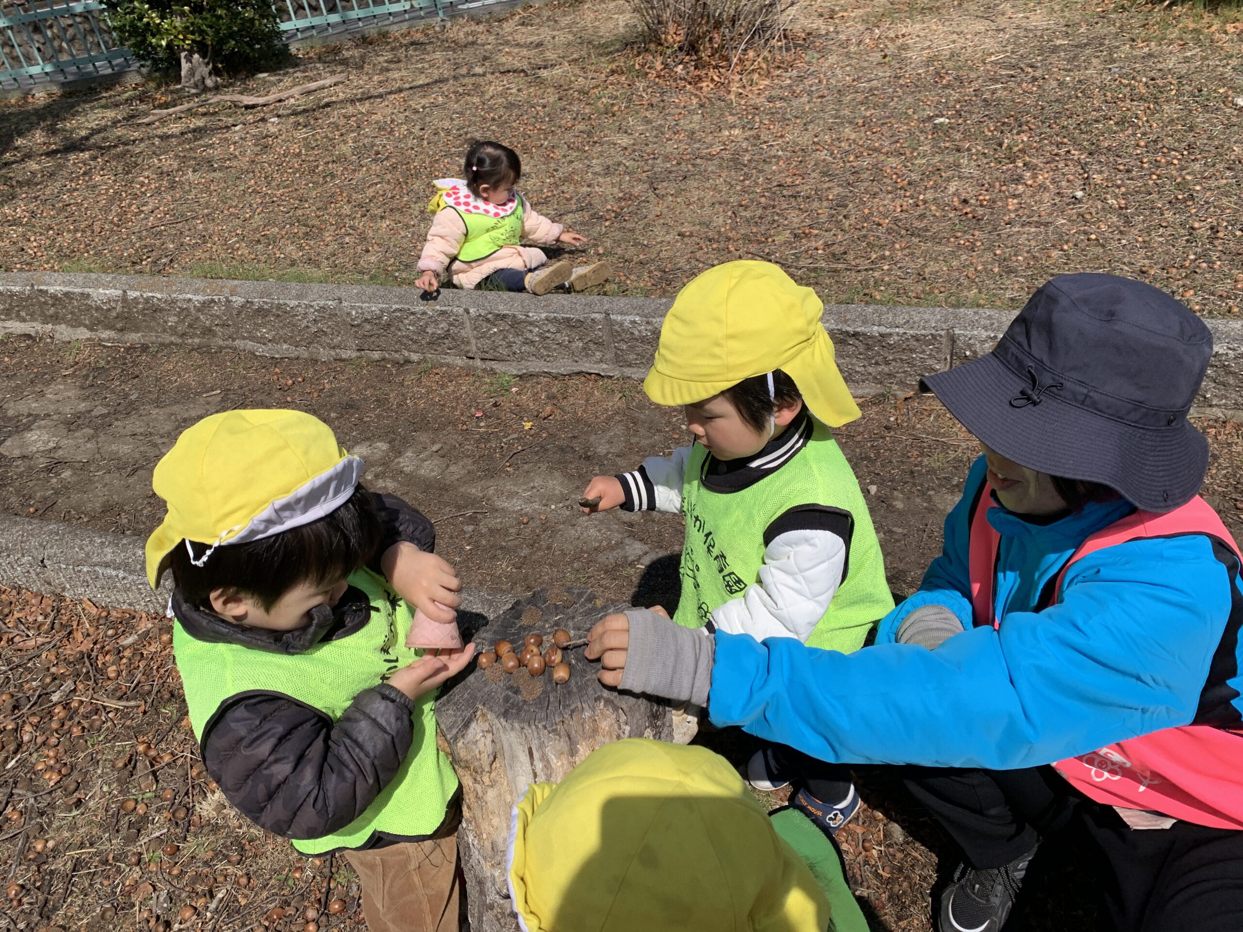 自然の中には、室内で遊ぶ玩具とは違って、ドングリなど魅力のあるものがあり、また違った楽しさがありますね♬