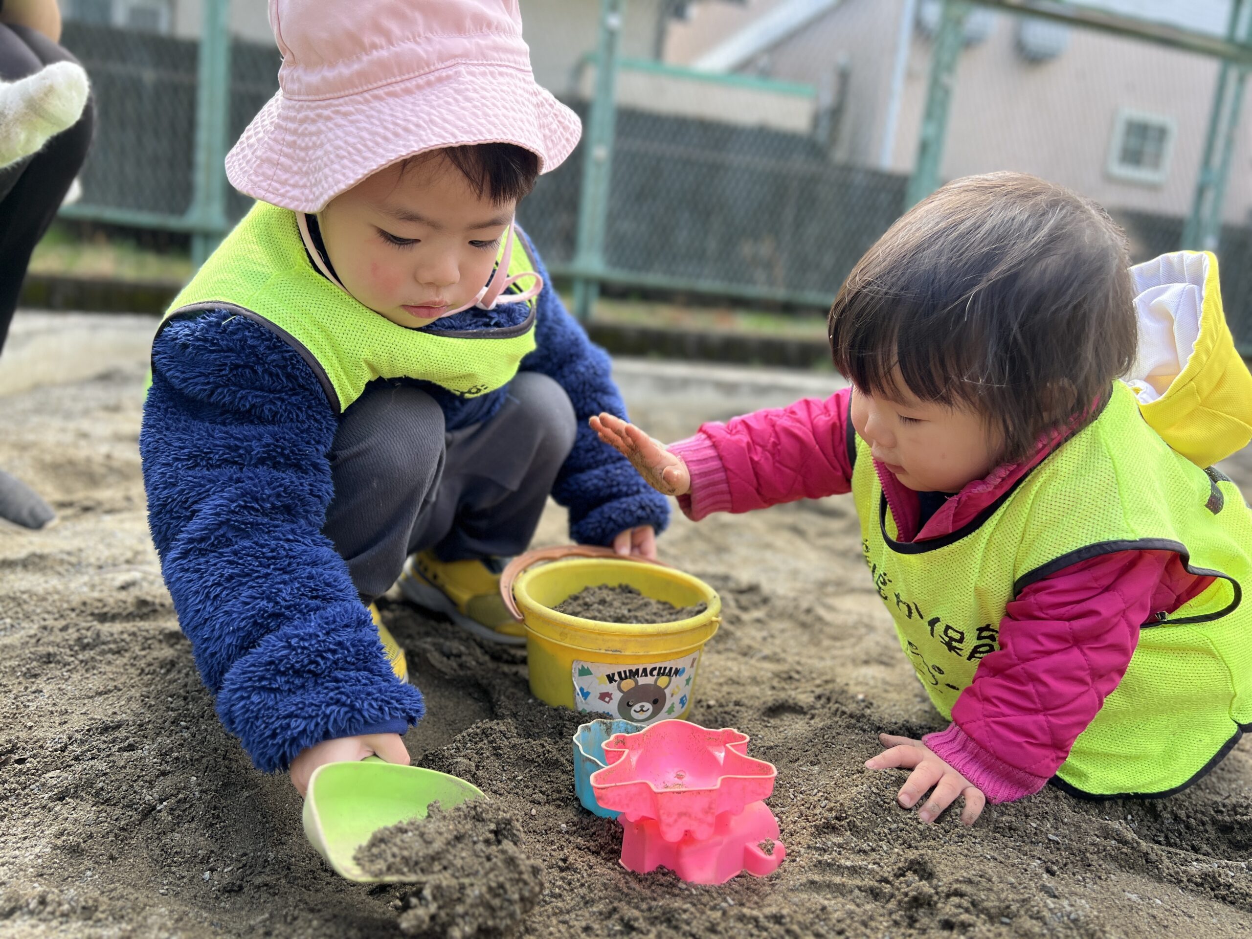 小さなお友だちは公園へお散歩に出かけました! 暖かい日差しの下、みんなで砂場遊びを楽しみました♪ 砂のおもちゃを使って、砂をすくってトントンと遊んだり、お山とお仕事したりしてました☆ 外で遊んで、子ども自然選手と触れ合い、季節の変化を感じることができましたね♪ ぽかぽか陽気の中で遊んでいる子どもたちの顔が、みんなとても楽しかったです♡
