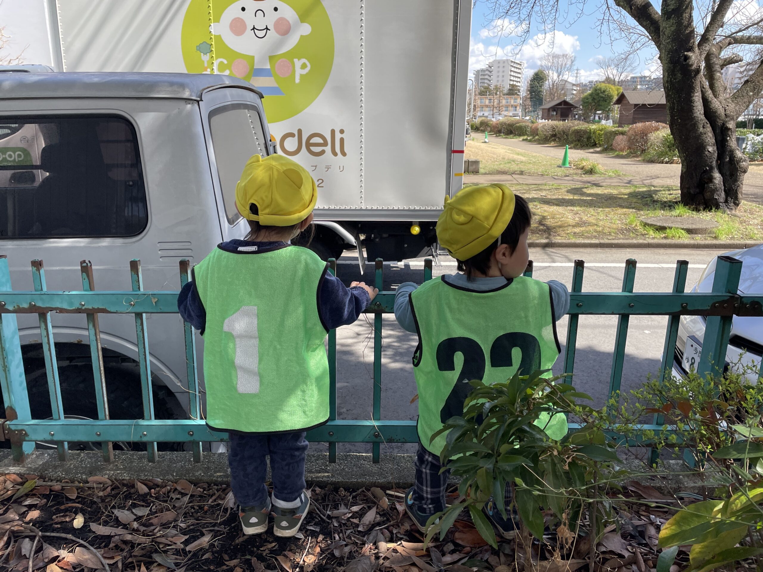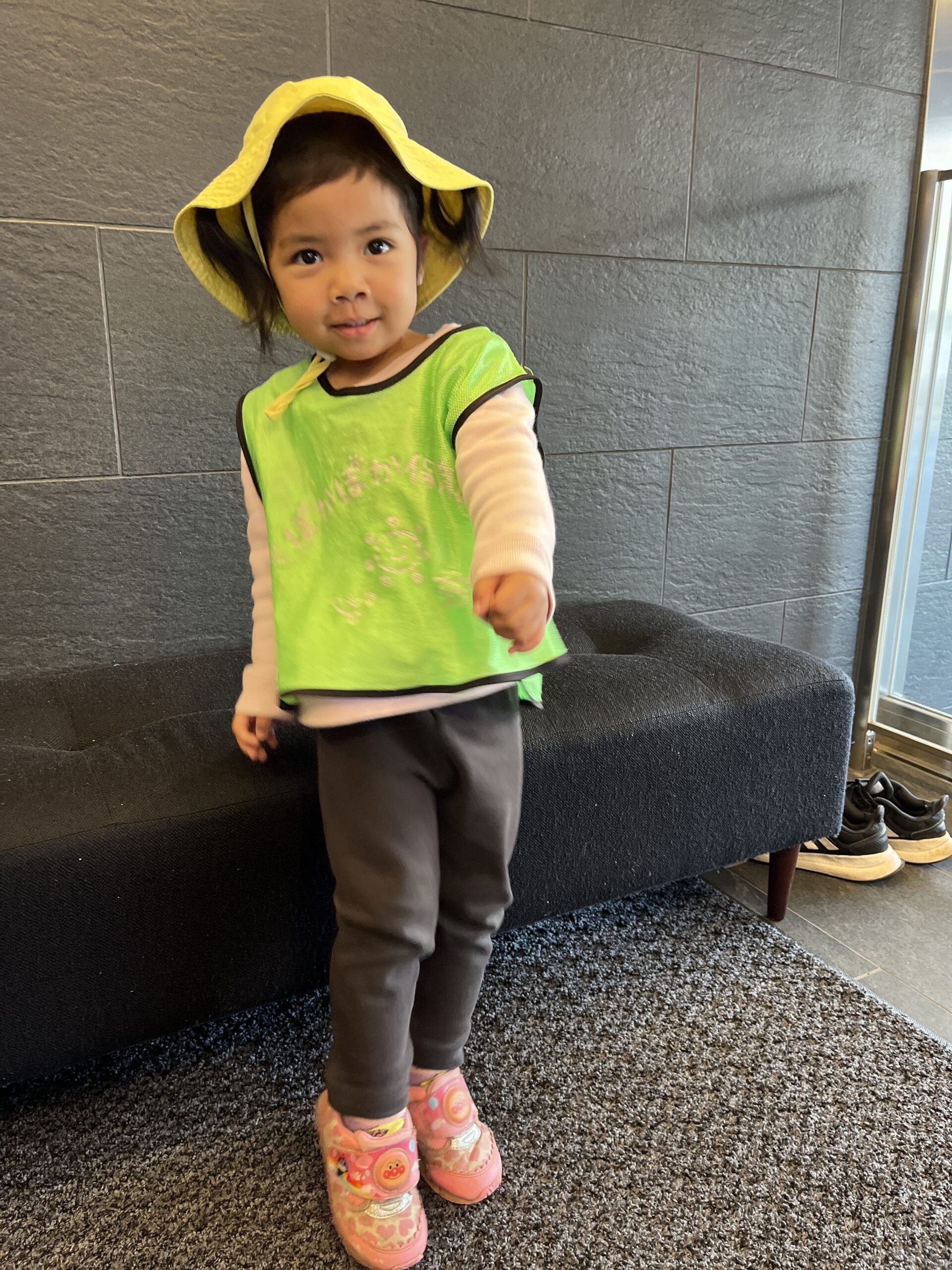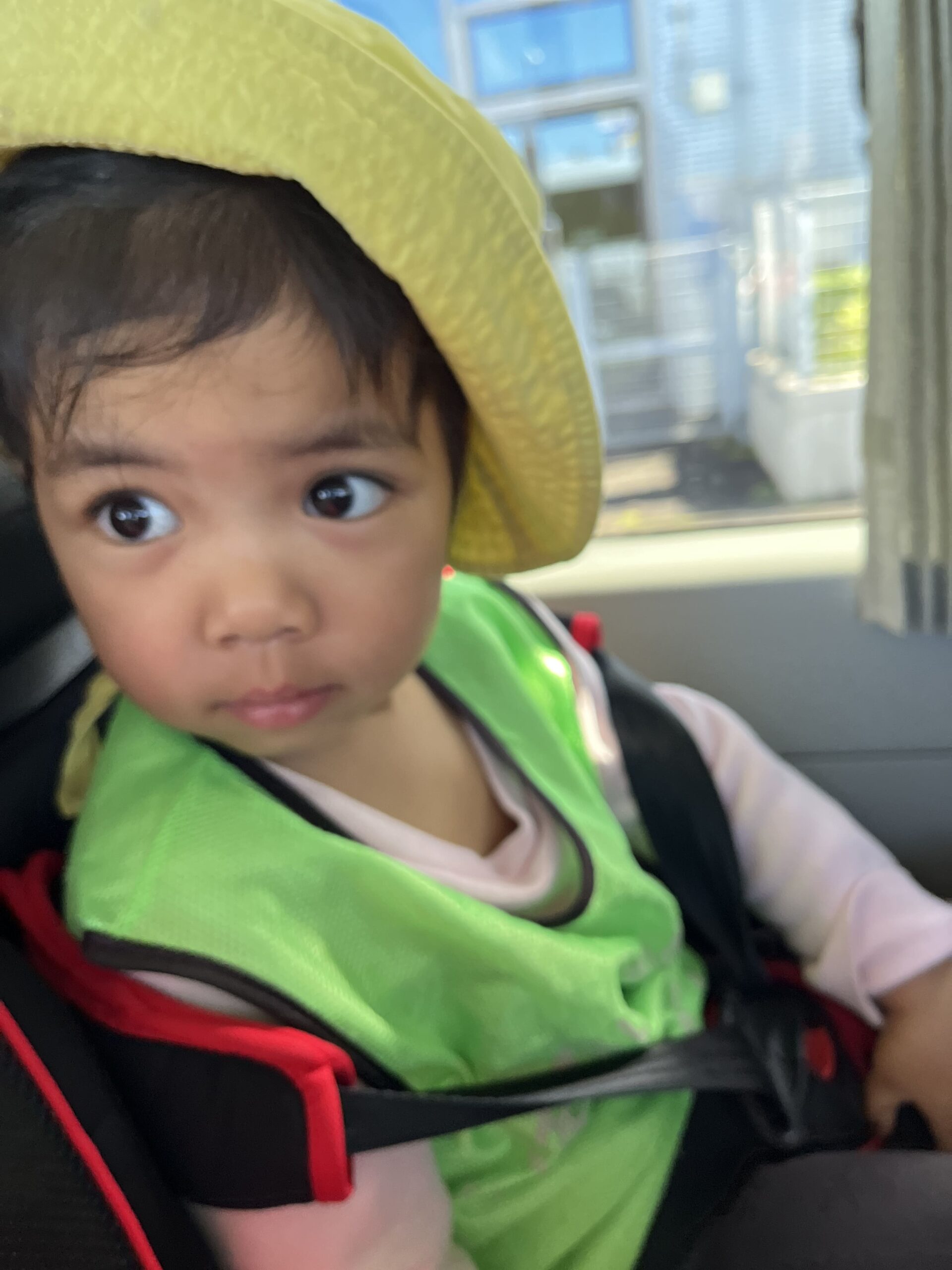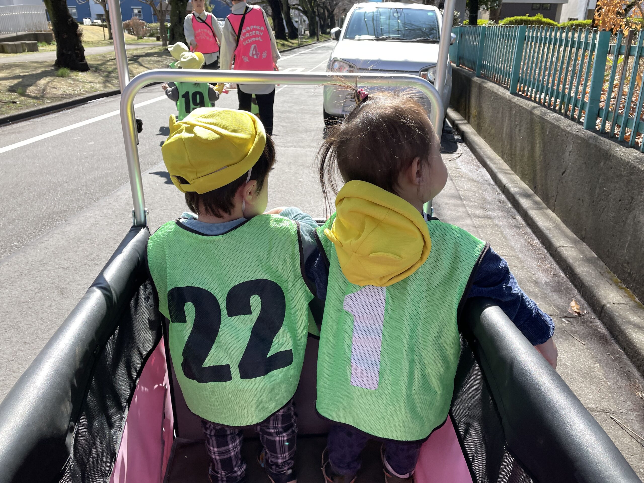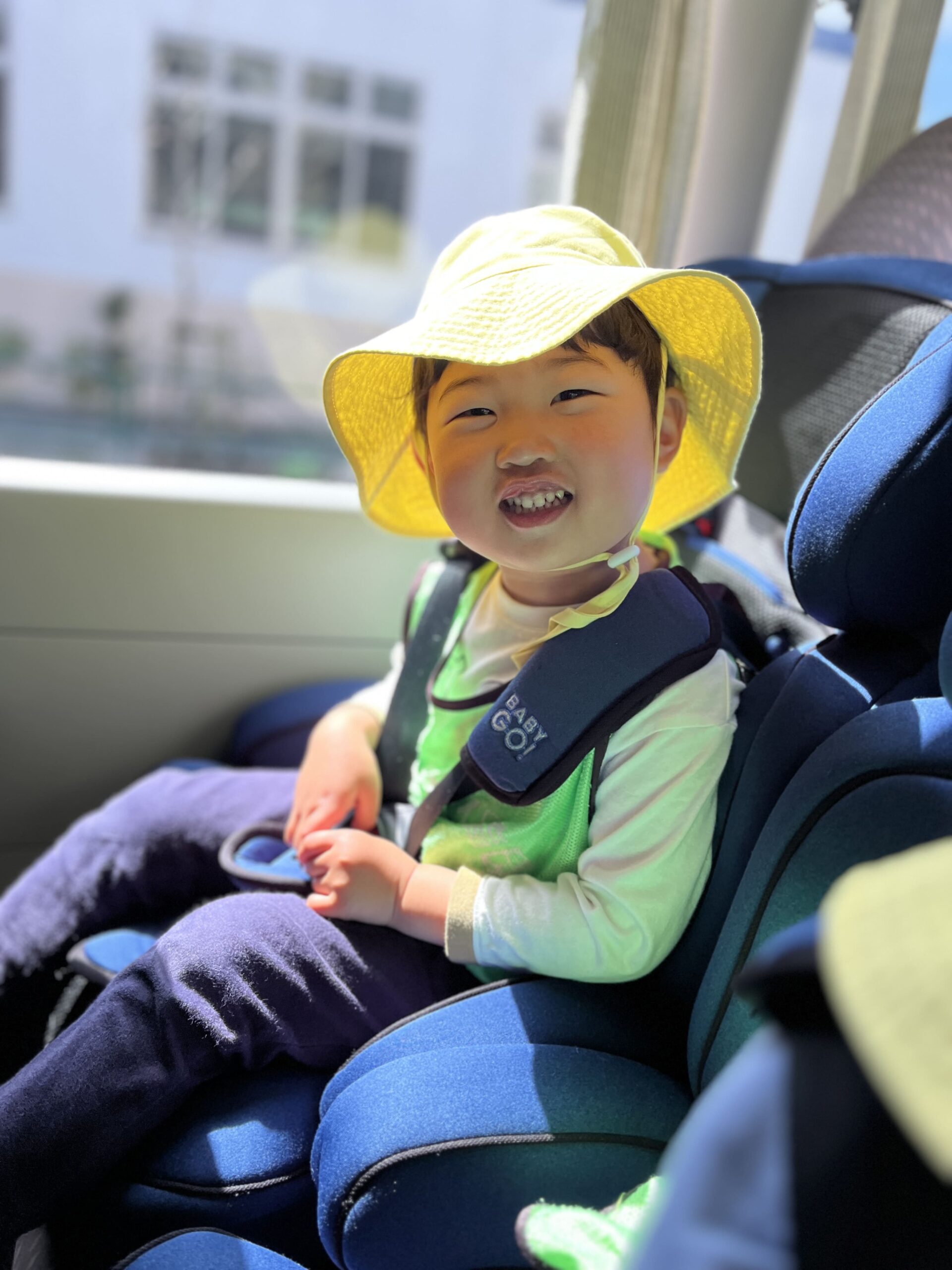 さて、2歳児さんはというと、バスに乗ってどこかへ出かけているようですよ。