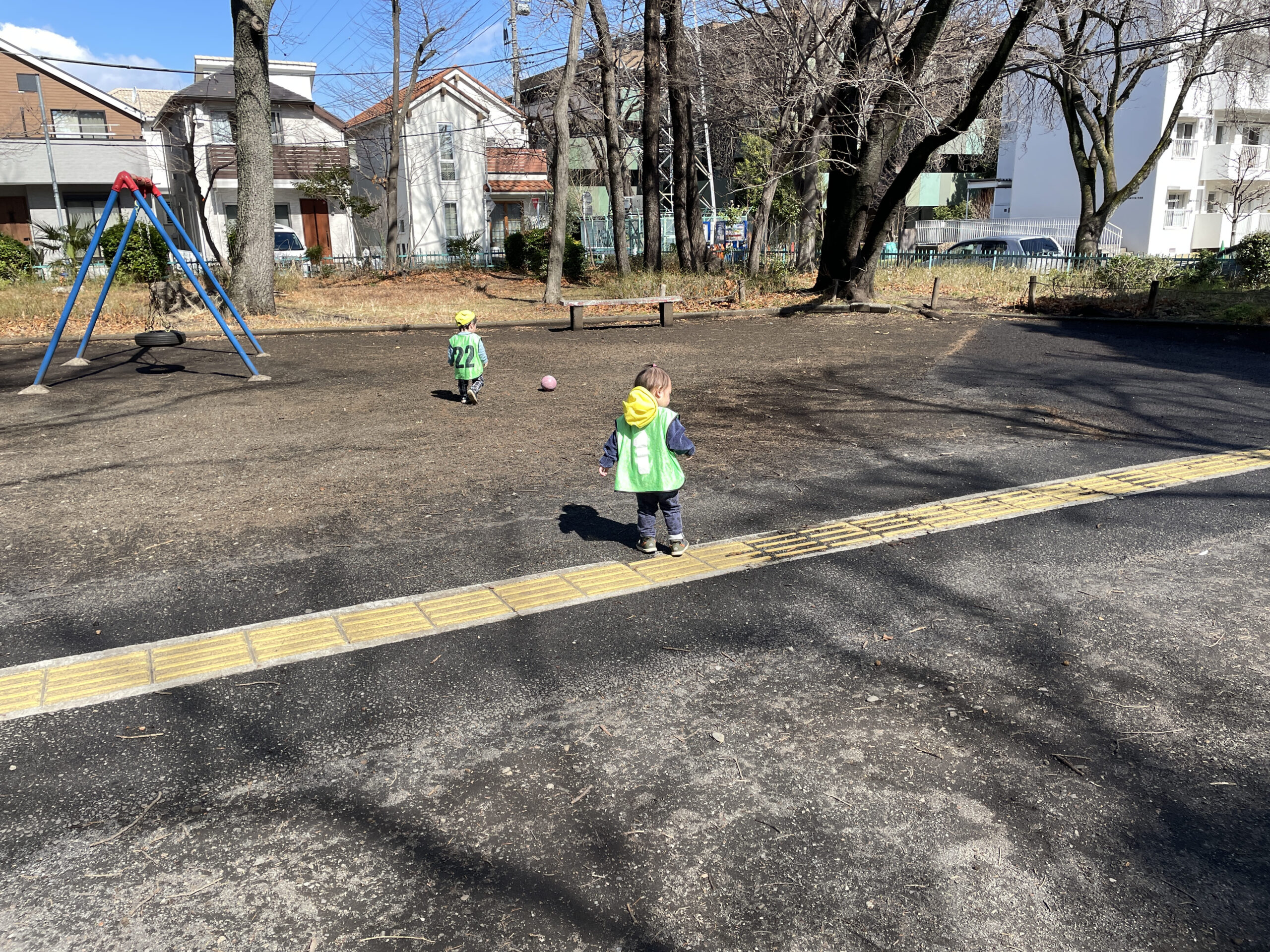 その後は公園へ出発!お散歩ロープを持って、元気な足取りです。