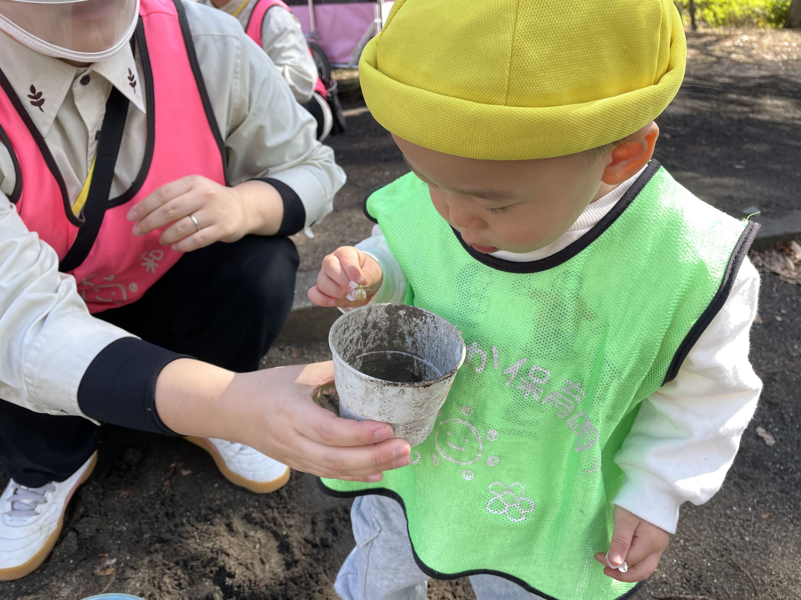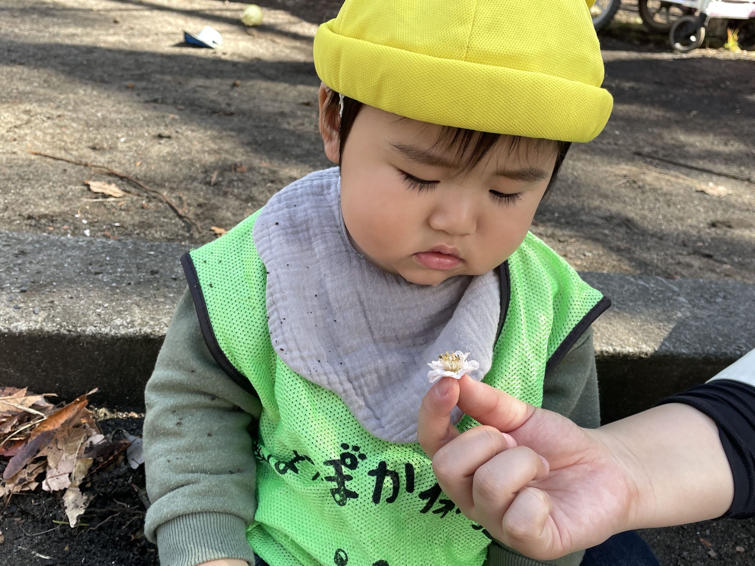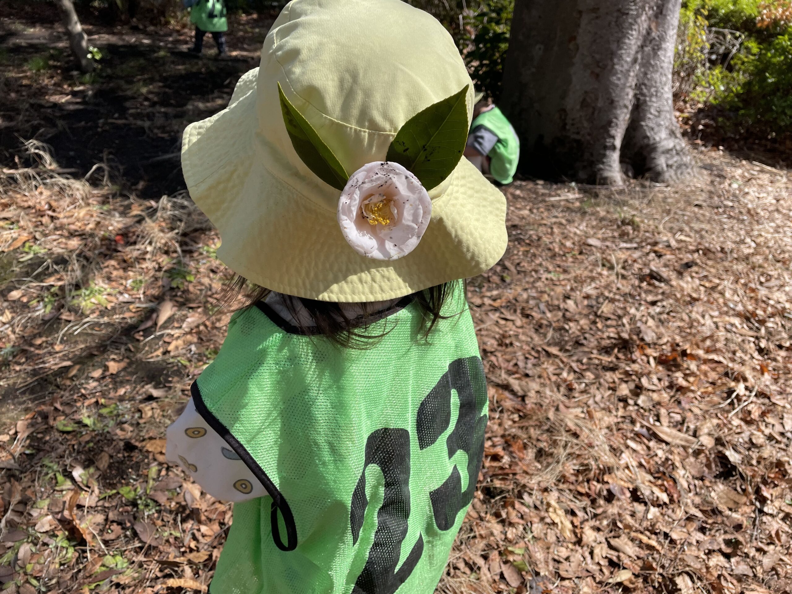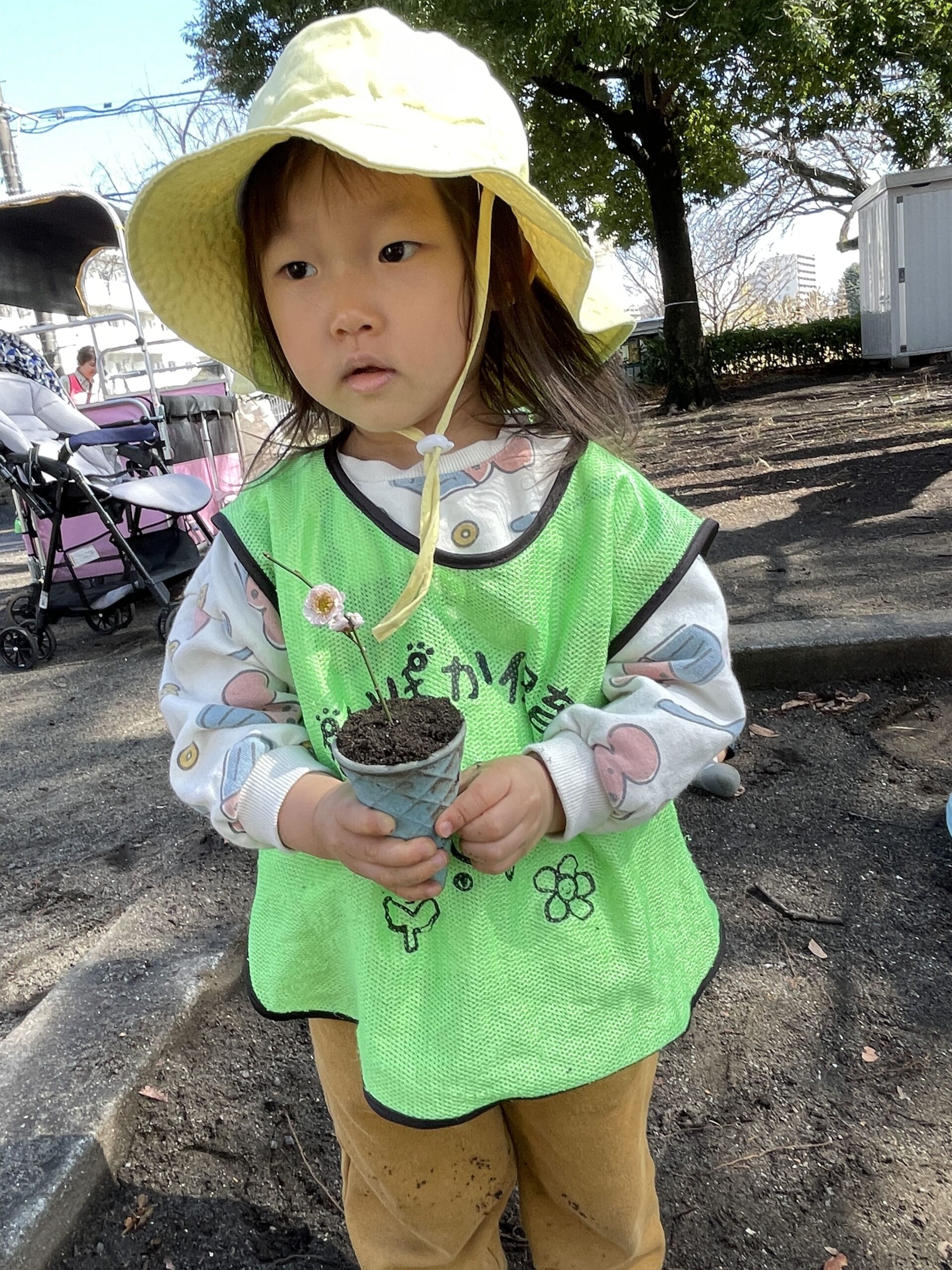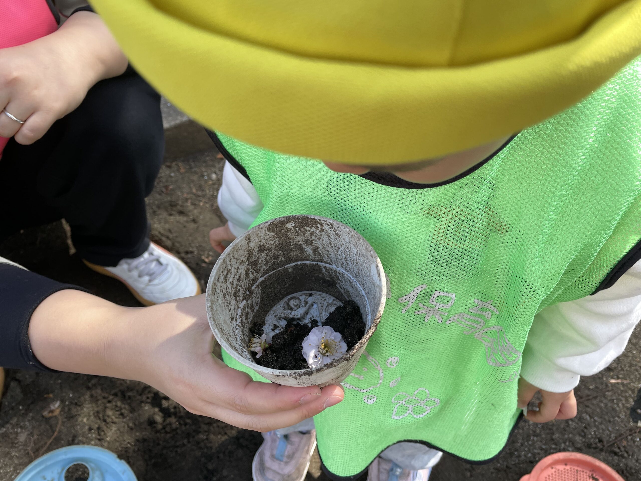 梅の花が咲いていたんだって。落ちていたお花を拾って綺麗だねと観察しました。