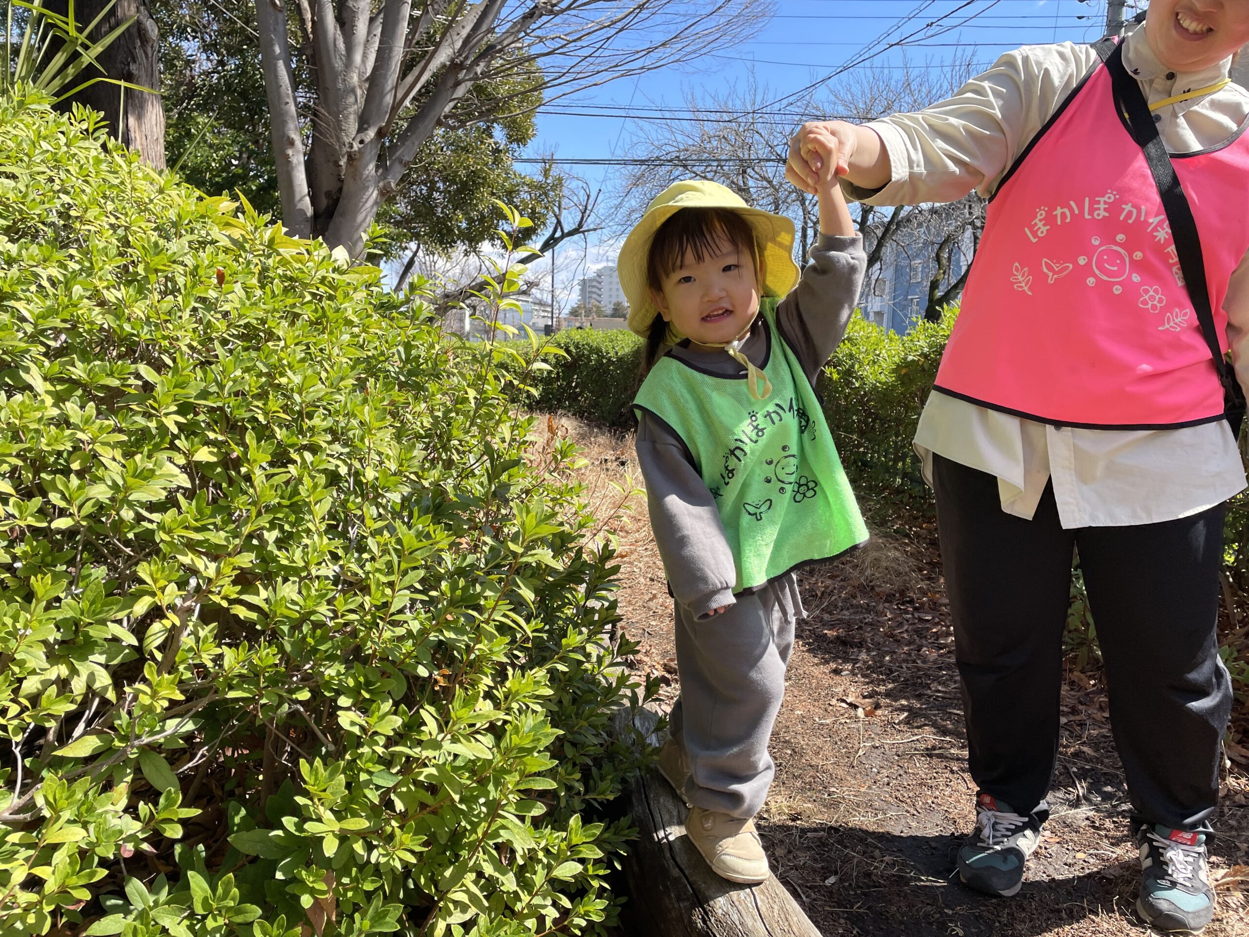 私は丸太の上を歩いてみたよ。保育園でも平均台を使って練習しているのよ♪