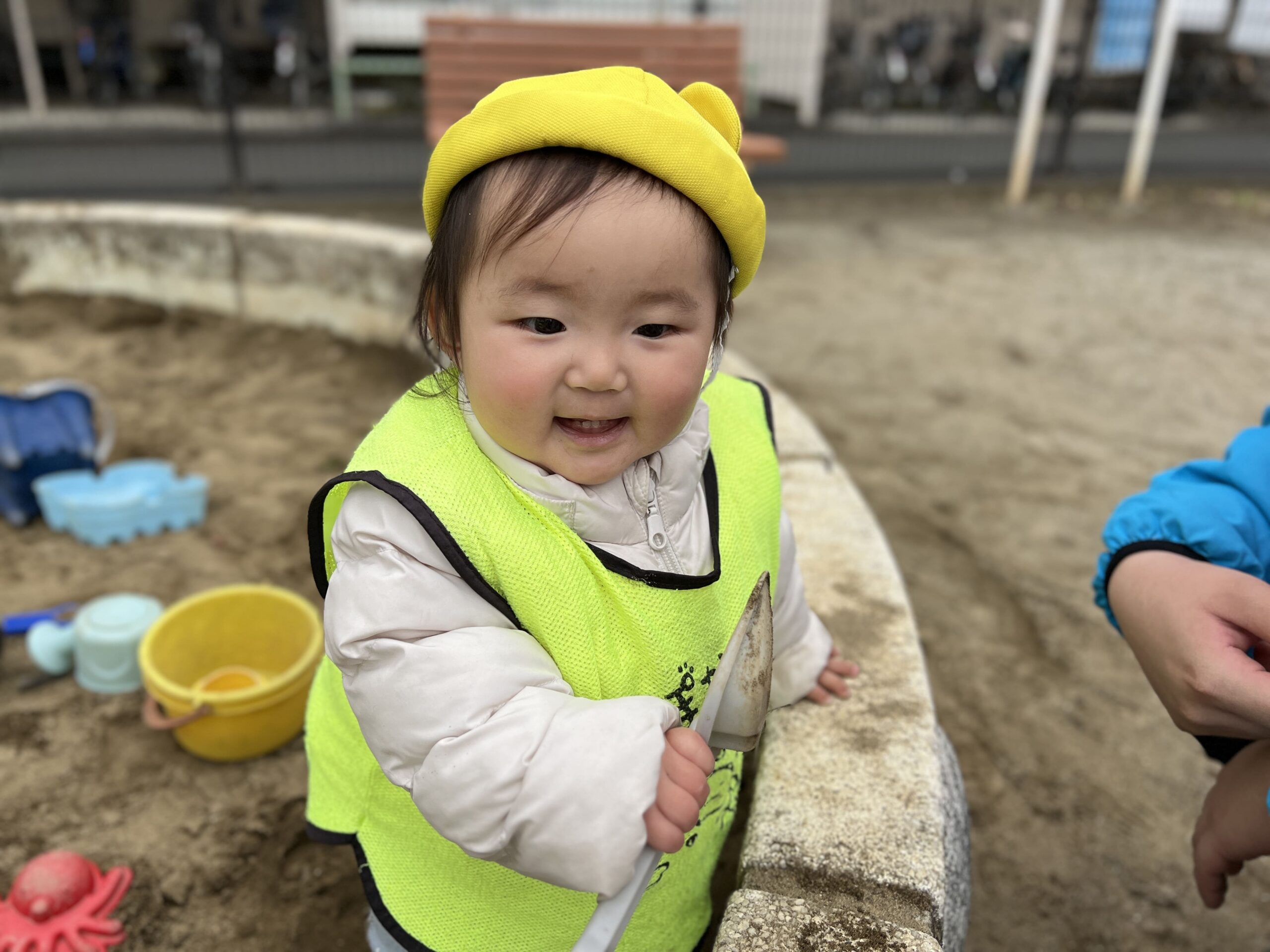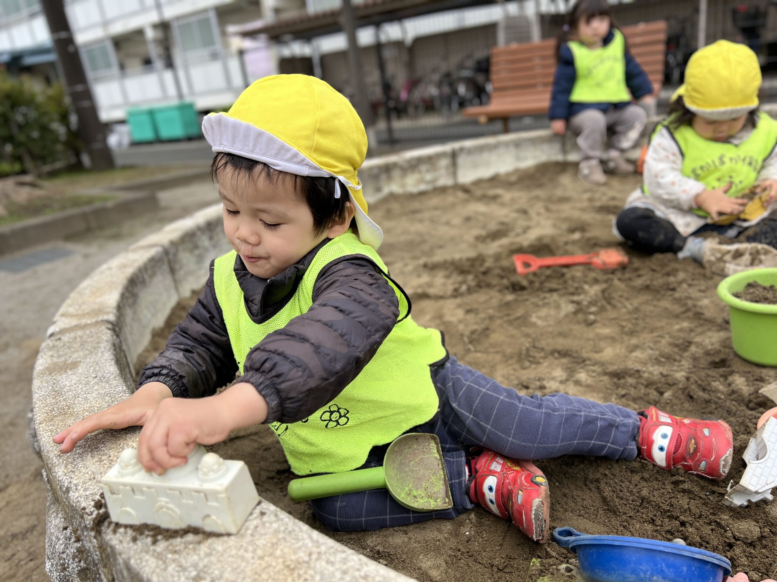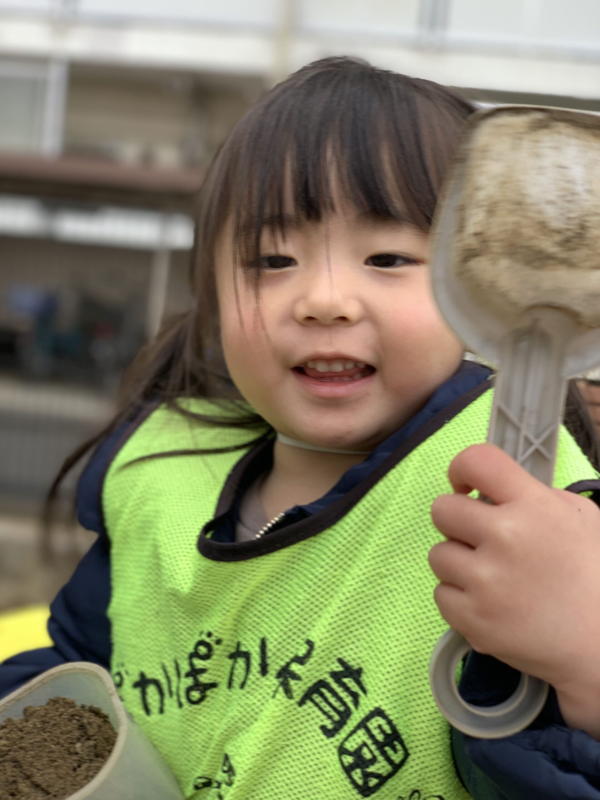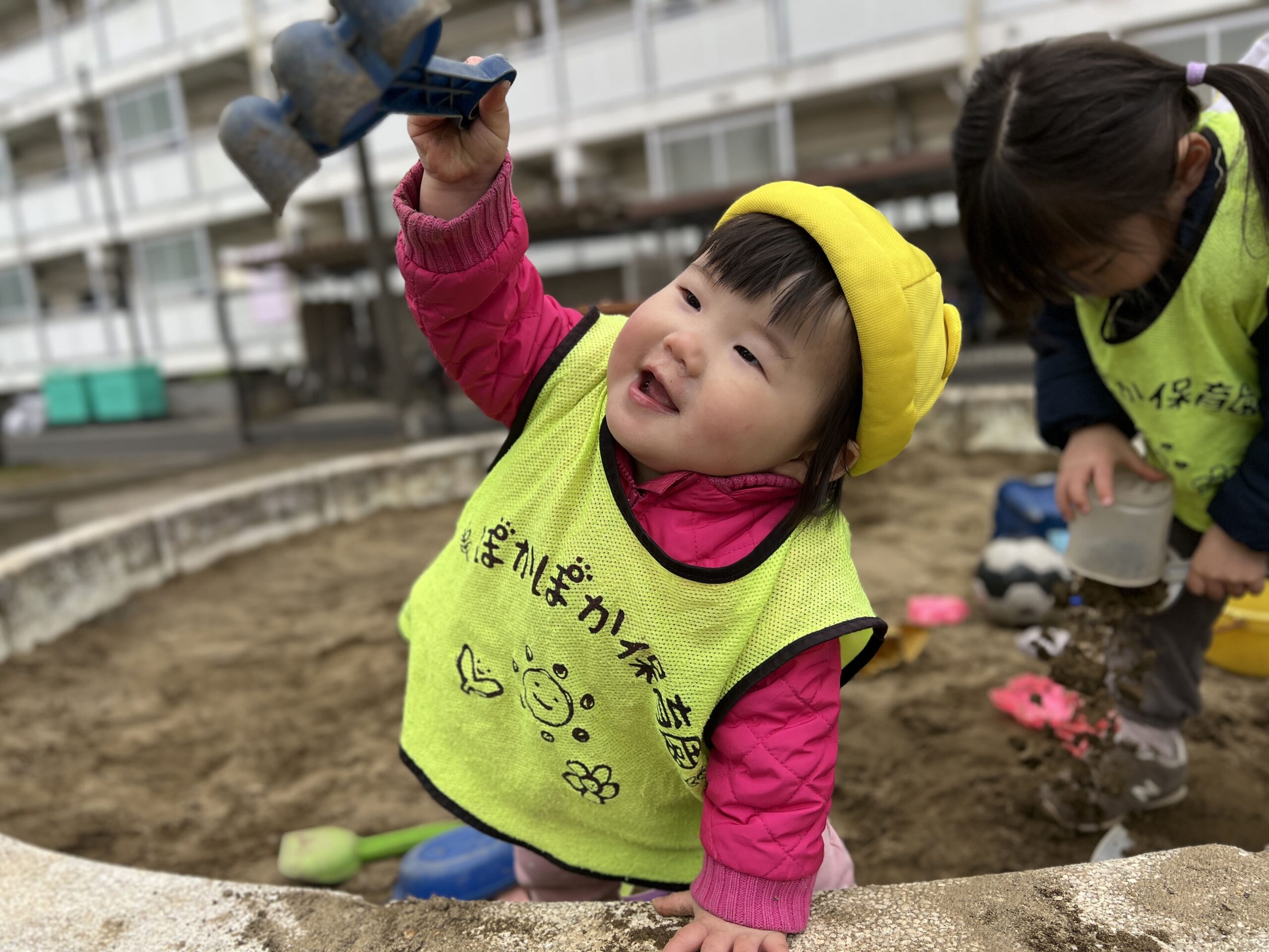 今日は曇り空の下、0~2歳児の子どもたちは元気に登園してくれました!