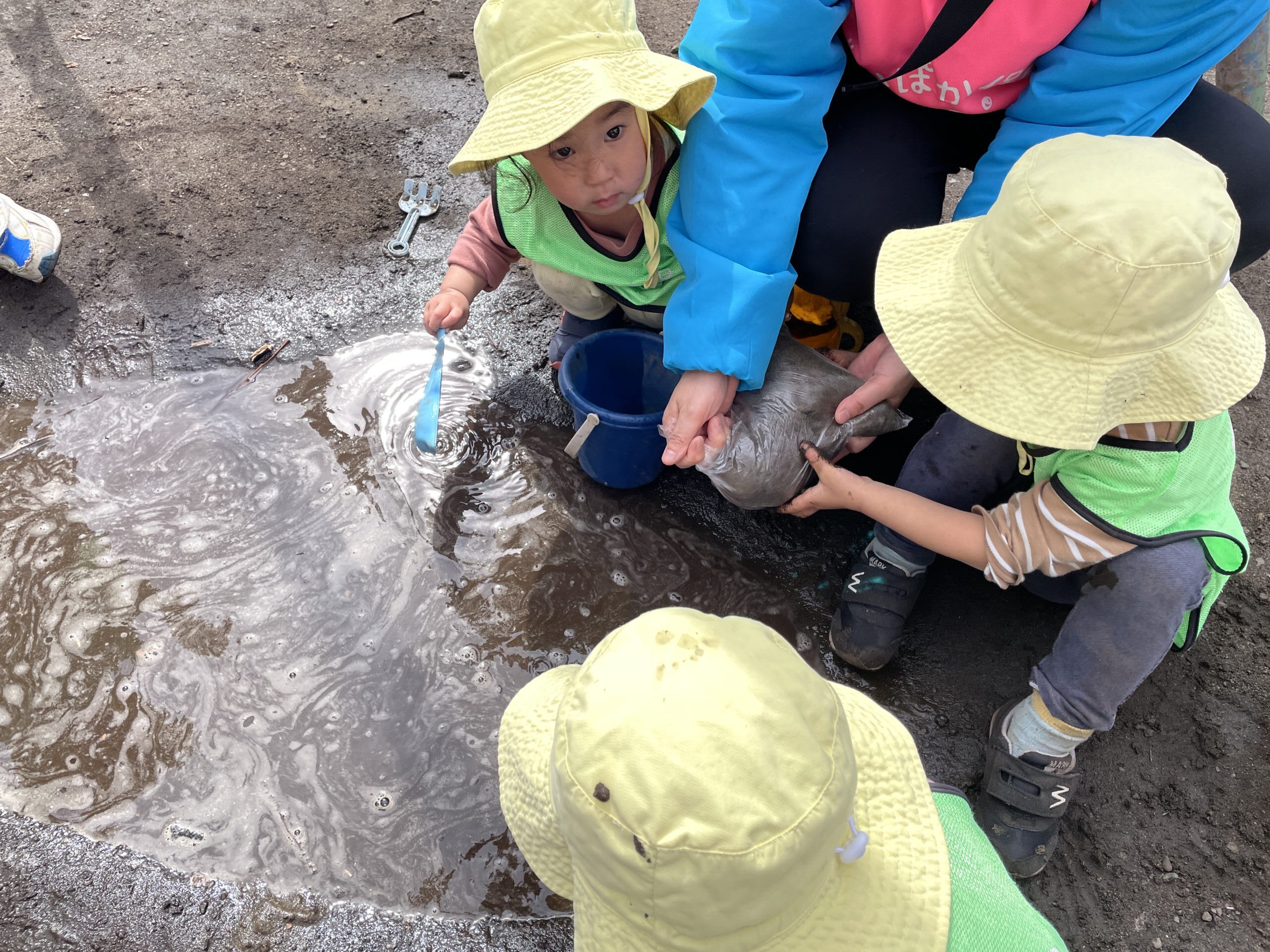 今日も元気いっぱいに遊べてました。どろんこ遊びがみんな好きで「楽しかった♡」「また遊びたい!」とお話してくれた子ども達!