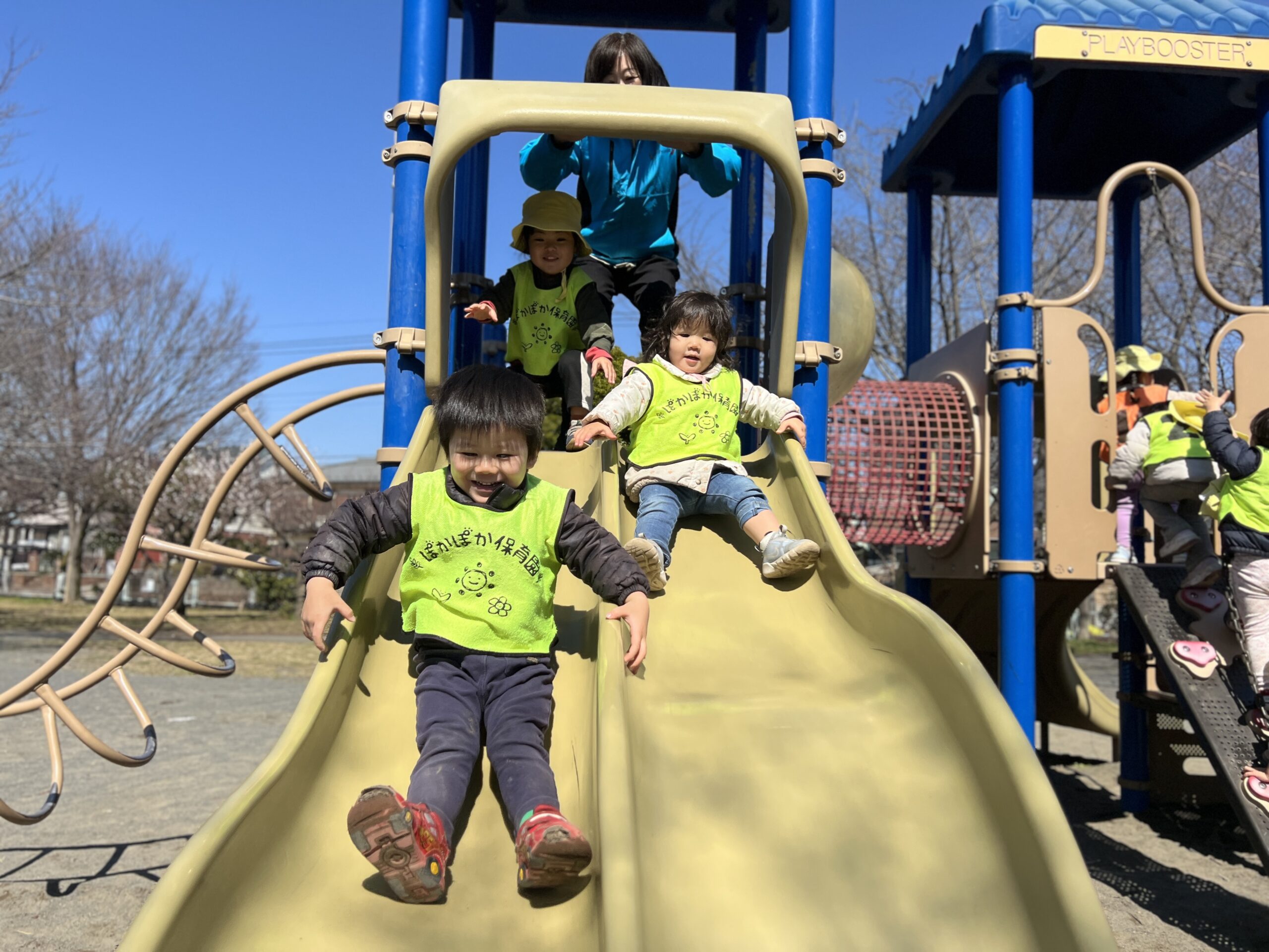 ぽかぽか保育園では、屋外での活動を大切にしております、子どもたちが自然に触れ合いながら、季節を感じることができる環境を提供しています。また、遊びの中での体力や協力性、コミュニケーション力が育んでいきます♪