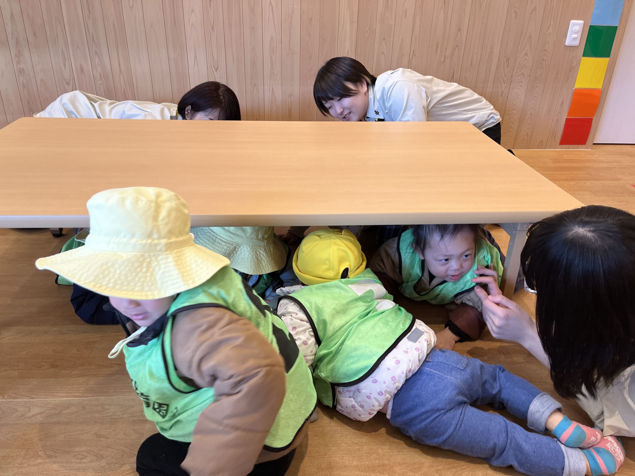 晴れ渡った空の下、園内で避難訓練が行われました。訓練前には「おかしも」のお約束をしっかり確認した後、子どもたち真剣に避難行動を実施しました。真剣に取り組む姿に、子どもたちの成長を感じる一日になりました。