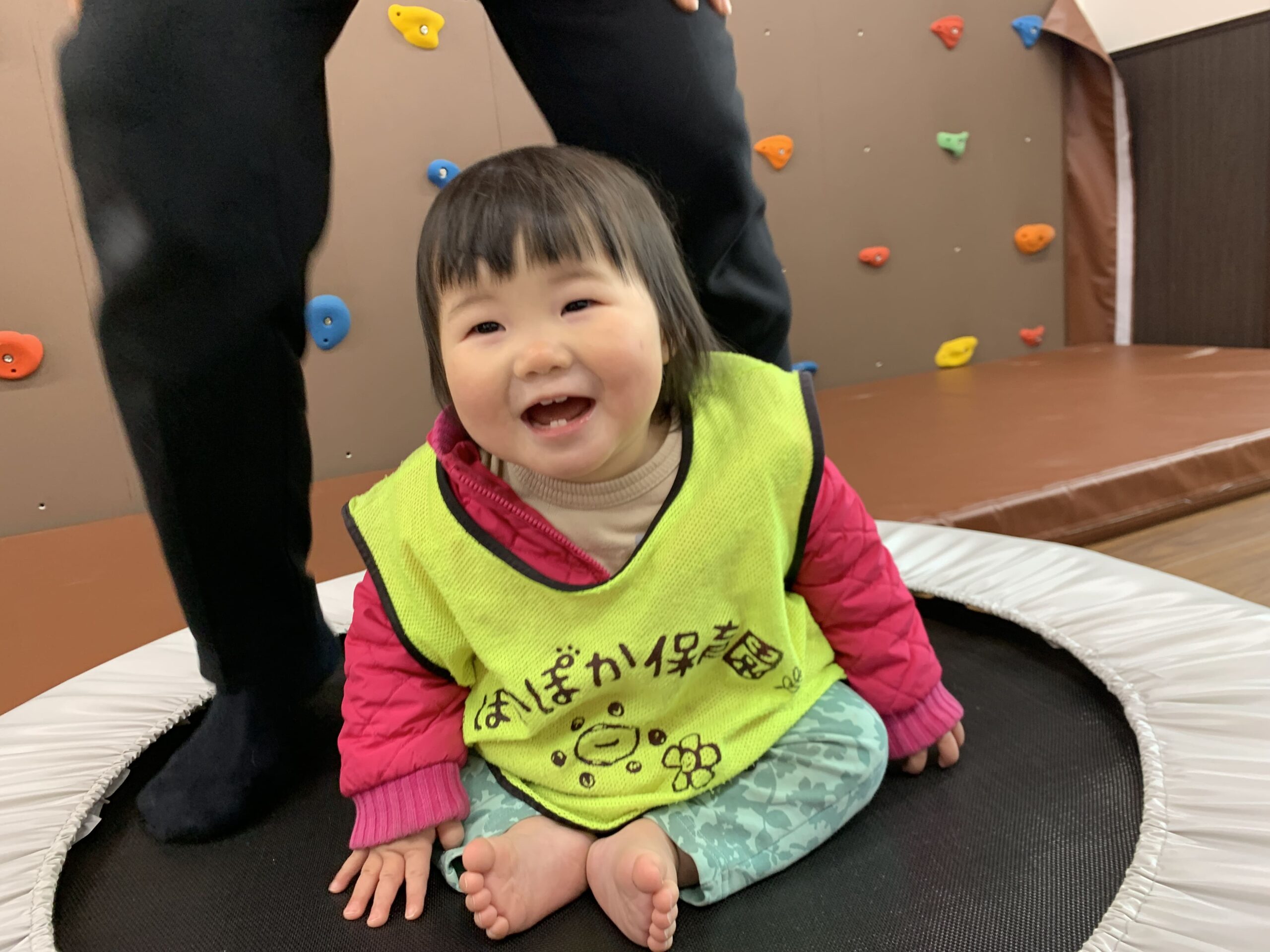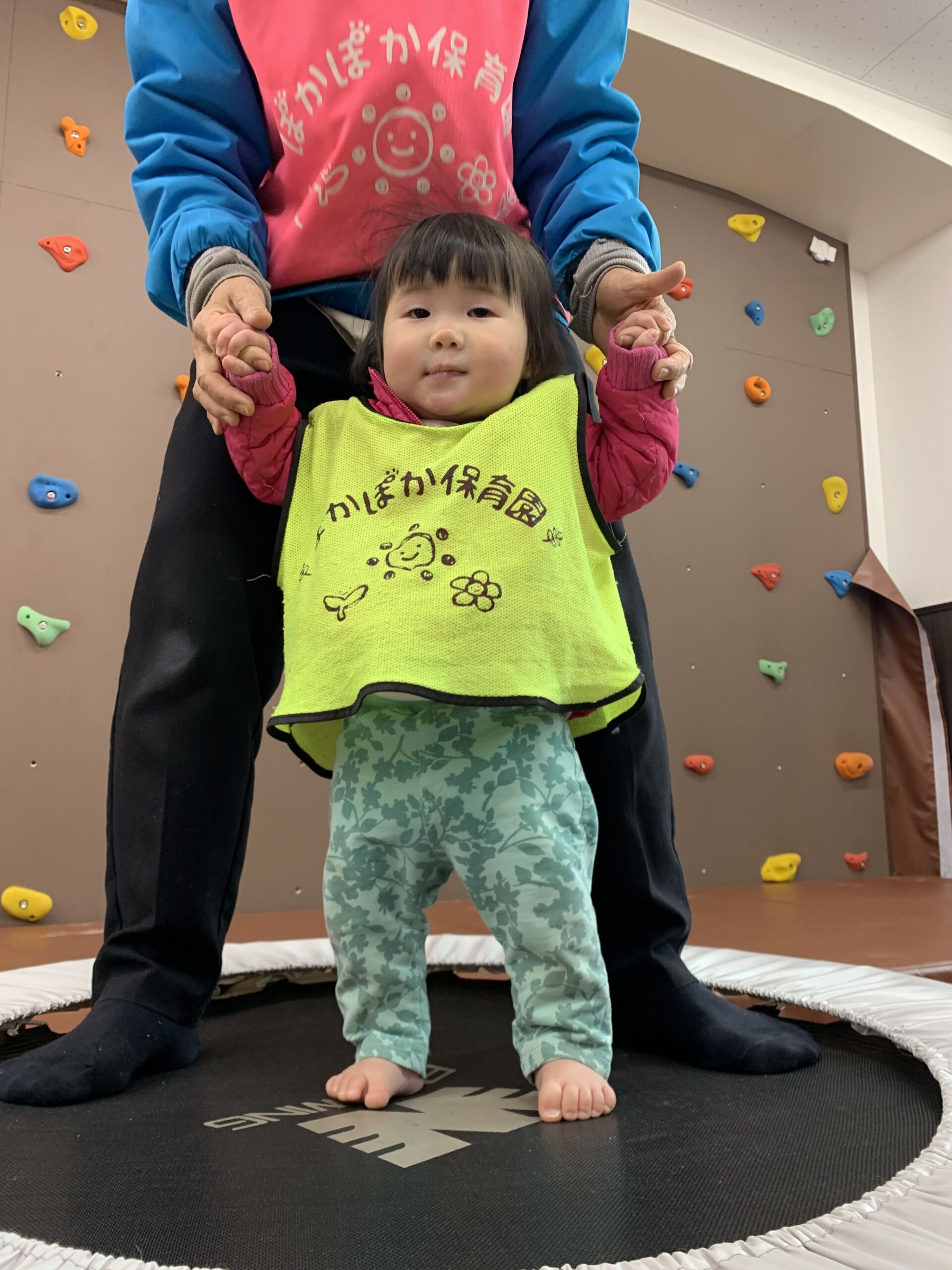今日はぽかぽか保育園で、元気いっぱいに遊んだ素敵な一日でした!昨日までの雨が上がり、今日はとてもあたたかい小春日和。子どもたちは、お外で過ごす時間も楽しみながら過ごしましたが、まずはこども園のお部屋を借りて、ボルタリングとトランポリンを楽しみましたよ♪