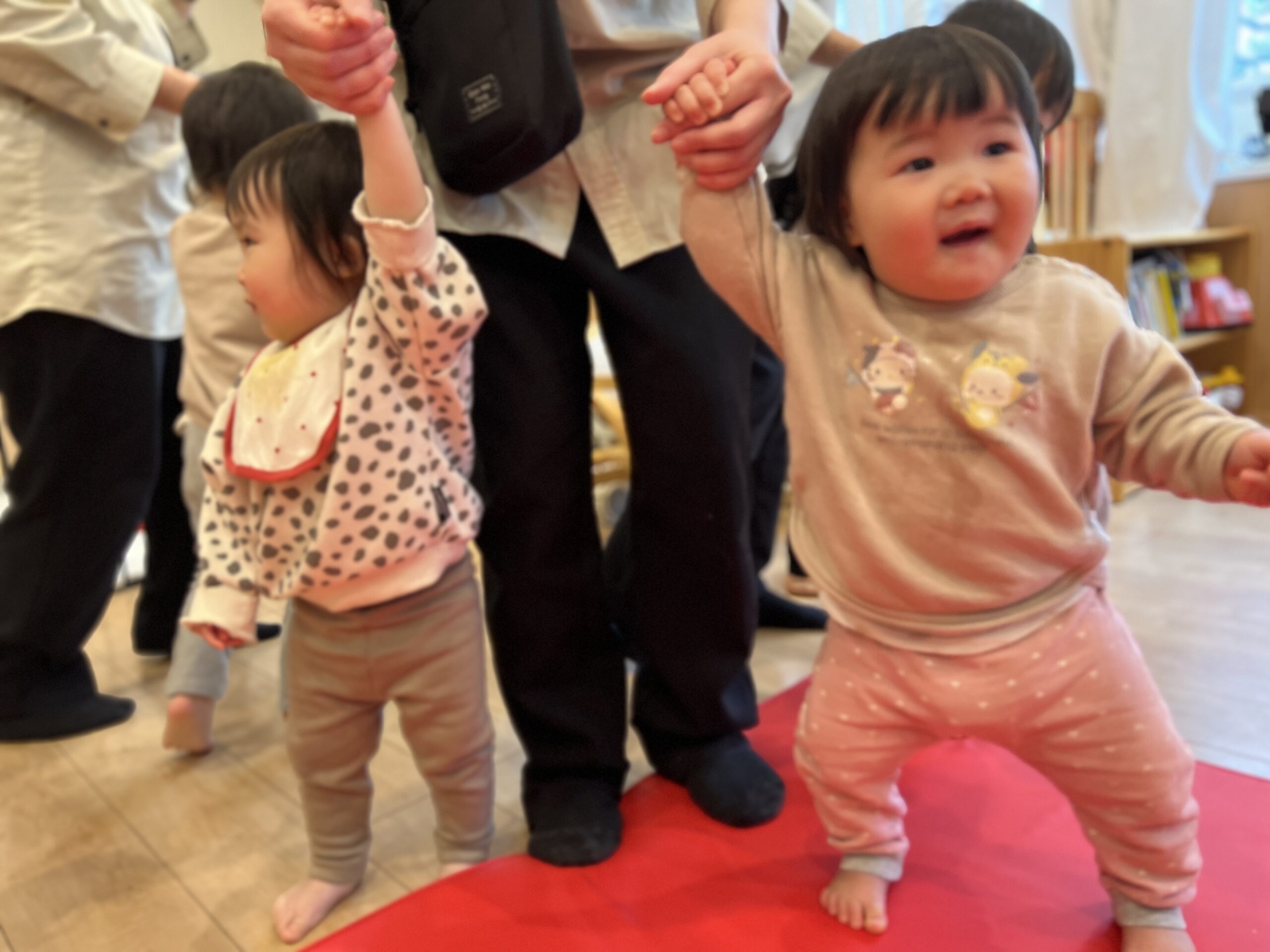 年度の当初は、眠りながら参加していたお友達も、今は立って歩いて活動に参加しています(ウルウル・・・)