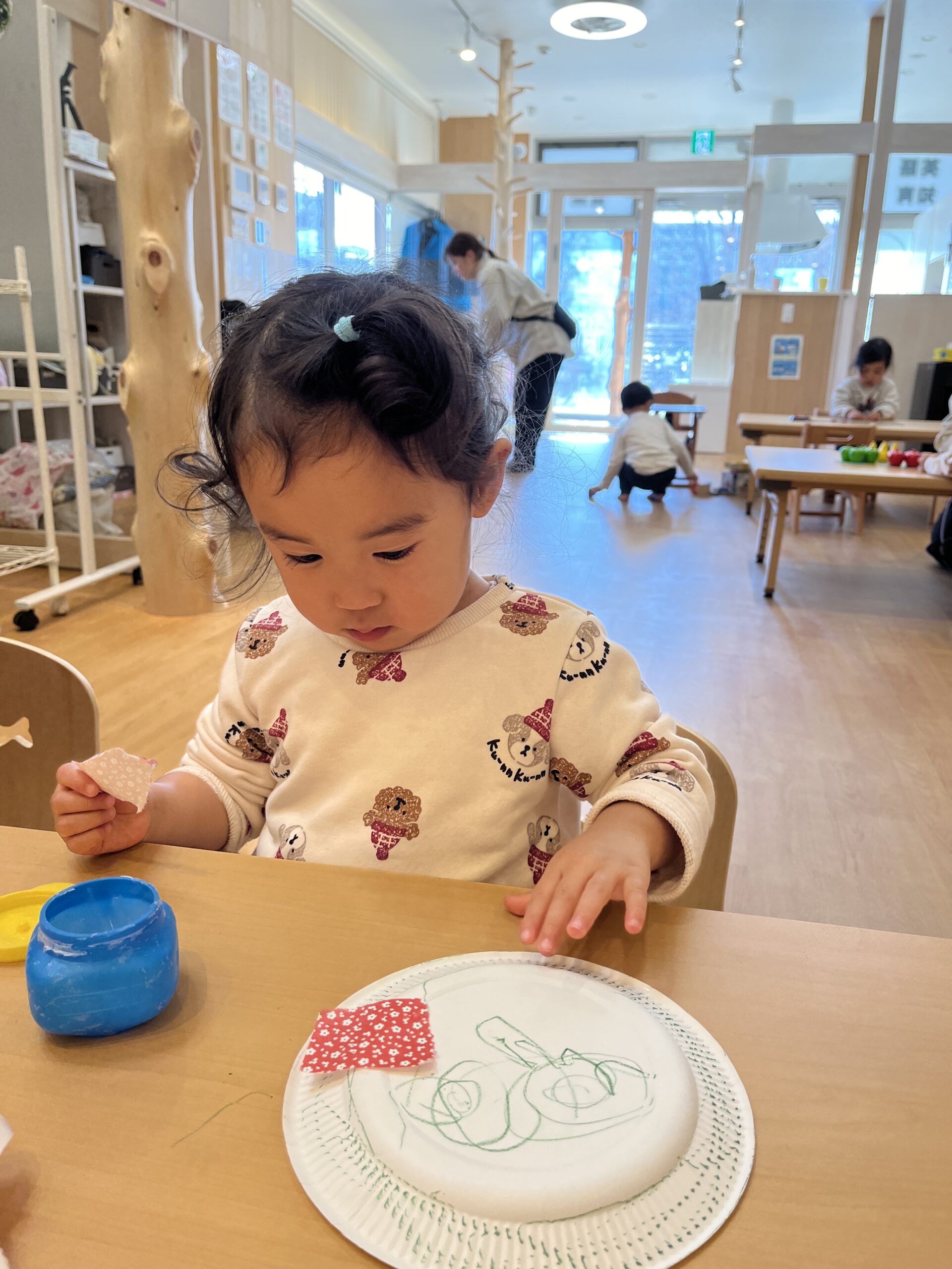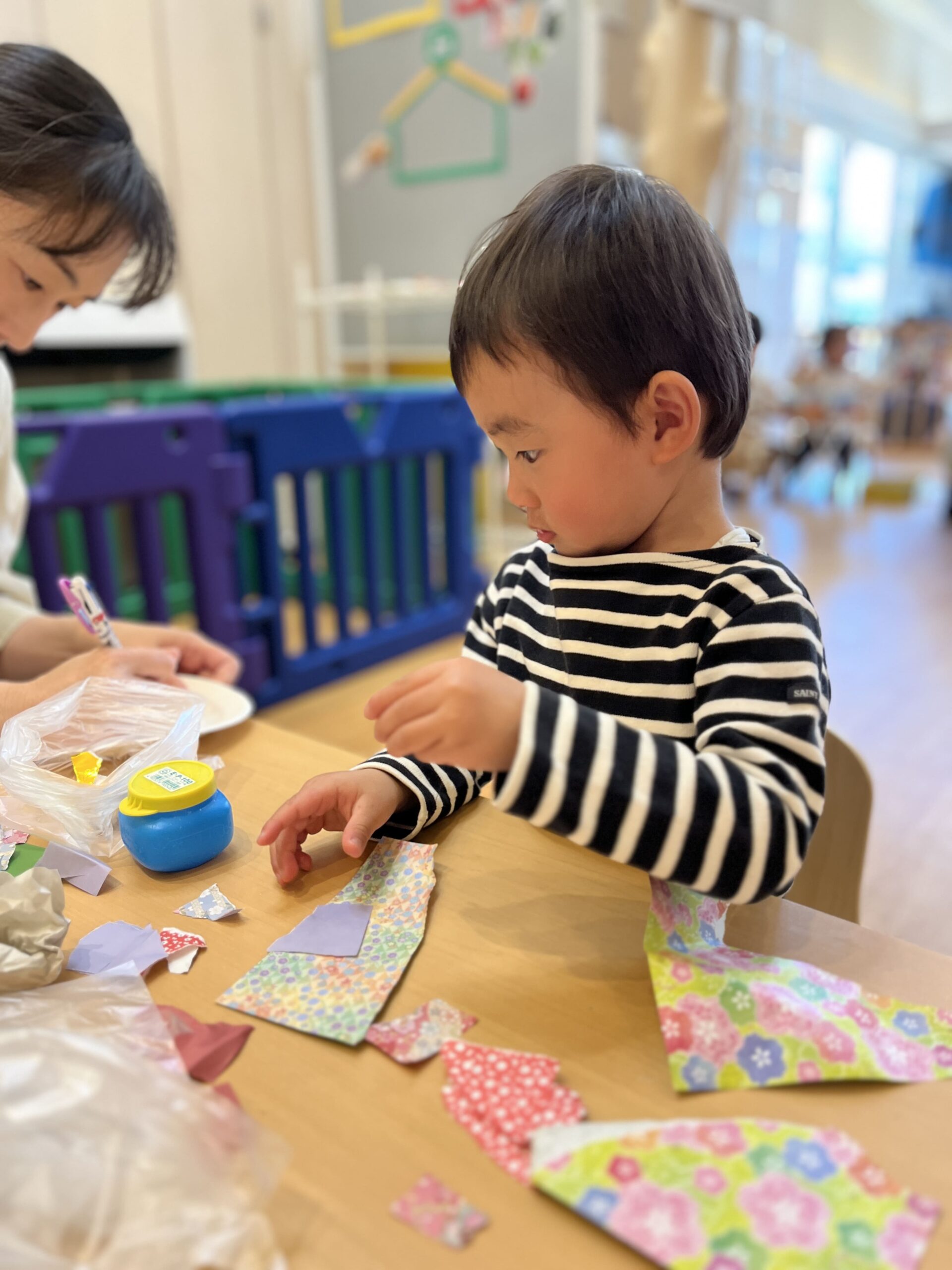 糊が付いている面で貼り付けることを理解し、表と裏をやり直したりできていて素晴らしかったです!
