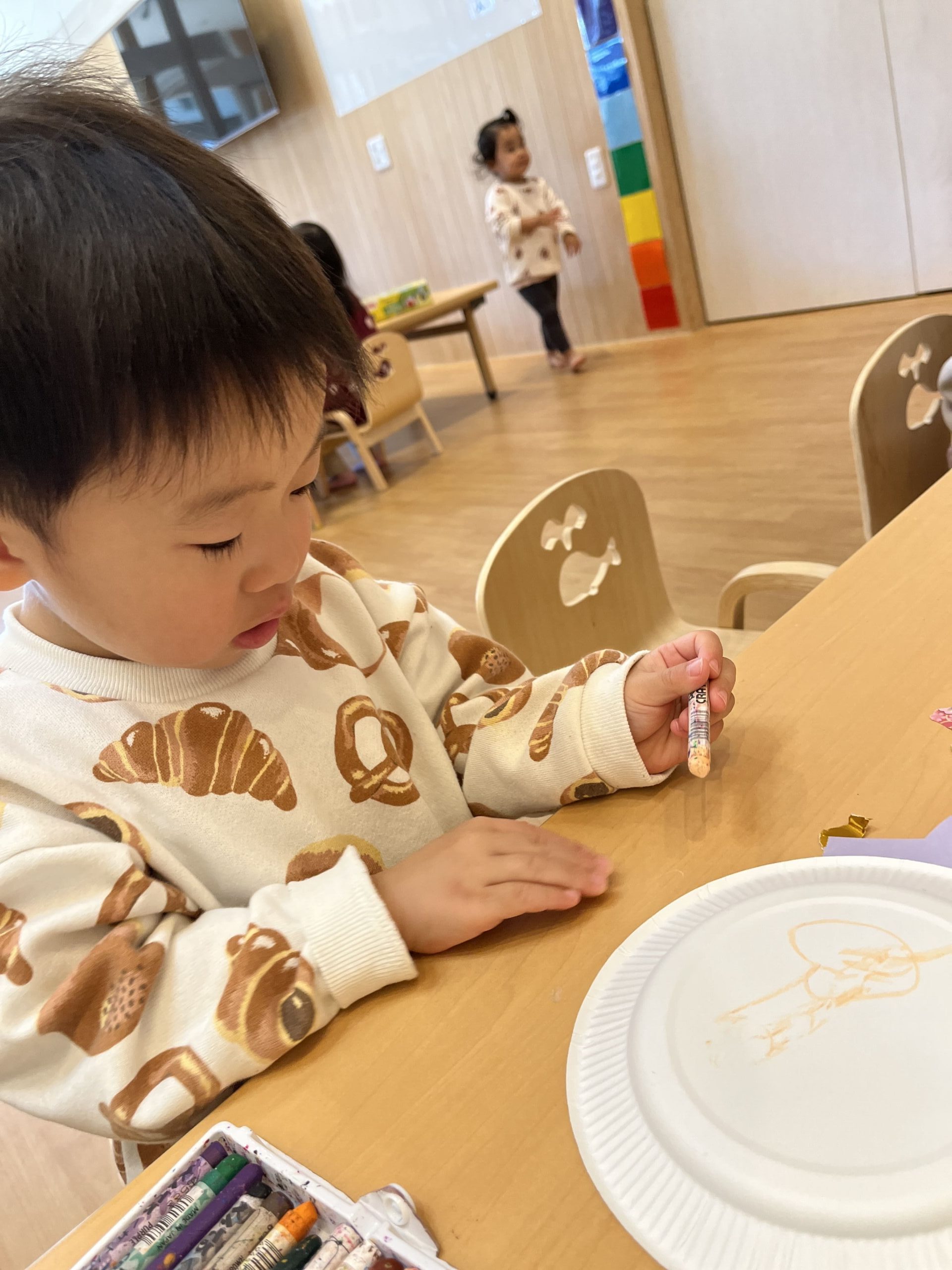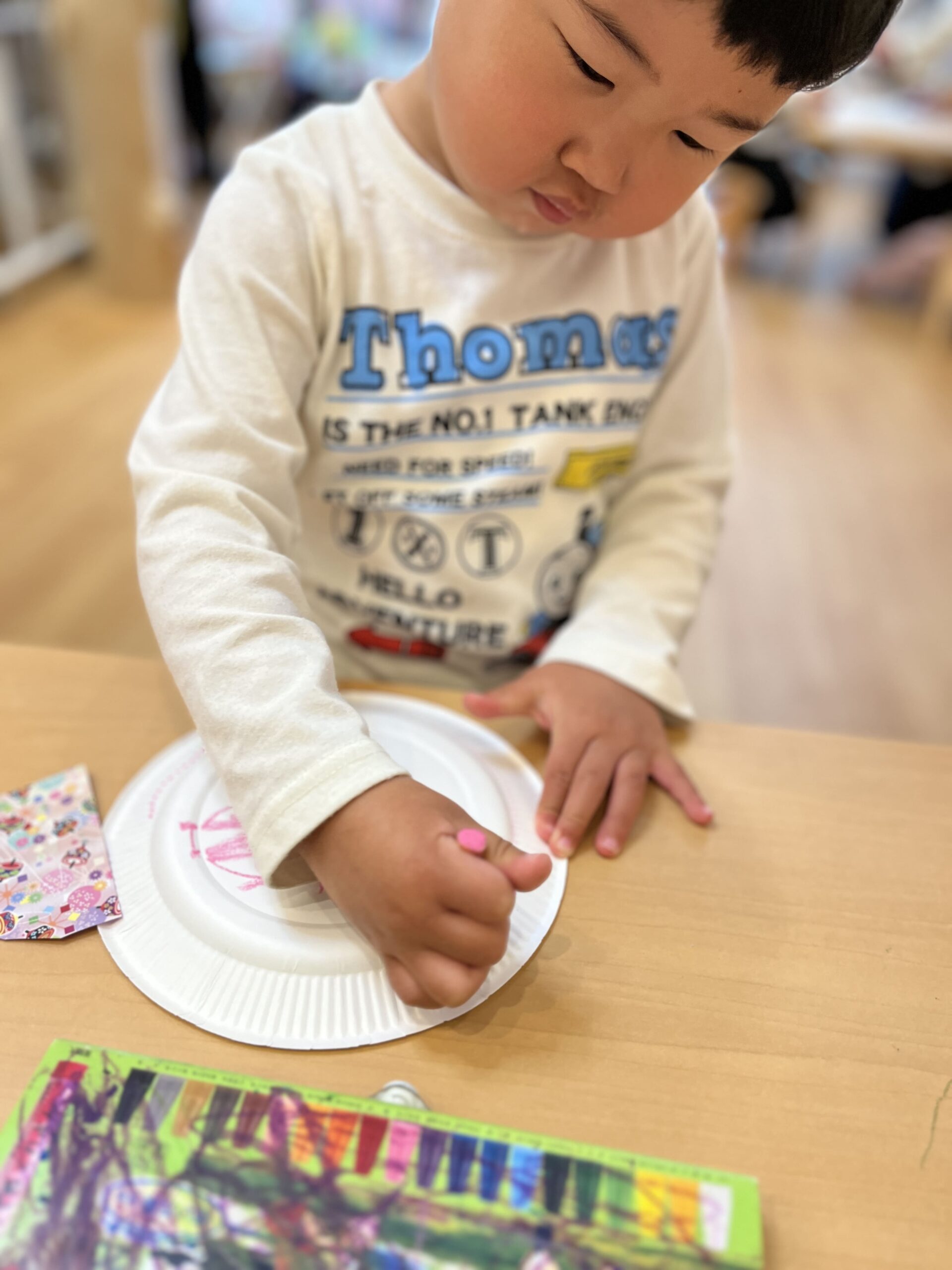 ・紙皿にクレヨンを使って書き、頑張って努力したらたくさん褒める