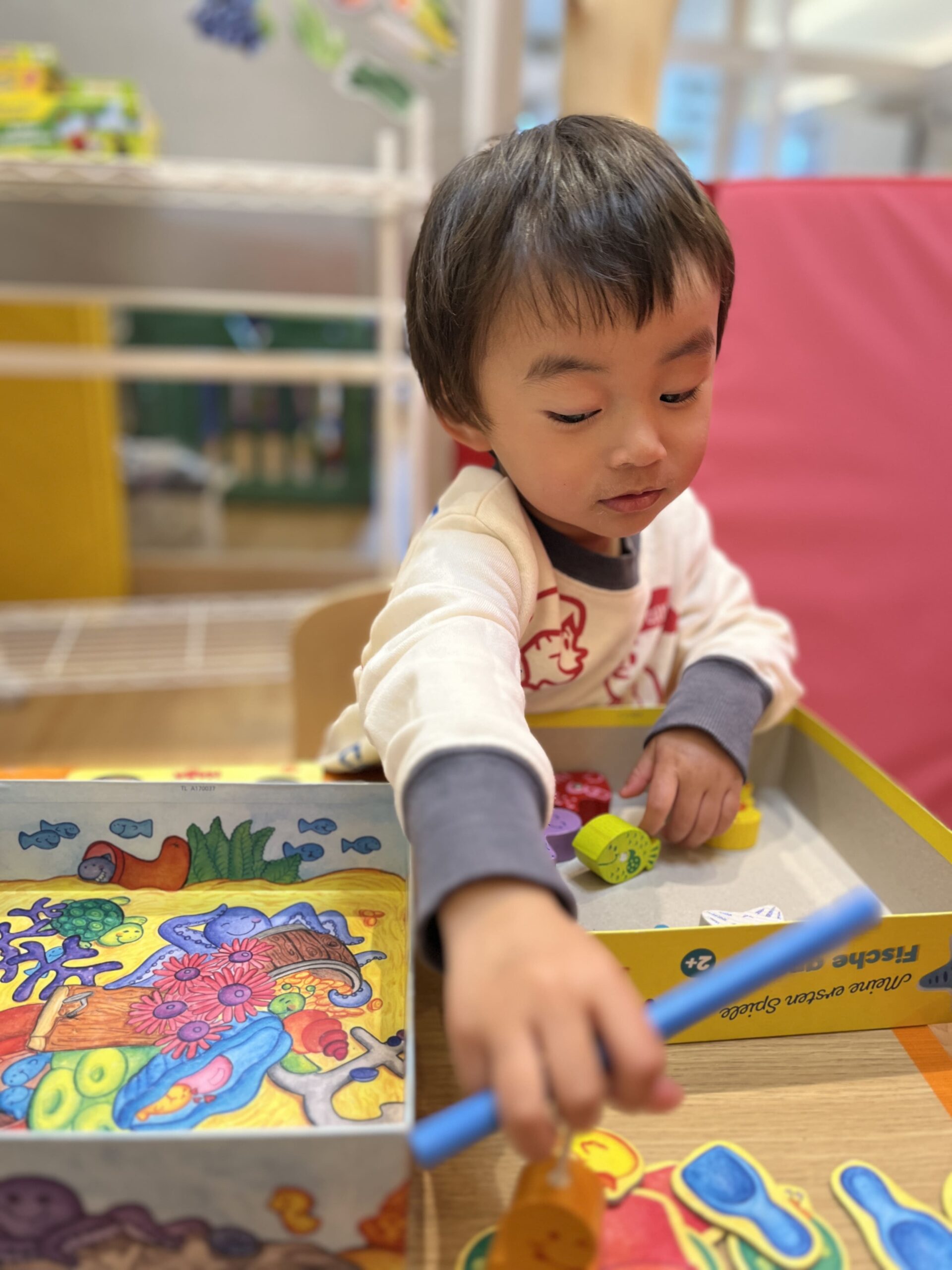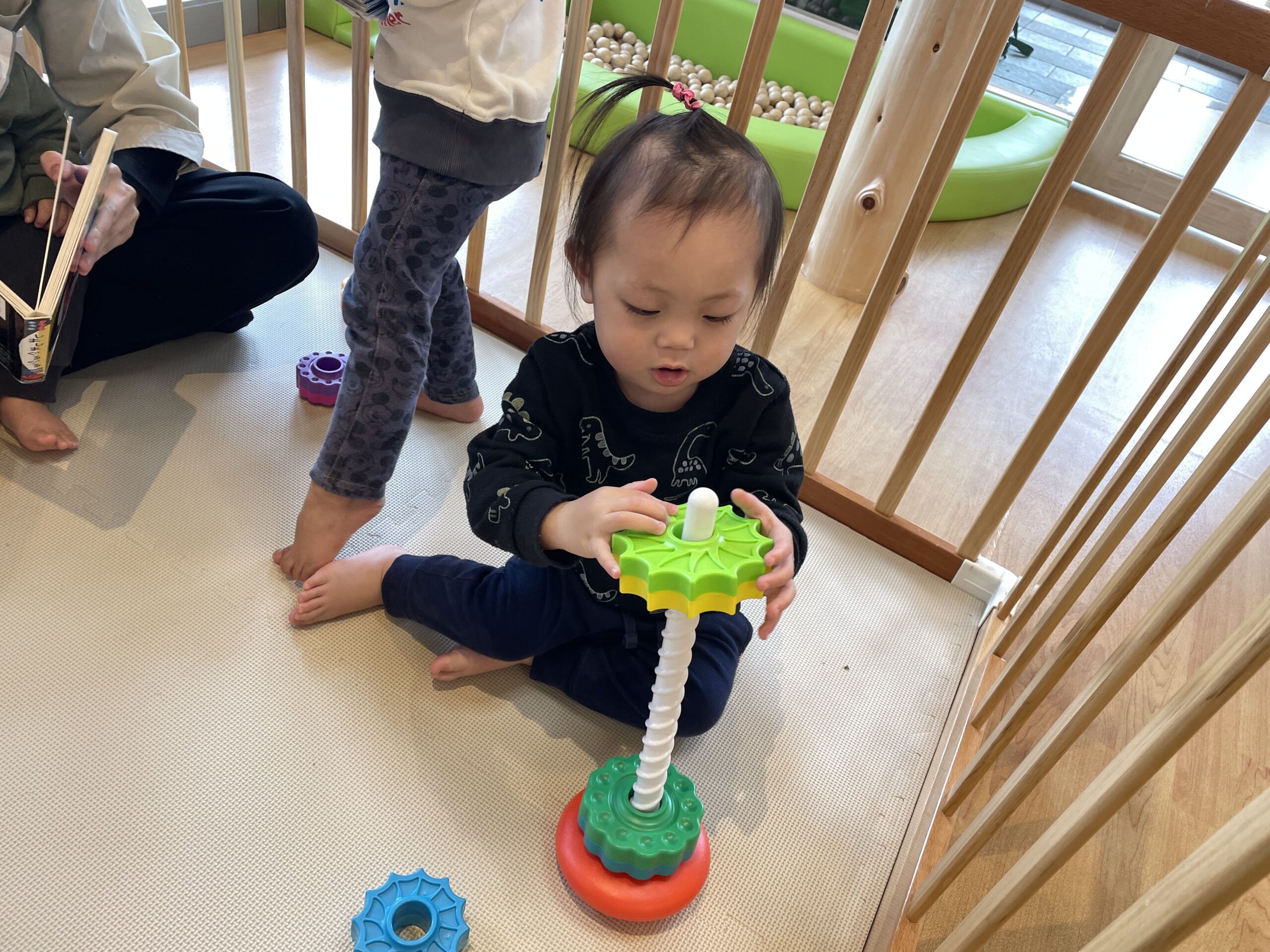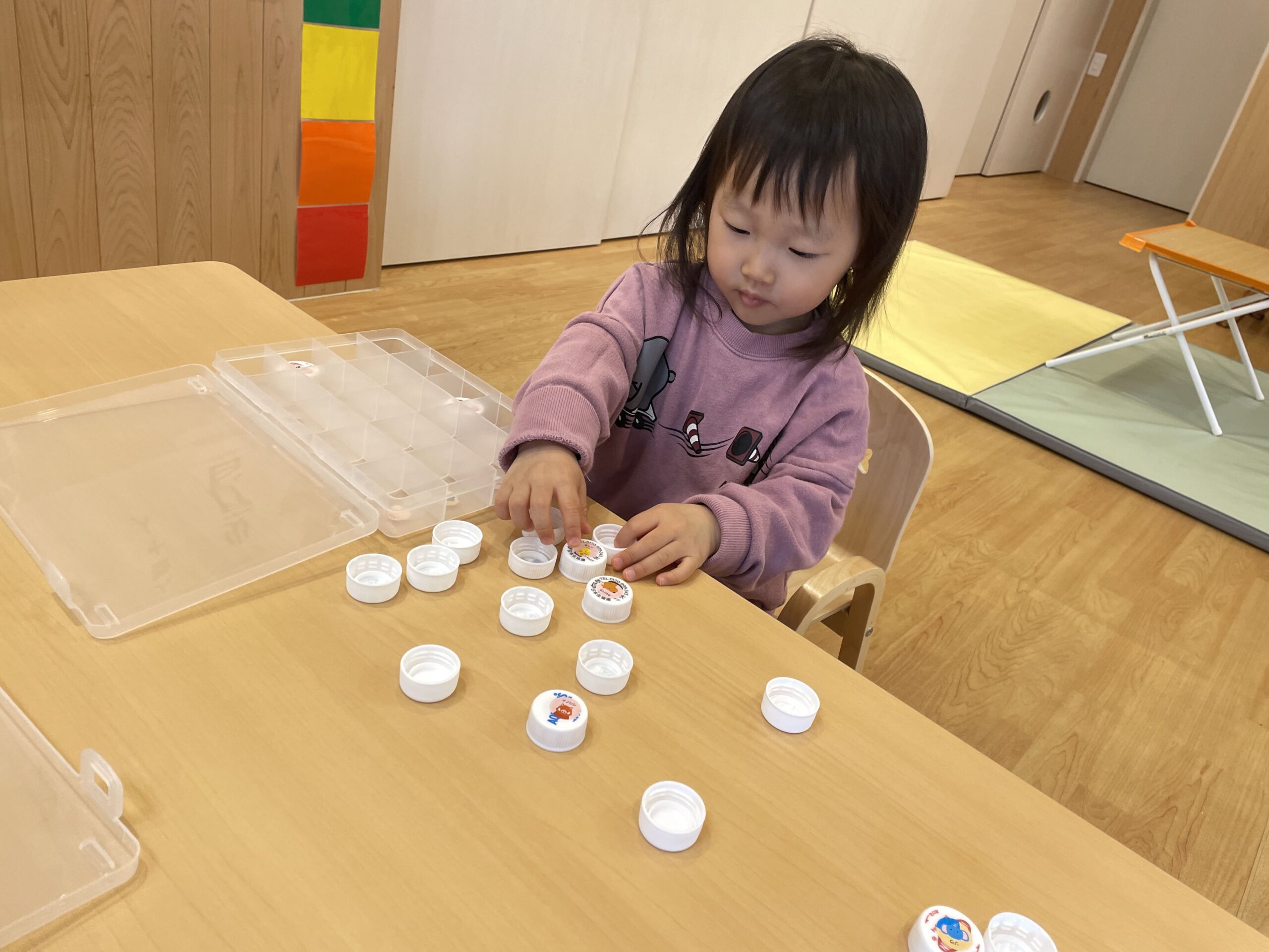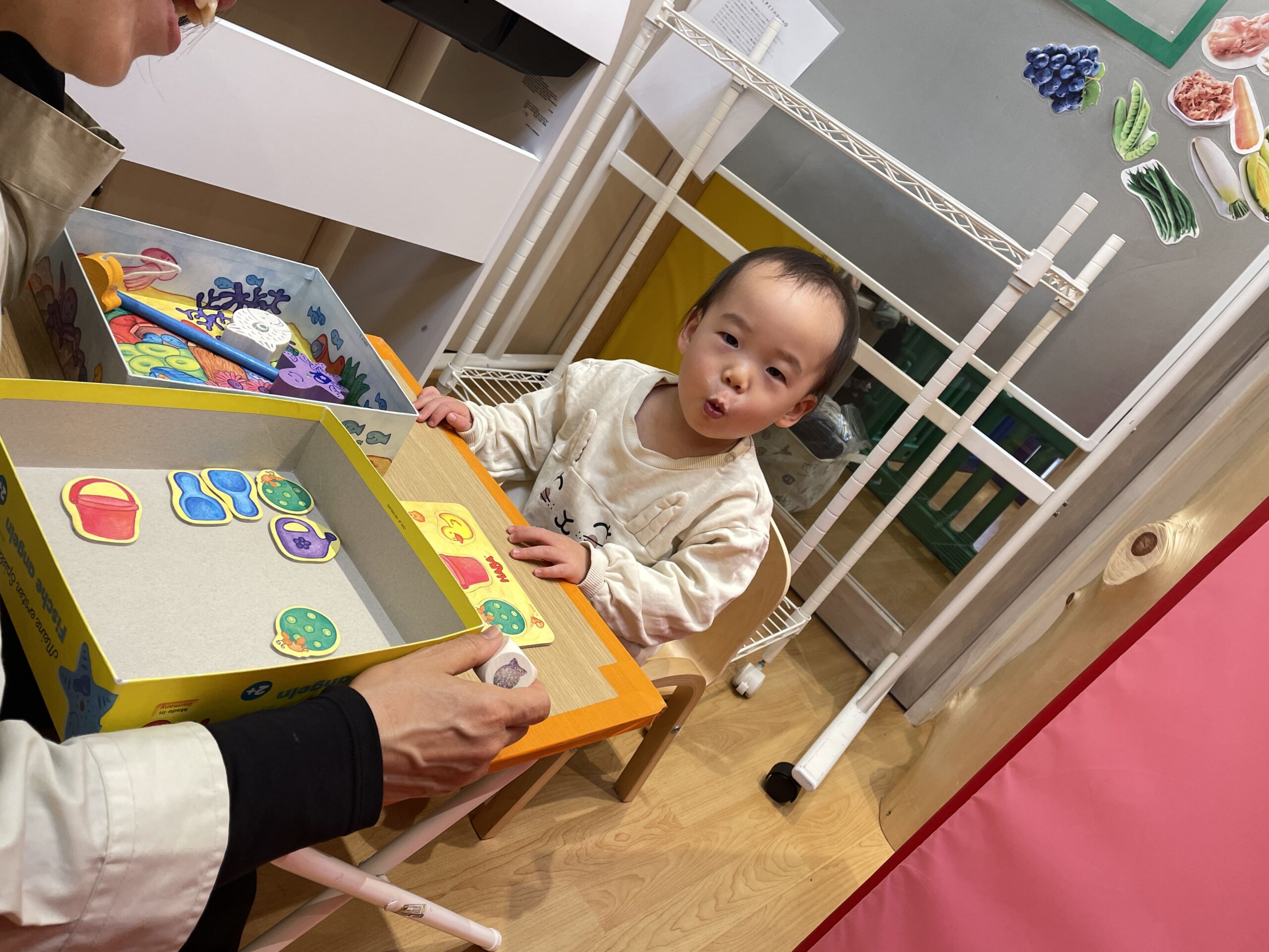 保育室では、年齢や発達に合わせたアナログゲームを楽しみました。指先を使ってつまんだり、色を意識して遊んだり。次にどうなるかを予想しながら進めるゲームでは、子どもたちの表情が真剣そのもの。「次はこうなるかも!」とワクワクしながら進めていました。また、お友だちと順番を意識することで、協調性も育まれていきます。