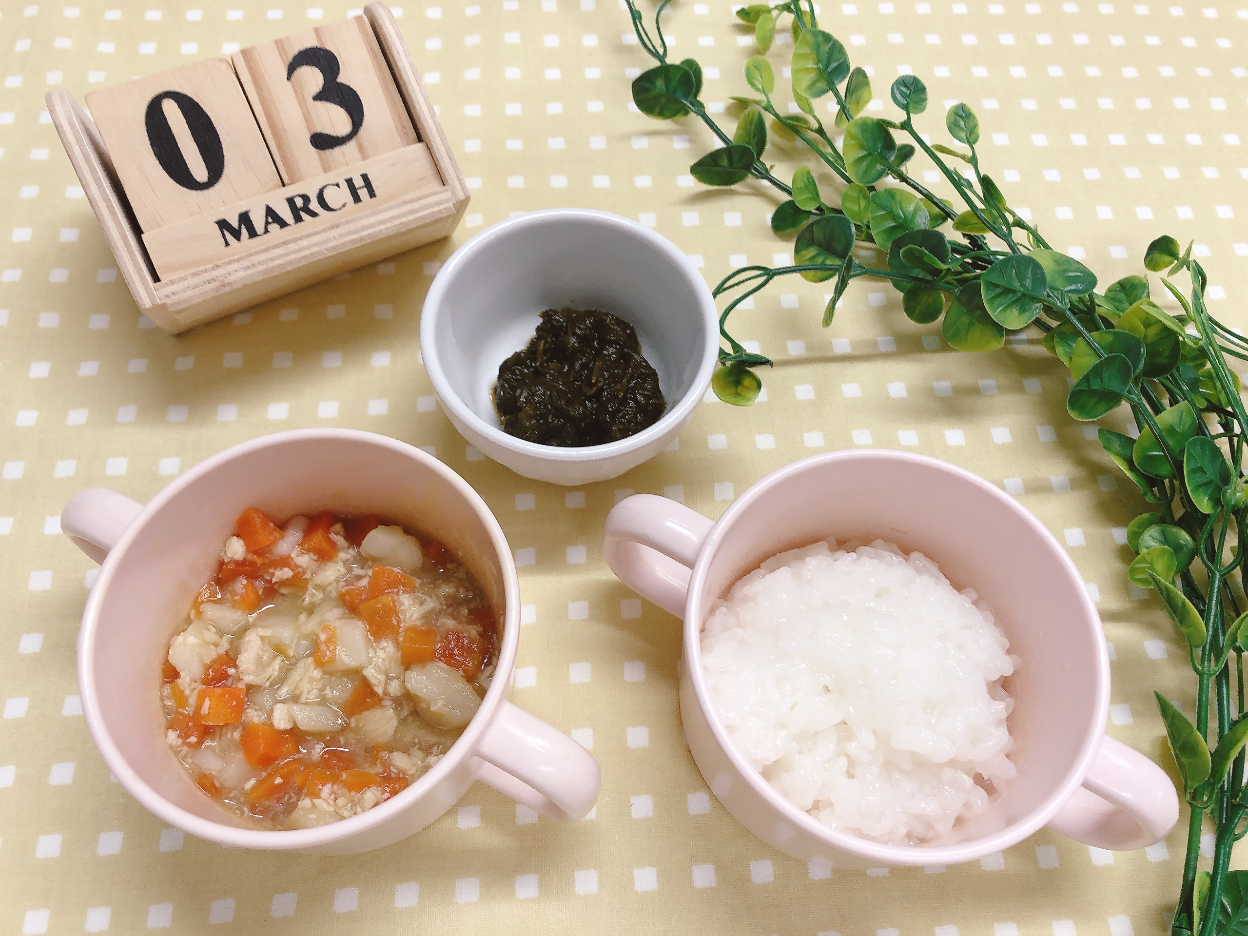 3月3日はひな祭り、そして私たちのキッチンでは特別な献立でお祝いしています。料理の準備から提供まで、私たちは子どもたちが笑顔で食べる姿を想像しながら、一品一品を心を込めて作っています。特に本日は、ひな祭りのお祝いとして、食事の彩りにもこだわりました。春を感じさせる鮮やかな色合いで、食卓が一層楽しい雰囲気に包まれています。
