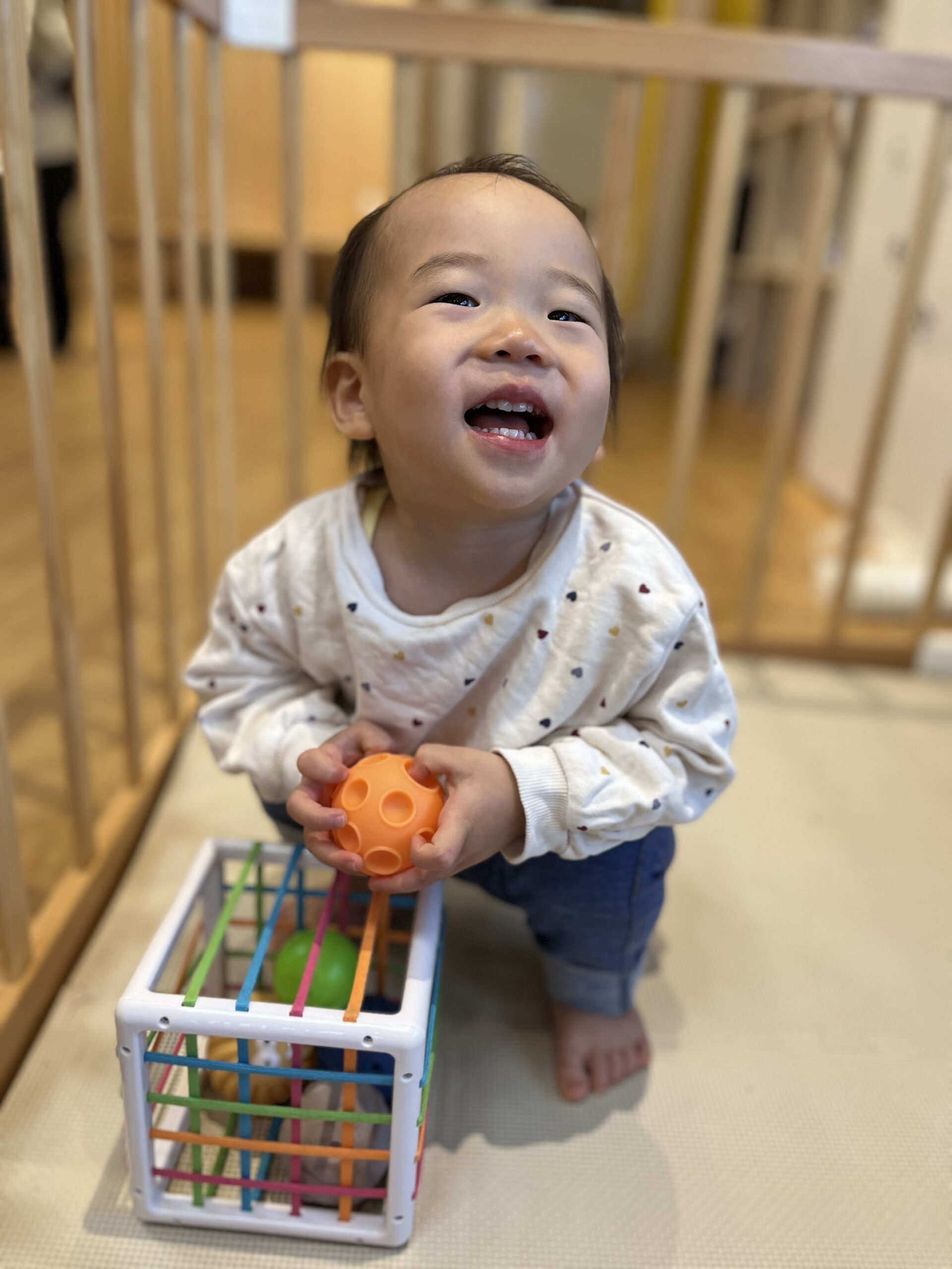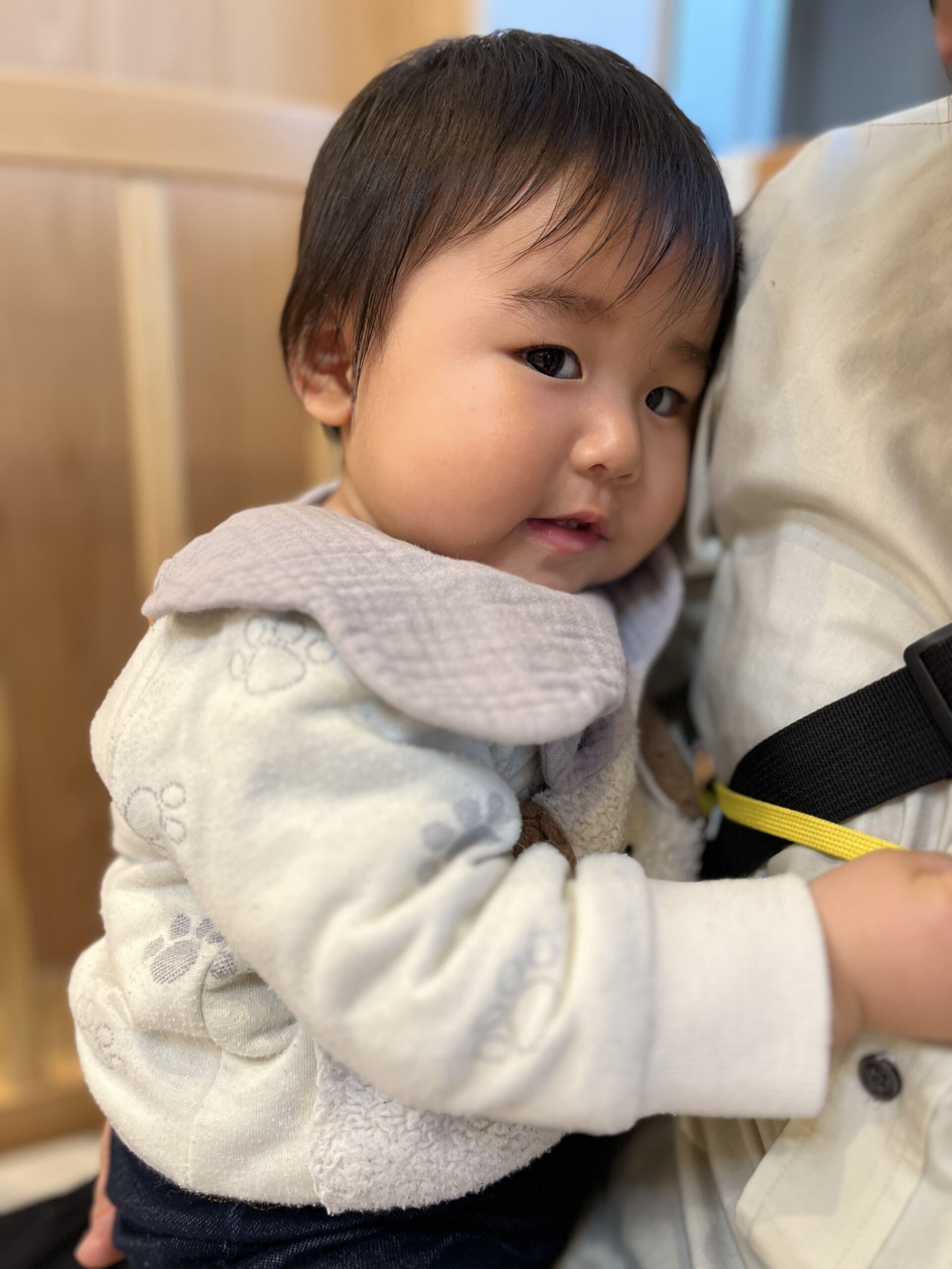 最初は先生に抱っこされながら保育室を見渡したりお友だちのことをチラッと見ています♡