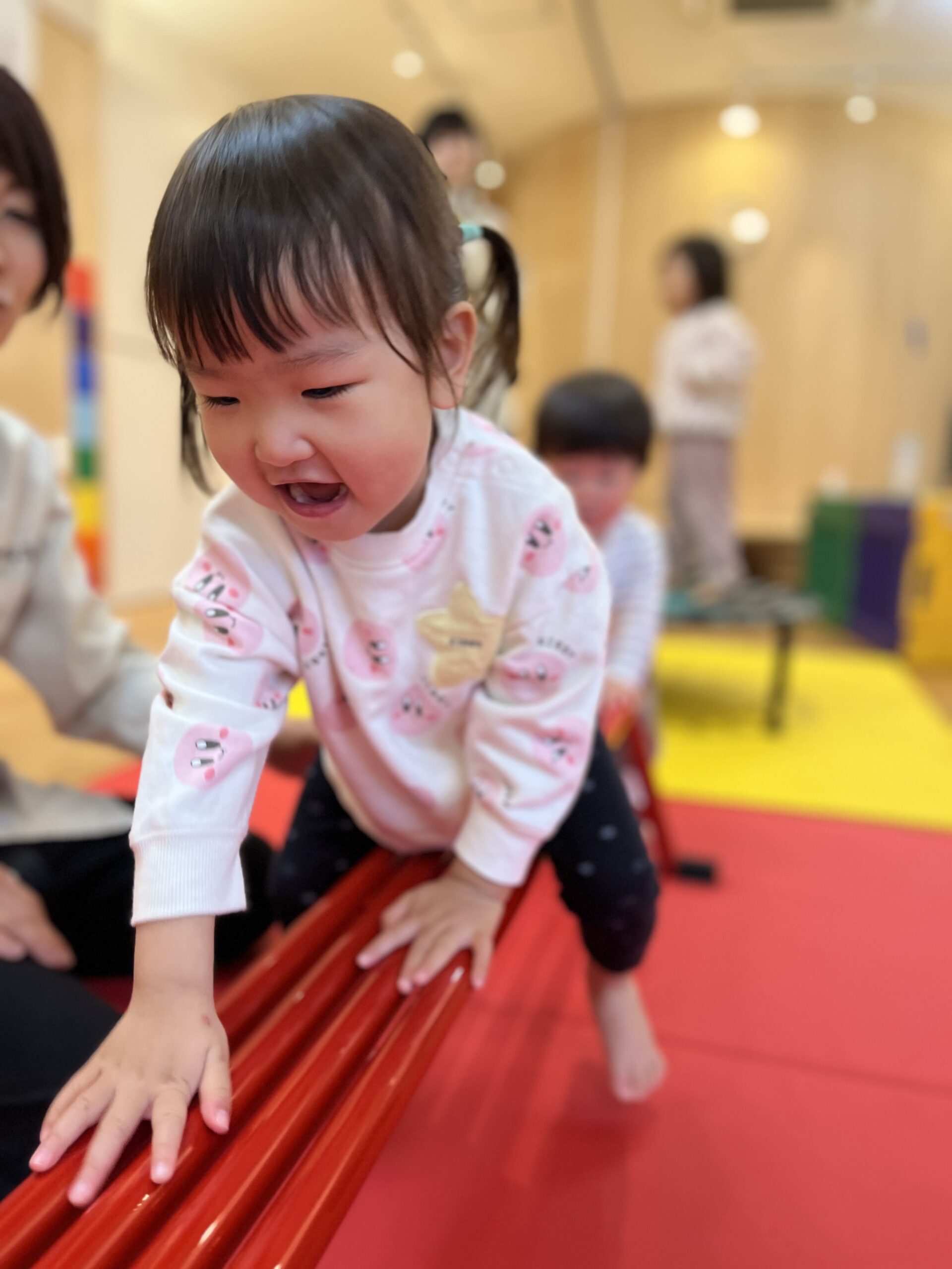 マットやトランポリン、平均台を出すと「やったー!」「きゃー!」と大興奮!!