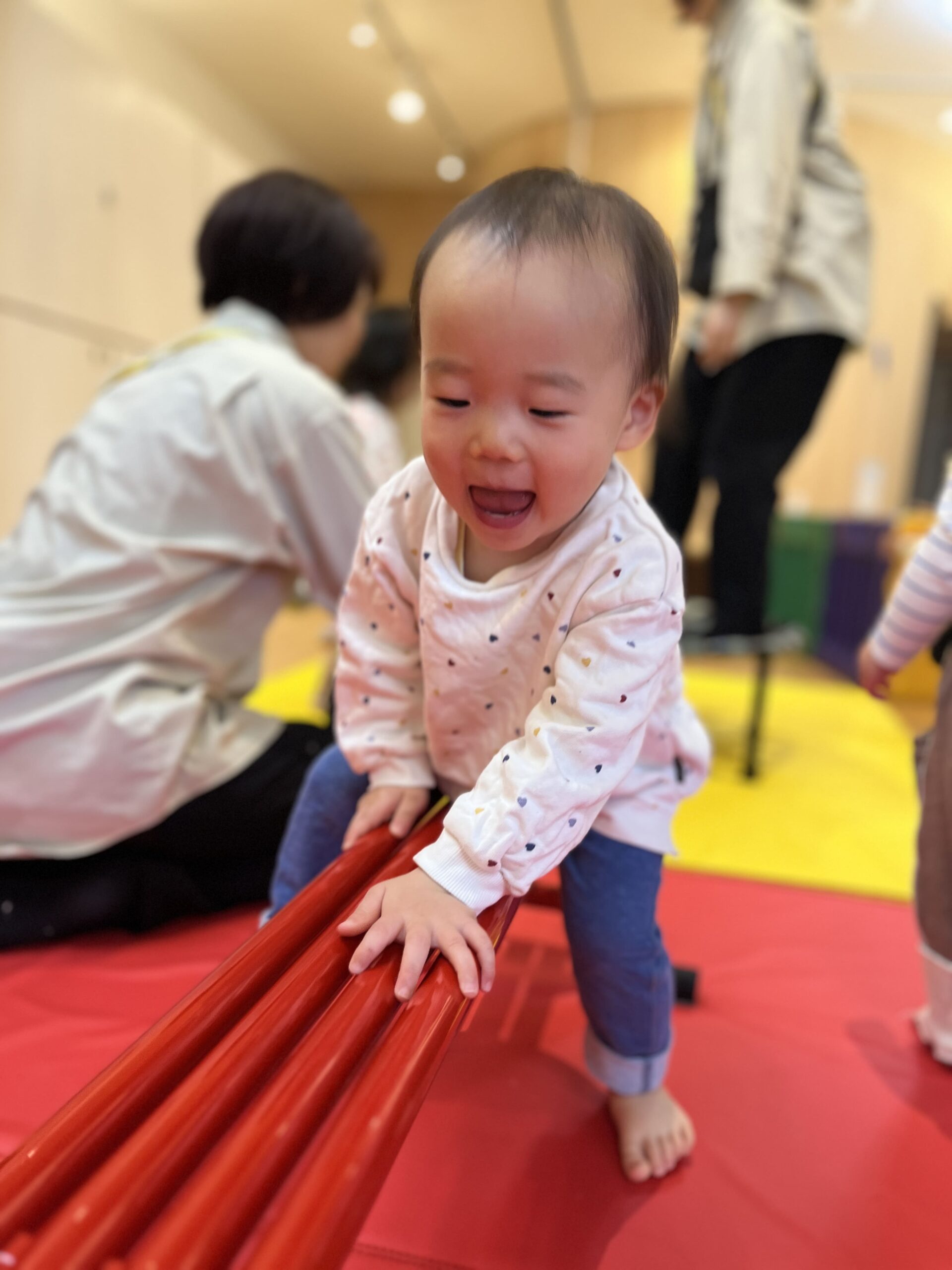 みんながとっても楽しそうに遊んでいるので初めて登園したお友だちも体育遊びに興味津々♬