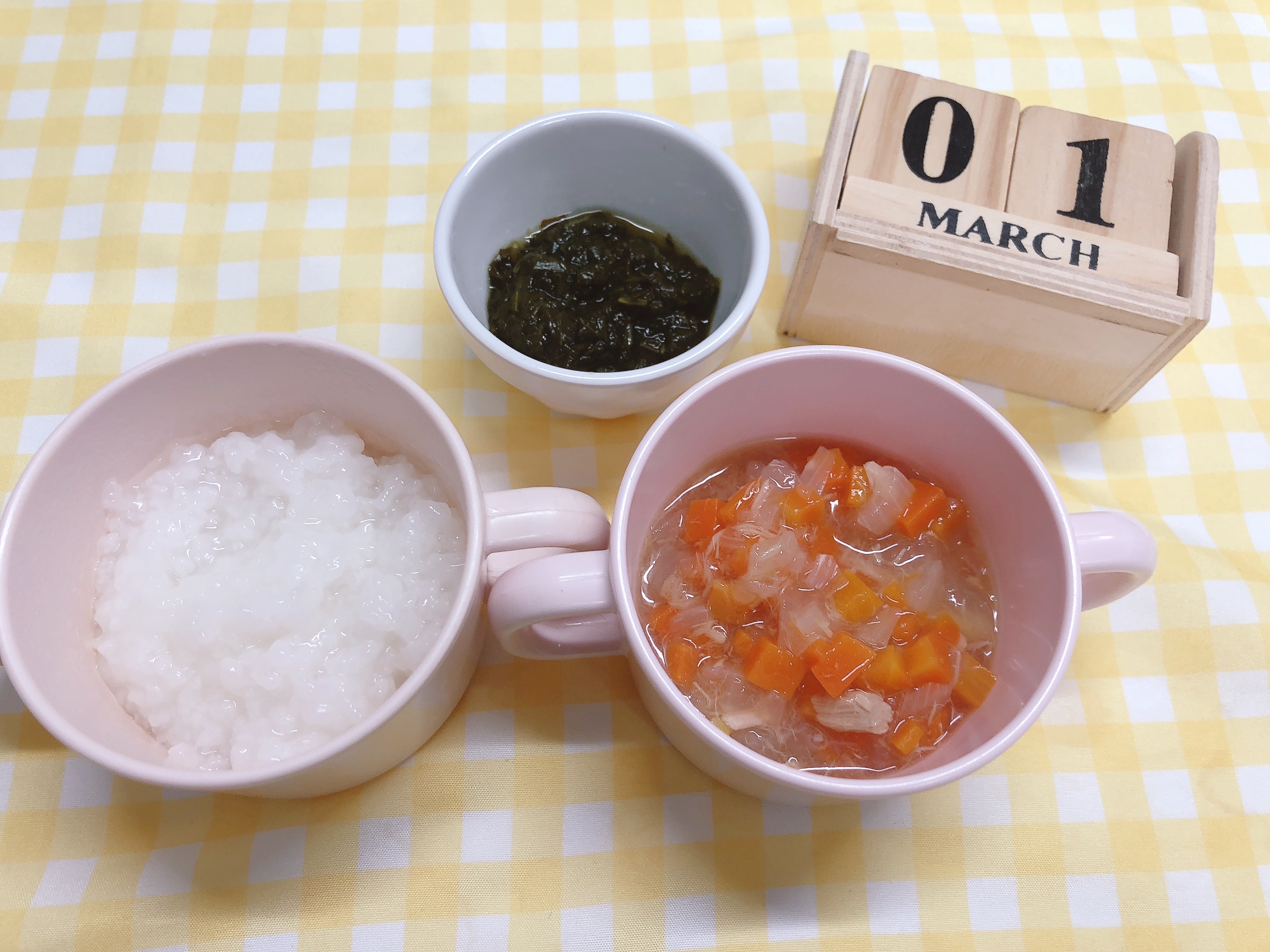 3月1日の土曜日、ぽかぽか保育園の給食時間が、またもや子どもたちの笑顔でいっぱいになりました。今日のメニューは、「厚揚げとそぼろのあんかけ」をメインに、「ツナと野菜の炒め物」、「味噌汁」、そしてデザートには「バナナ」が提供されました。