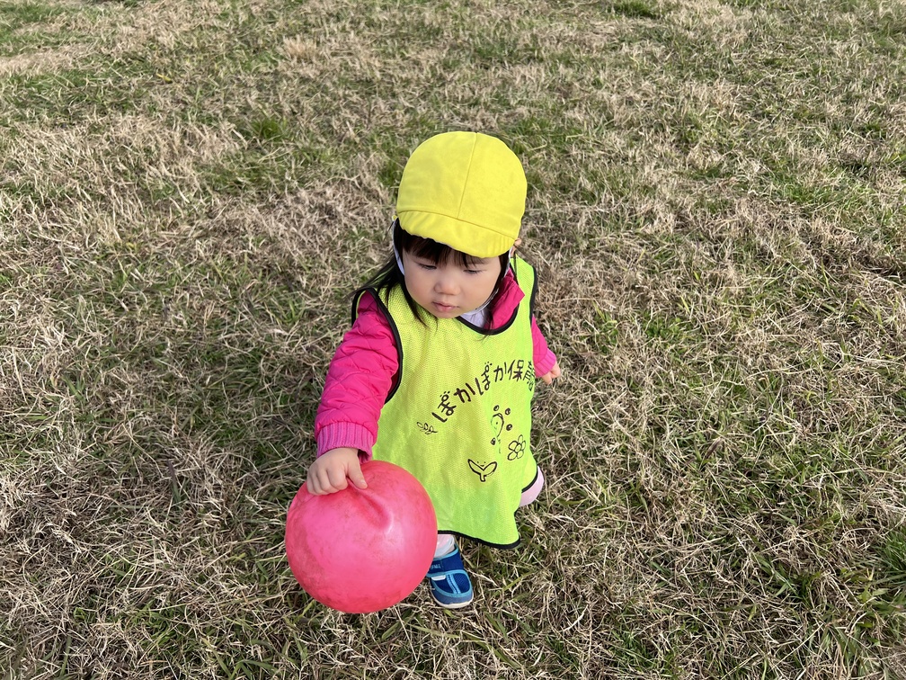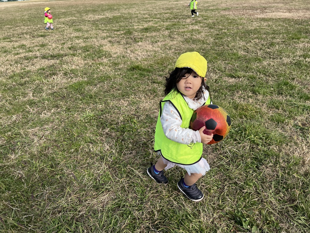 先生が投げたボールを追いかけたり、お友だちとパスし合ったり、「ボールつかまえられた!」と、得意げな表情を見せてくれました。
