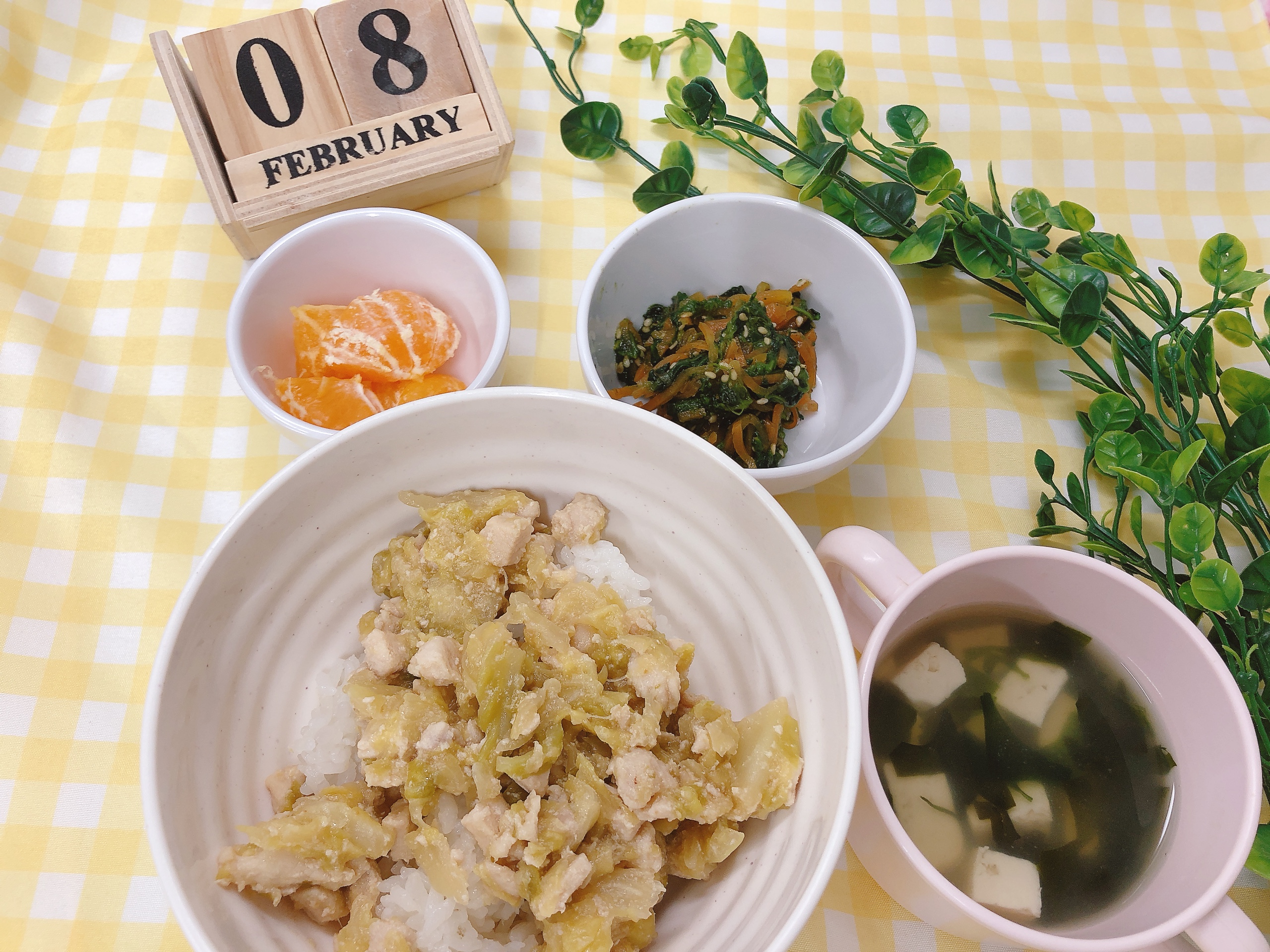 - メインディッシュ: 鶏とキャベツのみそ炒め丼