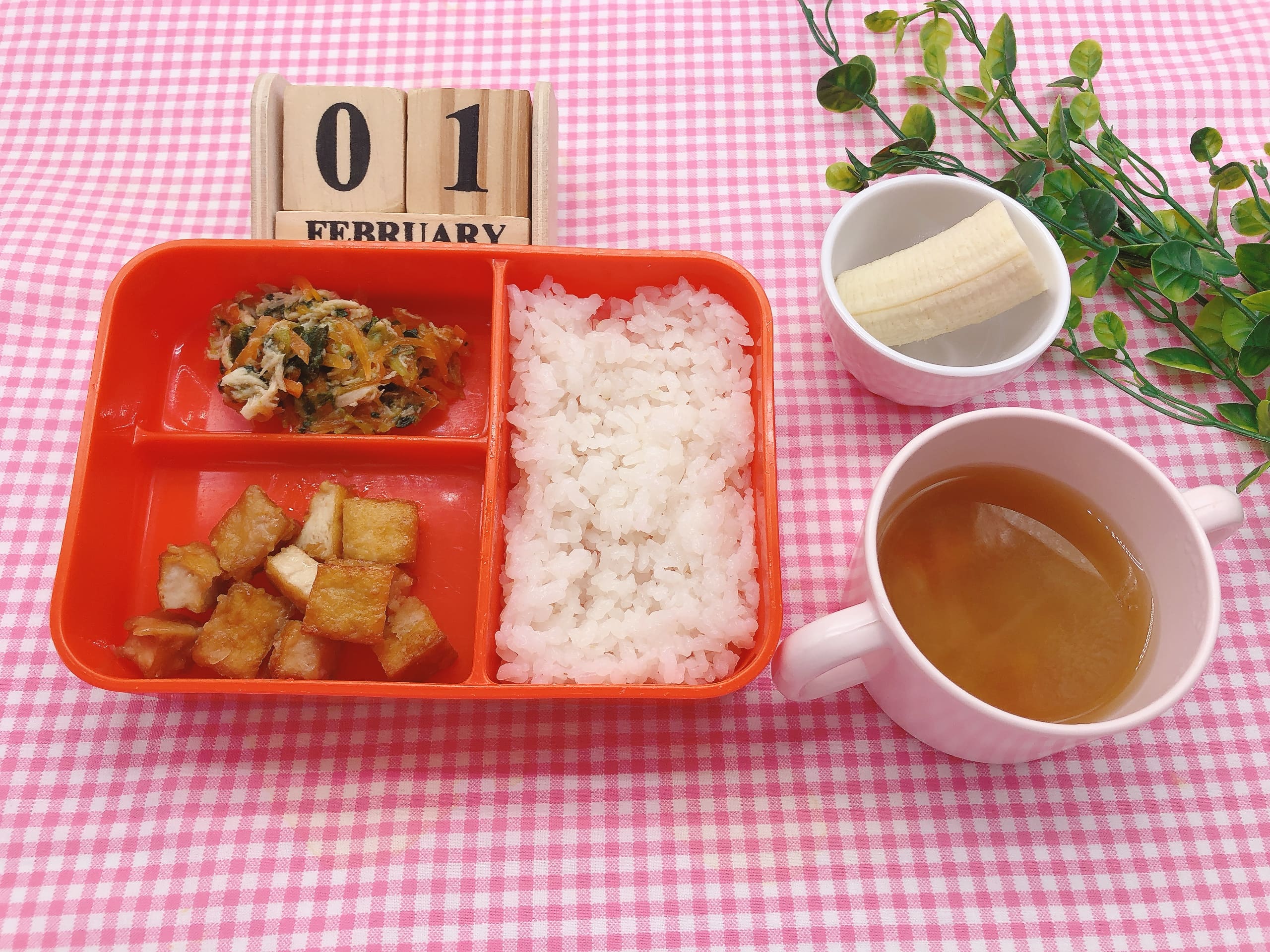 今日の給食は厚揚げのマヨ照り焼きでした!