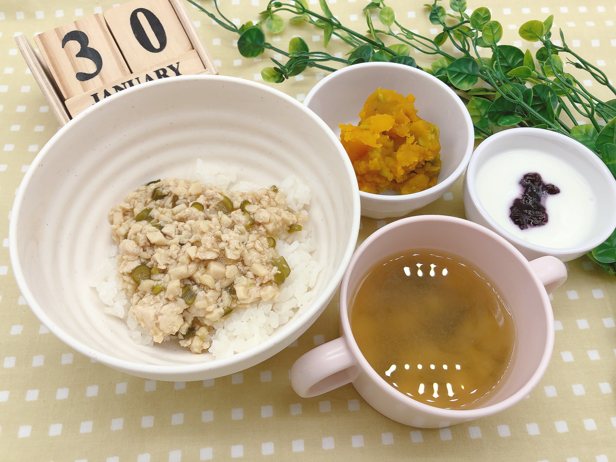 - 鶏肉と高野豆腐のそぼろは、じっくりと煮込んで味をしっかり染み込ませます。これにより、食べやすく、子どもたちにも大好評です。