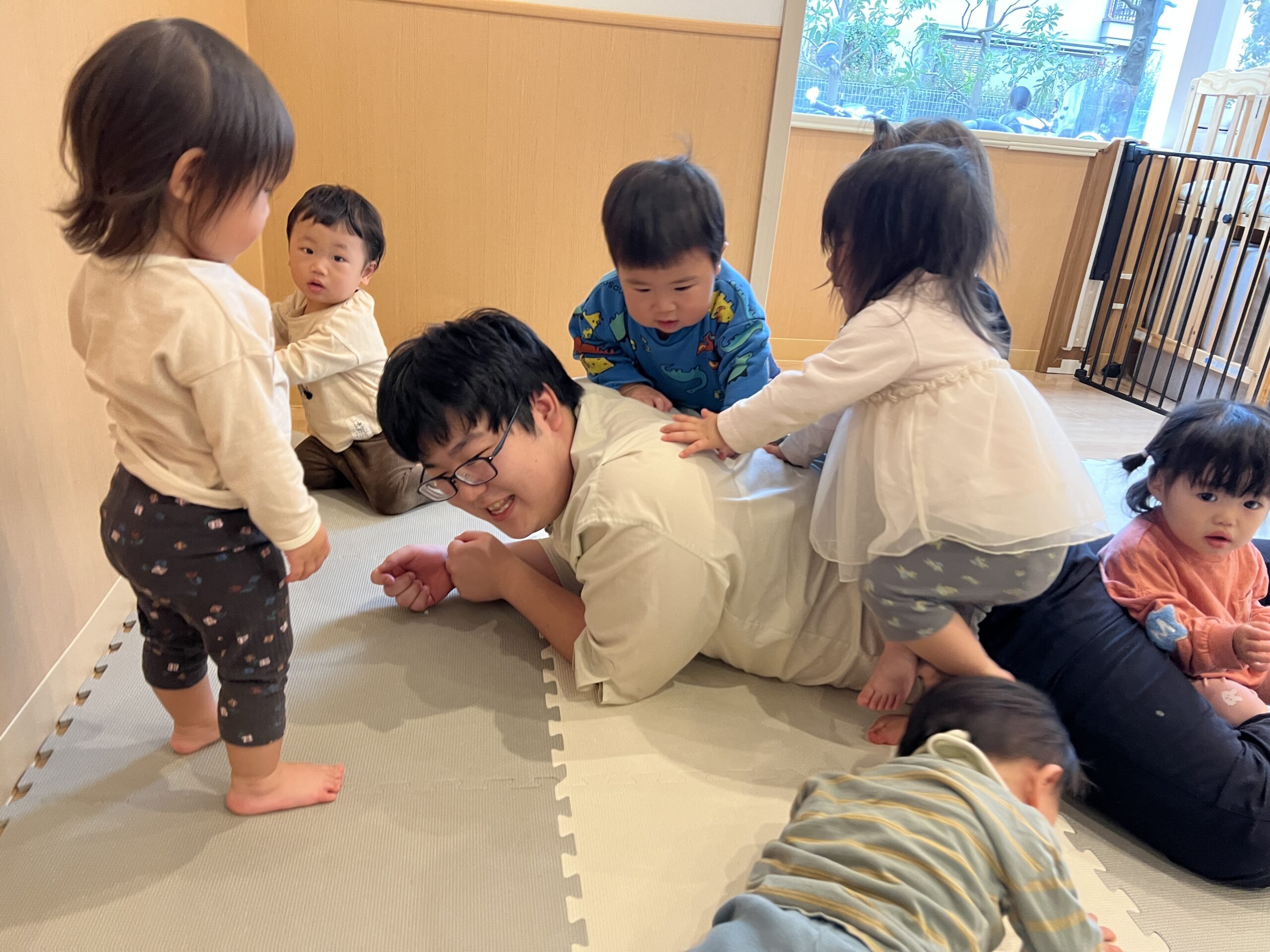 乳児保育におけるこのような身体を使った遊びや活動は基礎運動能力を高める大切なカリキュラムの一部です。