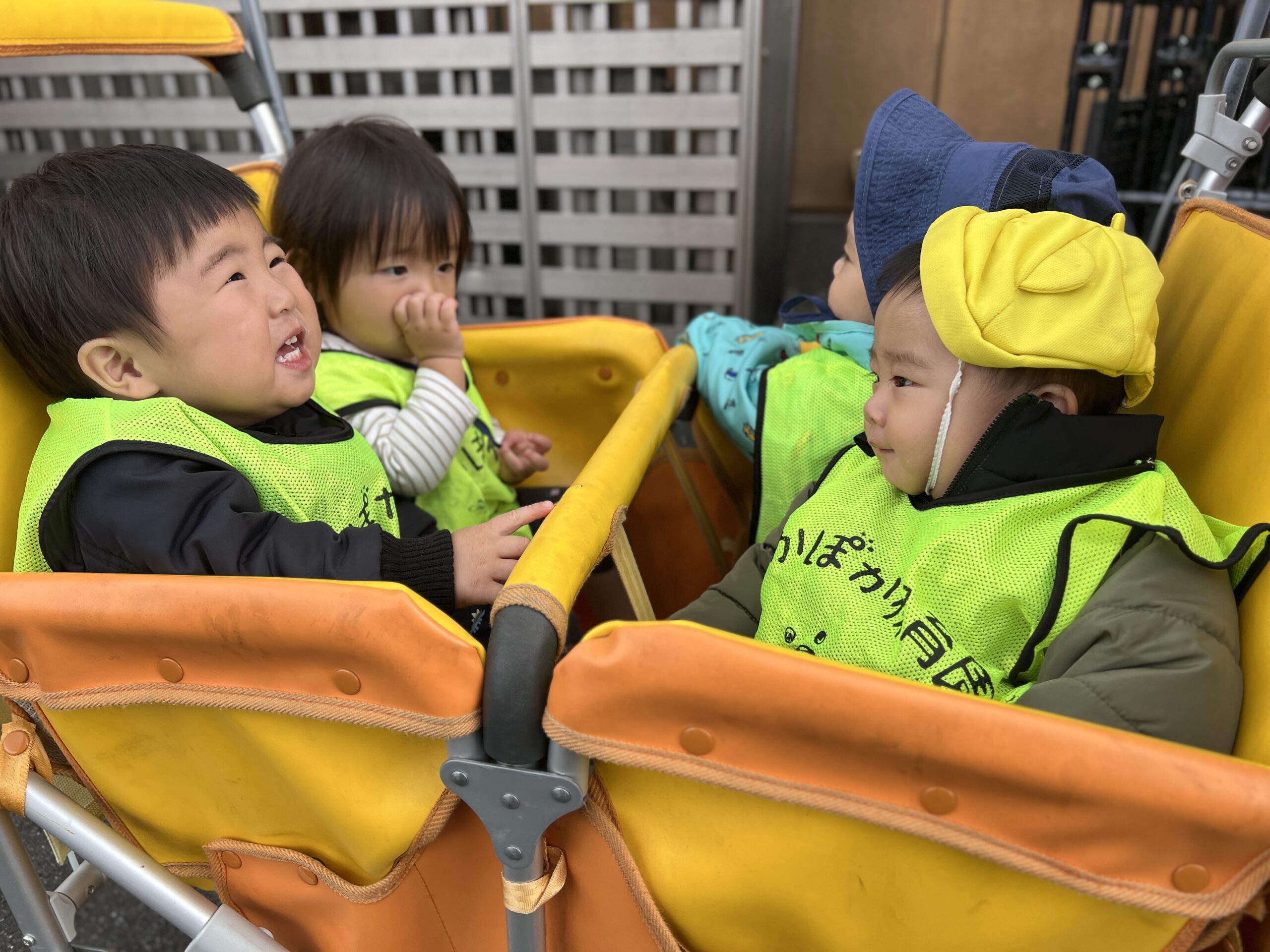 園を出発すると「お外気持ちいいねー!」「お散歩楽しい!」と元気いっぱいの声が聞こえます。