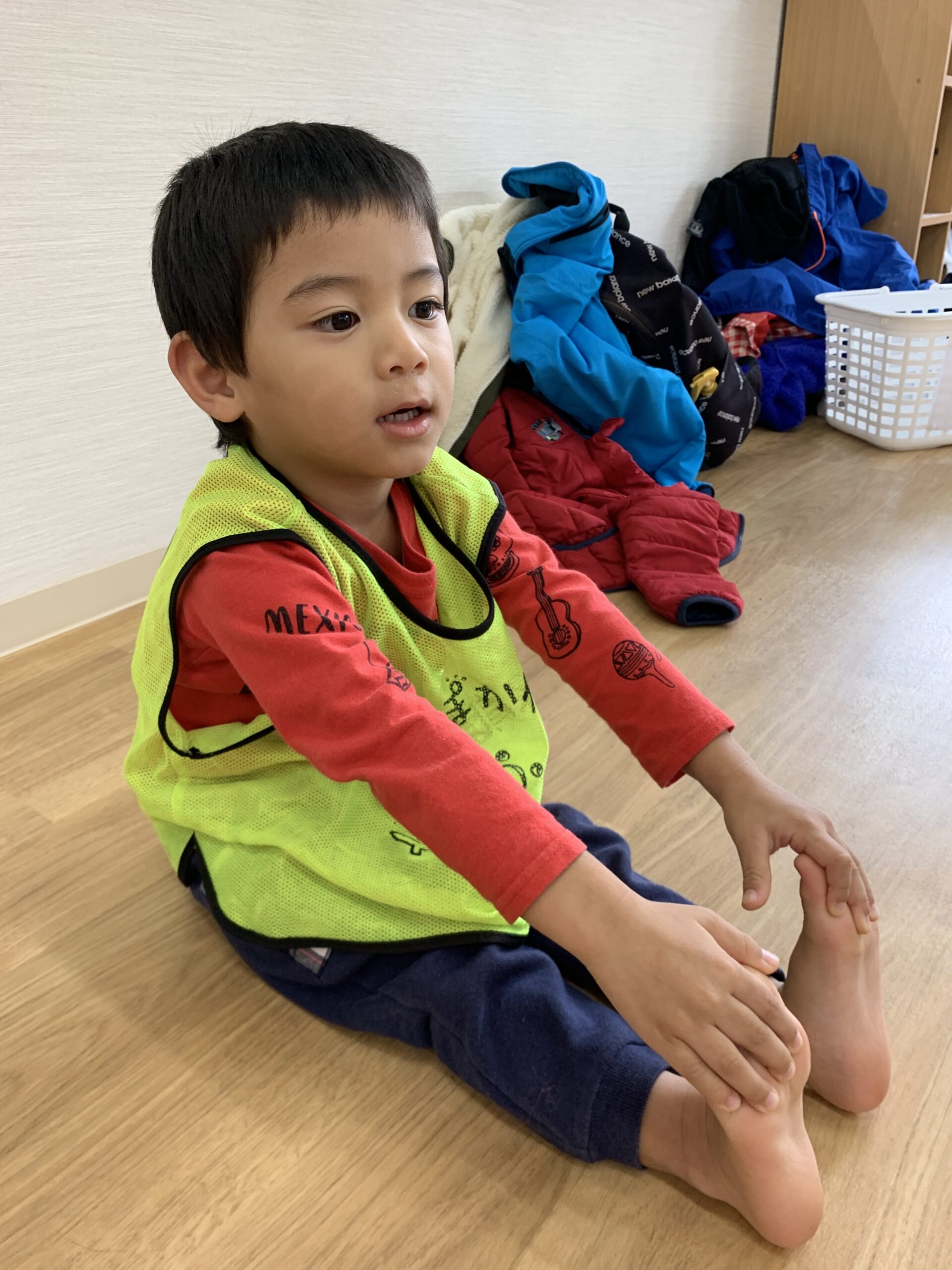 「〇〇くん、蛇さんみたいにニョロニョロしてるね!」「先生の後ろについてきてくれてありがとう!」と声をかけながら身体を動かすことの楽しさをみんなで分かち合いました!