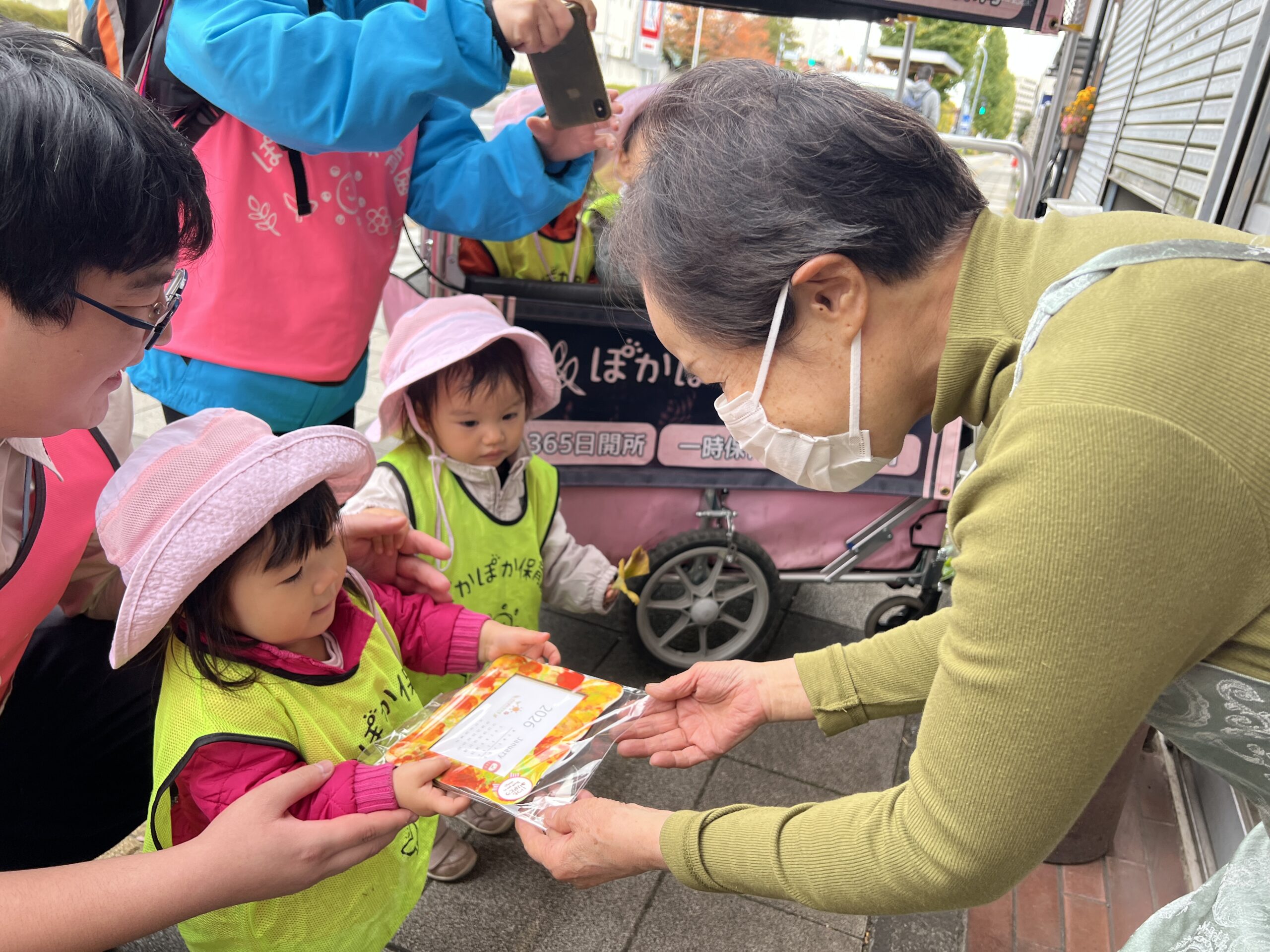 「上手に渡せたね!」「お店の人もうれしそうだね!」と先生が声をかけると子どもたちも誇らしげな笑顔を見せてくれました。
